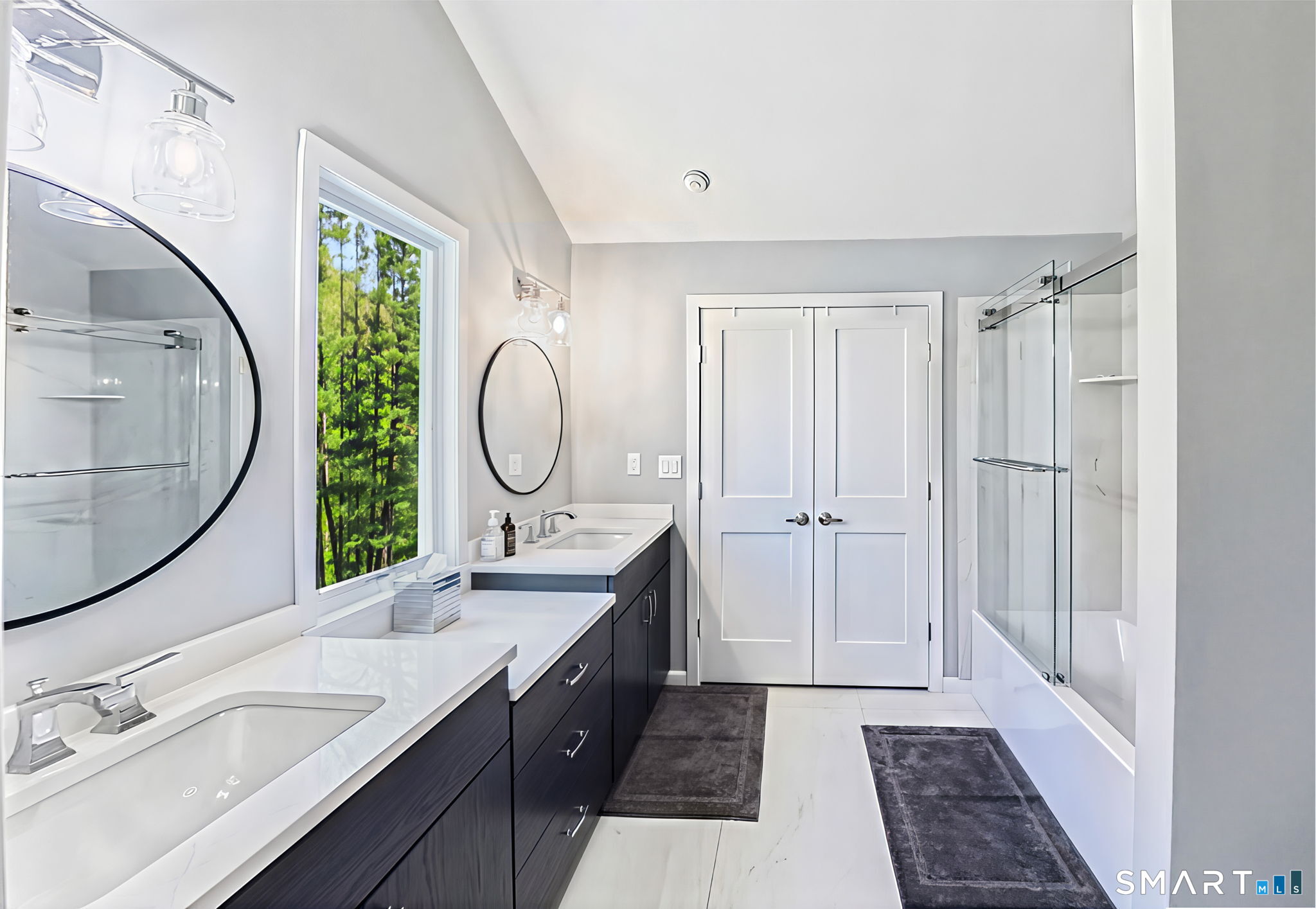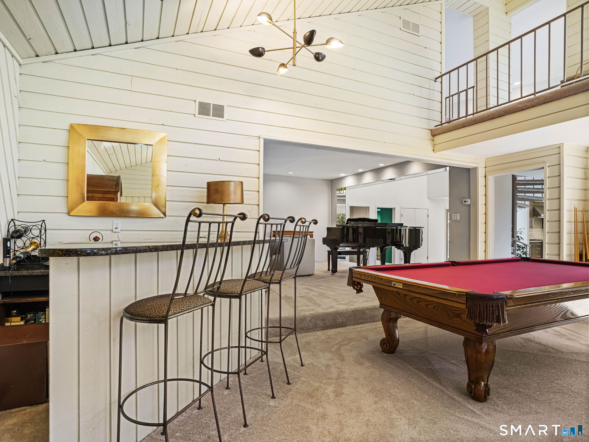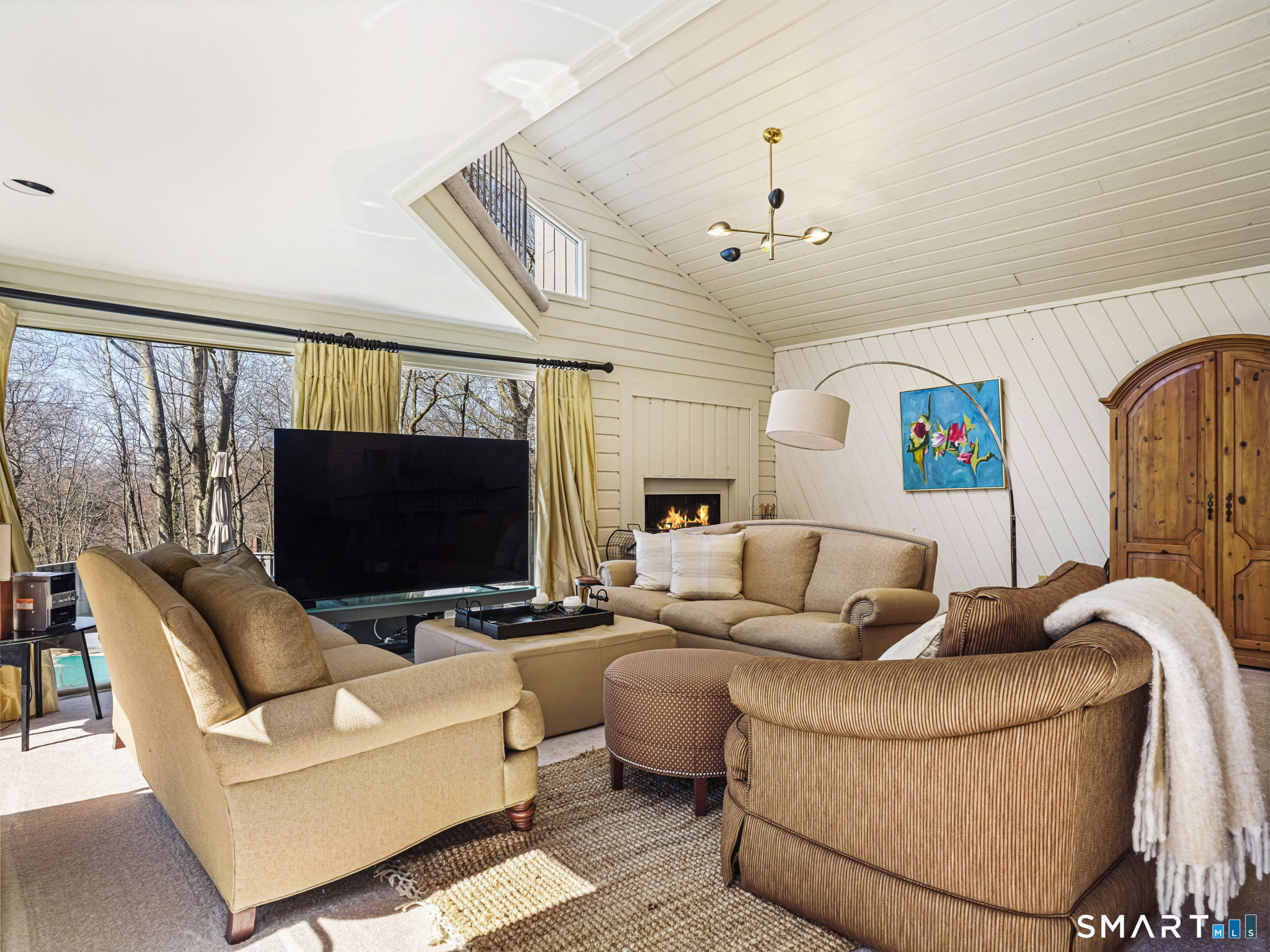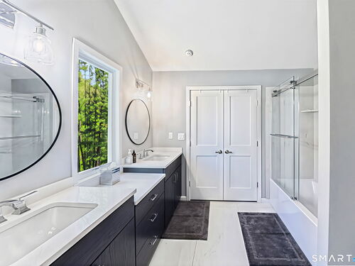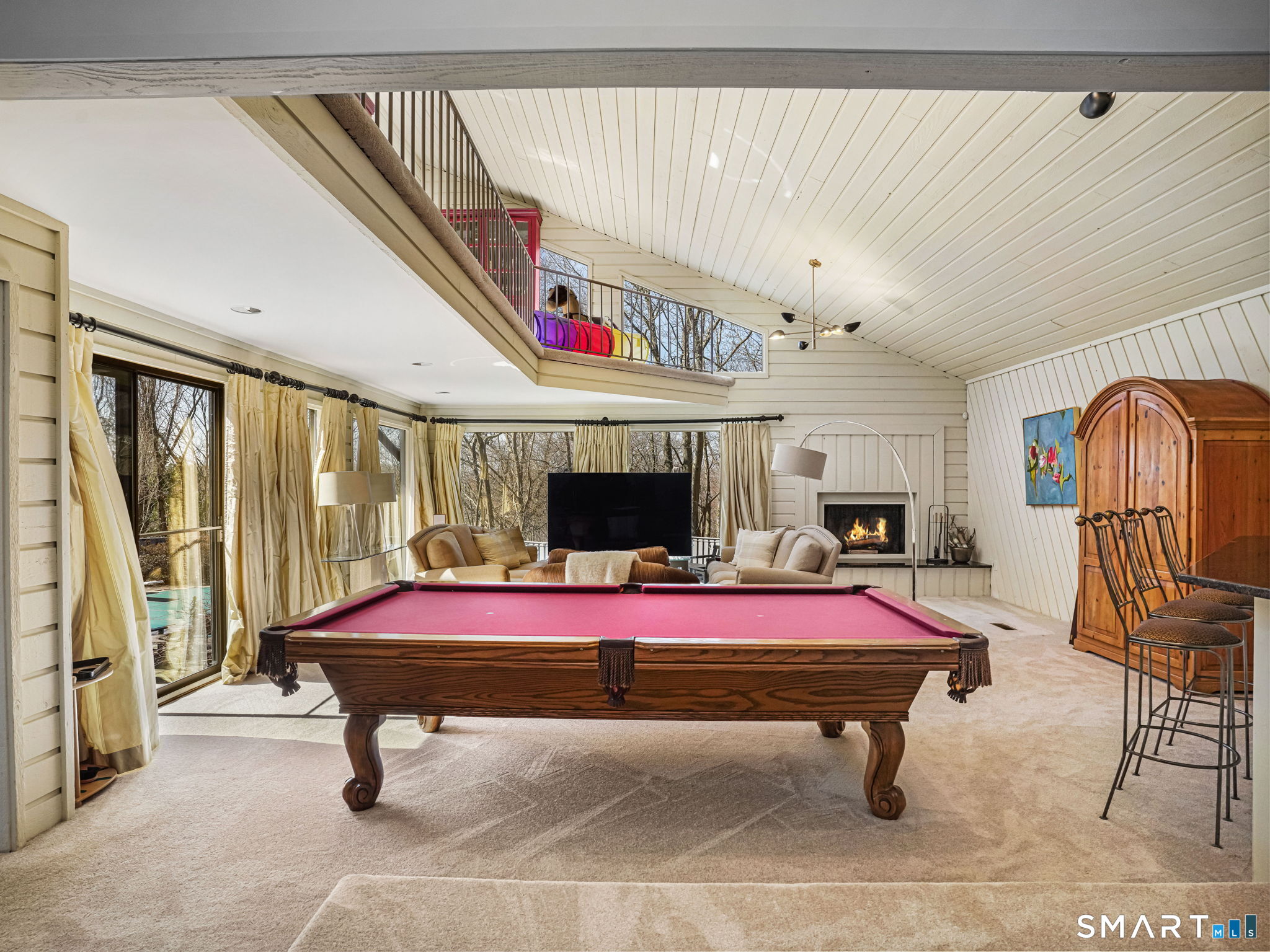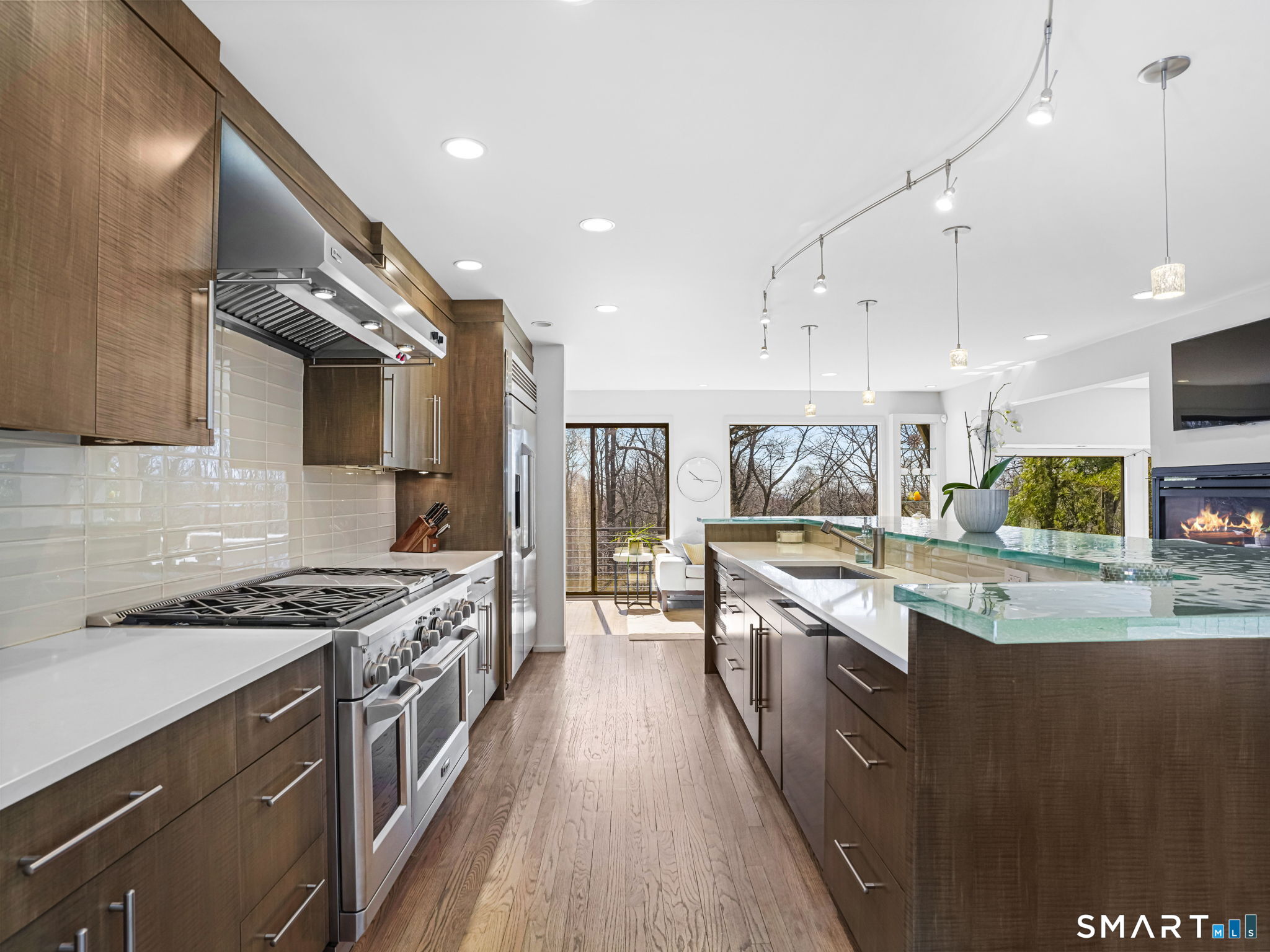 A distinctive architectural statement offering a rare blend of design, scale, and lifestyle, set in the highly desirable Nichols section of Trumbull with deeded rights to Dogwood Lake. Just under 5,000 sf, this thoughtfully updated & exceptionally well-maintained residence reflects a true attention to detail throughout, from the intentional window placement that captures natural light & views to the custom hardwood flooring patterns. Defined by soaring ceilings, walls of glass & a seamless connection between indoor and outdoor living, the main living areas open to a private backyard retreat featuring an in-ground pool and multiple entertaining spaces. The kitchen is a true centerpiece, designed w/ custom Segue by Ovation cabinetry, GE Monogram appliances, a walk-in pantry spanning the entire back wall, and an oversized island with glass countertops that anchors the space while flowing effortlessly into the surrounding rooms. A stunning dining area w/ vaulted ceilings, skylights, and wraparound glass creates a dramatic, light-filled setting with beautiful views of the property. Multiple balconies further enhance the connection to the outdoors. The primary suite offers a private retreat with a spacious walk-in closet and two fully renovated, spa-like bathrooms, while every bathroom throughout the home has been updated with clean, modern finishes. The outdoor setting delivers a true resort-style experience & deeded rights to Dogwood Lake offer an added lifestyle benefit.