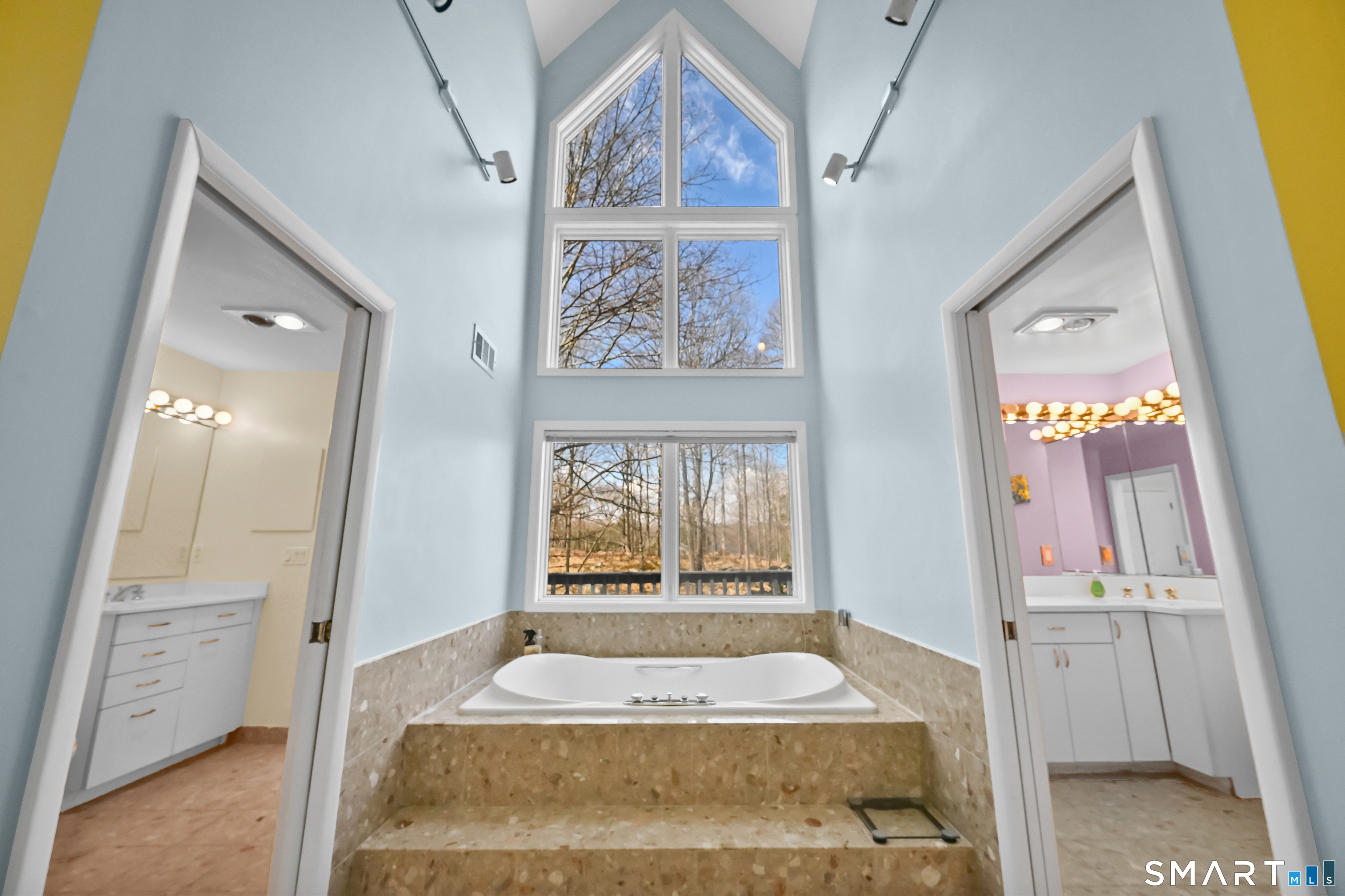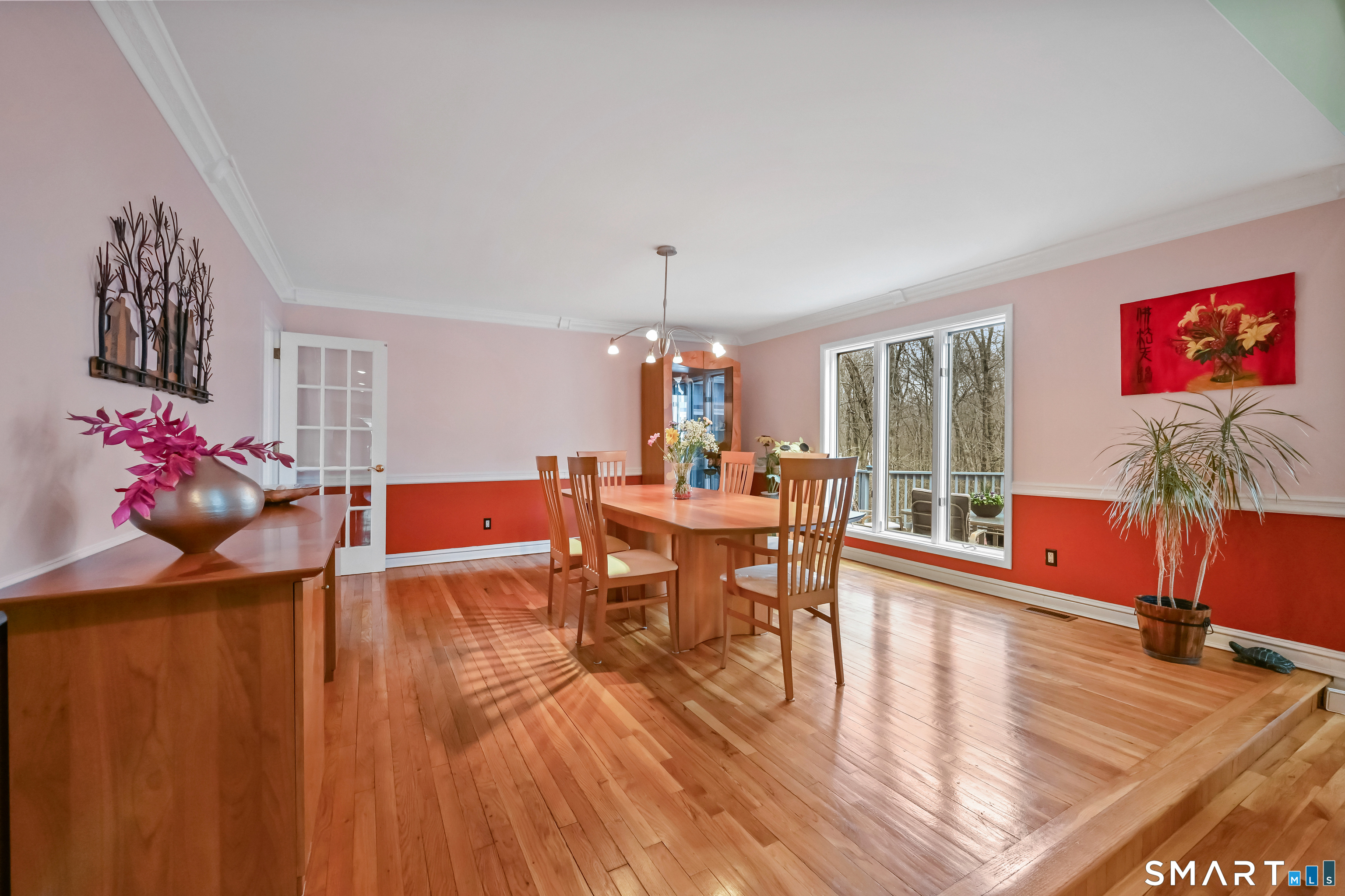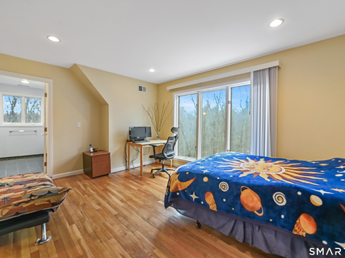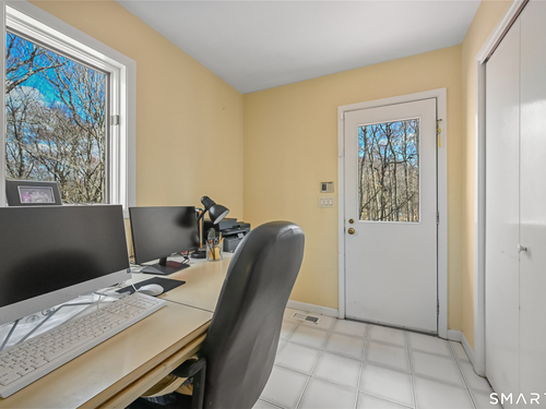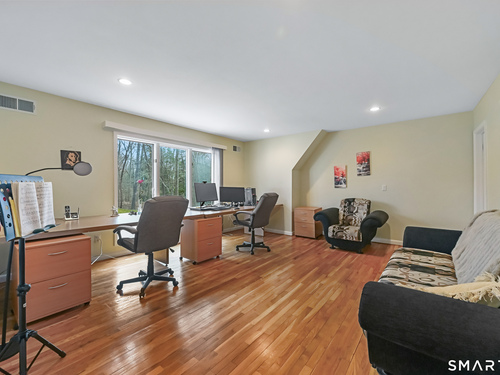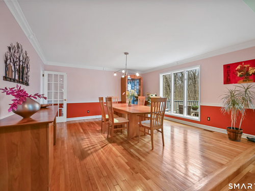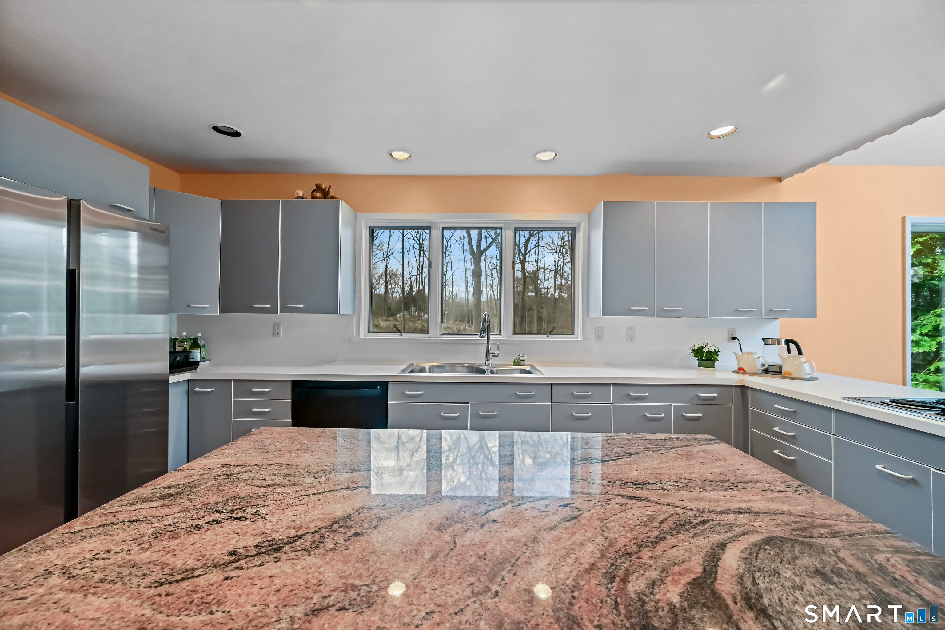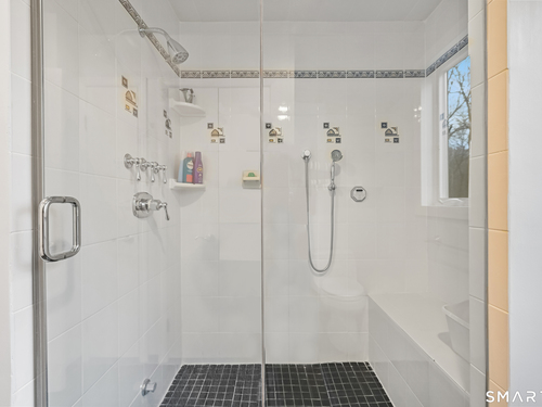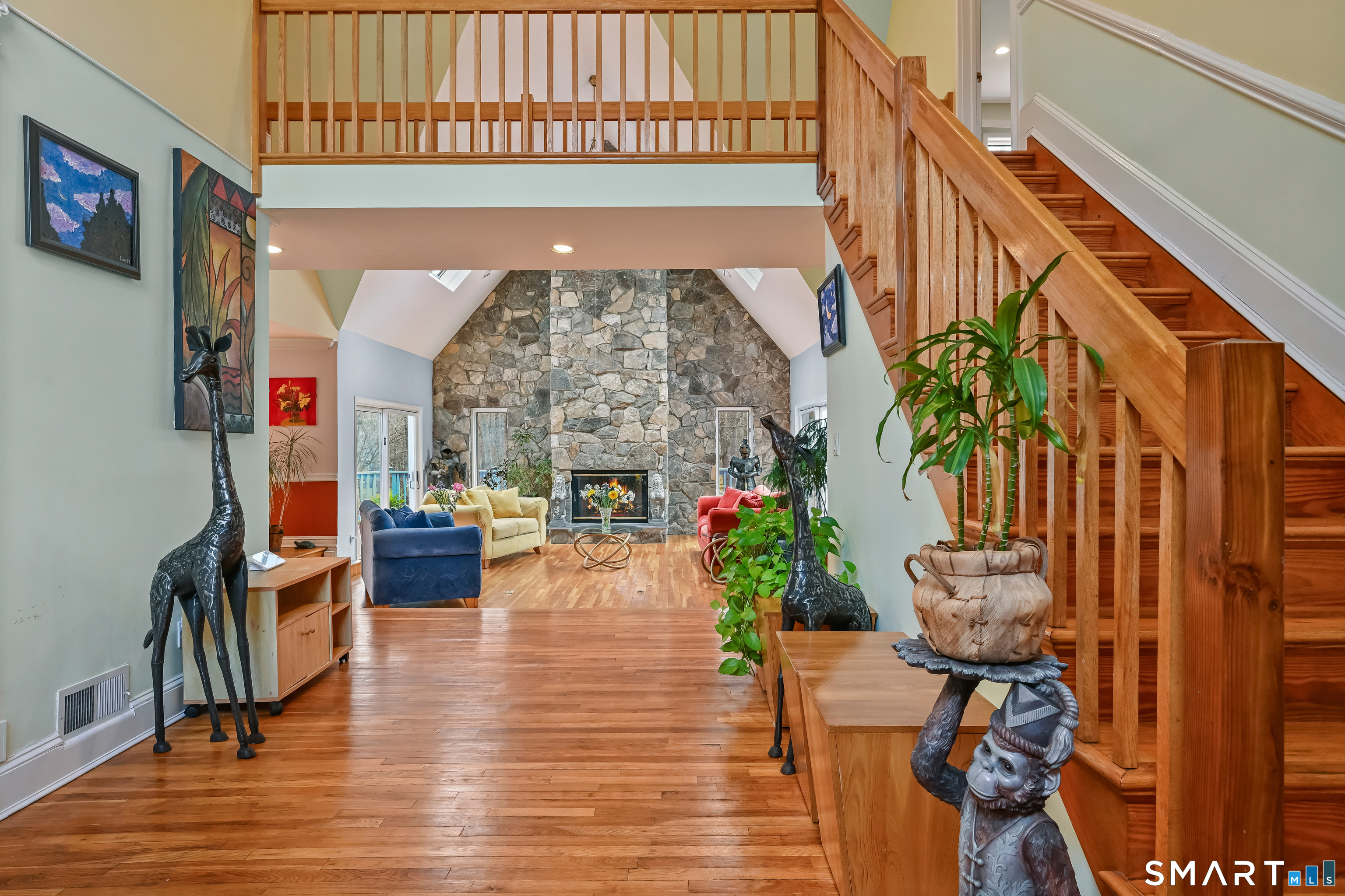 Timeless and architecturally designed, this contemporary home blends soaring vaulted ceilings with panoramic views for a seamless connection to the outdoors. Set on 2.32 peaceful, private acres, it captures natural light year-round while remaining minutes from every convenience. The open-concept layout is ideal for both entertaining and everyday living. A dramatic two-story stone fireplace anchors the main living area, with expansive rooms that flow to a large deck overlooking tranquil, elevated views. The chef's kitchen offers a granite island, abundant cabinetry, and an eat-in space beneath a vaulted ceiling with an oversized window framing nature. The first-floor primary suite is a true retreat with dual baths, separate showers, a whirlpool tub beneath a cathedral ceiling, and generous walk-in closets. Upstairs are three spacious bedrooms and full baths. An oversized third-floor attic provides excellent storage, while the unfinished walk-out basement offers endless possibilities with direct access to the three-car garage. Exterior and lower level recently painted. Near North Mianus School and central Greenwich amenities, this home is a rare blend of privacy, design, and location-an inspiring retreat for modern living.