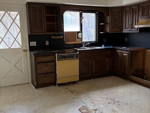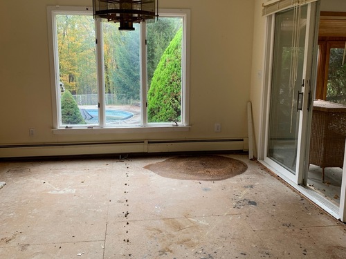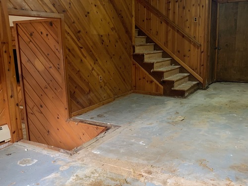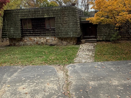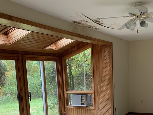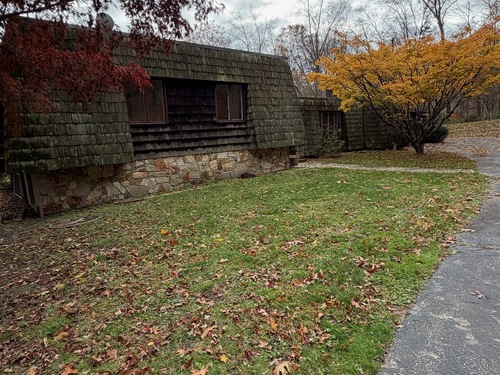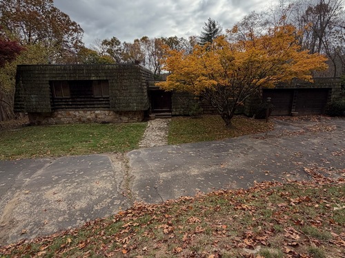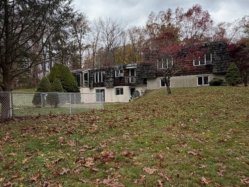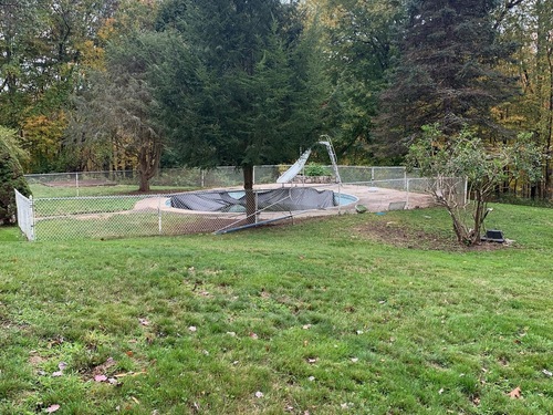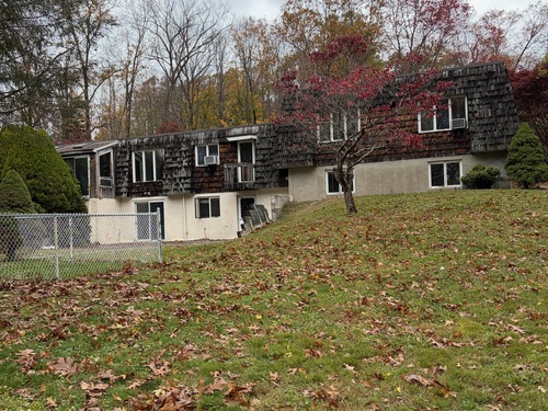 Home is a 6 BR/ 4.5 bath split level 2 fireplaces with 2 car garage on 2.2 Acres with in ground pool and shed. Flat roof of tar & gravel & wood shingle siding. Private well & septic common to area, no hook ups available. No smoke detectors or carbon monoxide at all Taxes are $10,596.48 this year. Property is a 5924 sq.ft. split-level home with the 2192 sq.ft main level featuring kitchen(no appliances), laundry hookups in kitchen closet, dining room, living room w/fp, sun porch, 4 bedrooms, primary with full bath and 2nd full bath servicing other 3 bedrooms. The lower level set up as a in-law unit, 2160 sq.ft. 2 bedrooms each with full baths, plus 1/2 bath, Living room, utility room, few steps down to full kitchen (no appliances), dining room with bar, den with fireplace & jacuzzi room with sliders to back yard. PROPERTY BEING SOLD AS IS The flooring is all raw plywood; all carpet removed. The floors in lower level are concrete with tile in the jacuzzi room. Evidence of mold and water damage in lower level rooms and some water damage in some upper level rooms.
