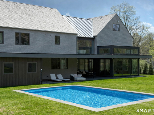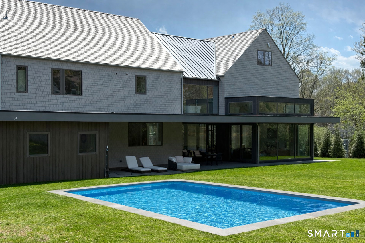 Designed by custom home builder Vita Design, this exciting newly constructed modern residence is a refined architectural statement that balances scale and light, capturing direct 5 Mile River views and a connection to its natural surroundings. Finished across four levels, the home features dramatic 10- and 16-foot ceilings and a main level wrapped in floor-to-ceiling European-style windows filling the interior with natural light, creating seamless indoor-outdoor living. All living spaces are designed for flexibility and function. The kitchen showcases an oversized center island, Leicht mahogany cabinetry, Miele appliances, huge pantry and spacious dining area overlooking the river. The primary suite offers a private retreat with balcony, water views, lux bath and generous closets. All other bedrooms feature en-suite baths with high-end, individual finishes. Lower-level and third-floor bedrooms provide privacy and adaptable use. Outdoor living centers around the covered wrap around patio and heated pool with retractable cover, enhancing the home's resort-like feel. Additional amenities include home automation, mudroom, laundry room, and a fully finished lower level with large recreation / home gym space. An oversized three-car garage completes the home. Minutes to world class Darien, Rowayton, Long Island Sound, and easy access to New York City & New Haven by train or car. Coastal CT at its very best!