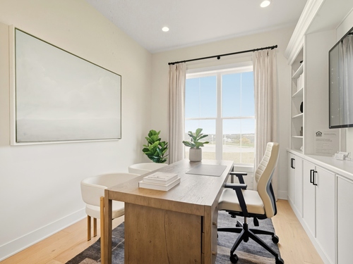 Experience a vibrant blend of functionality and comfort in the Jaffrey home design. An elegant tray ceiling adorns a welcoming foyer that flows past a versatile flex room into a charming casual dining area and spacious great room. Equipped for everyday meals and holiday feasts, the kitchen offers a roomy island with breakfast bar, wraparound counter and cabinet space, and a pantry. The alluring primary bedroom is complete with a large walk-in closet and a tranquil bath featuring a luxe shower with seat, a dual-sink vanity, linen storage, and a private water closet. A lovely secondary bedroom at the front of the home is situated near a full hall bath. This wonderful home is rounded out by an everyday entry, dedicated laundry space, extra storage throughout and finished walkout basement. In a premier 55+ community-this is the one you've been waiting for! Move-in anticipated October 2026