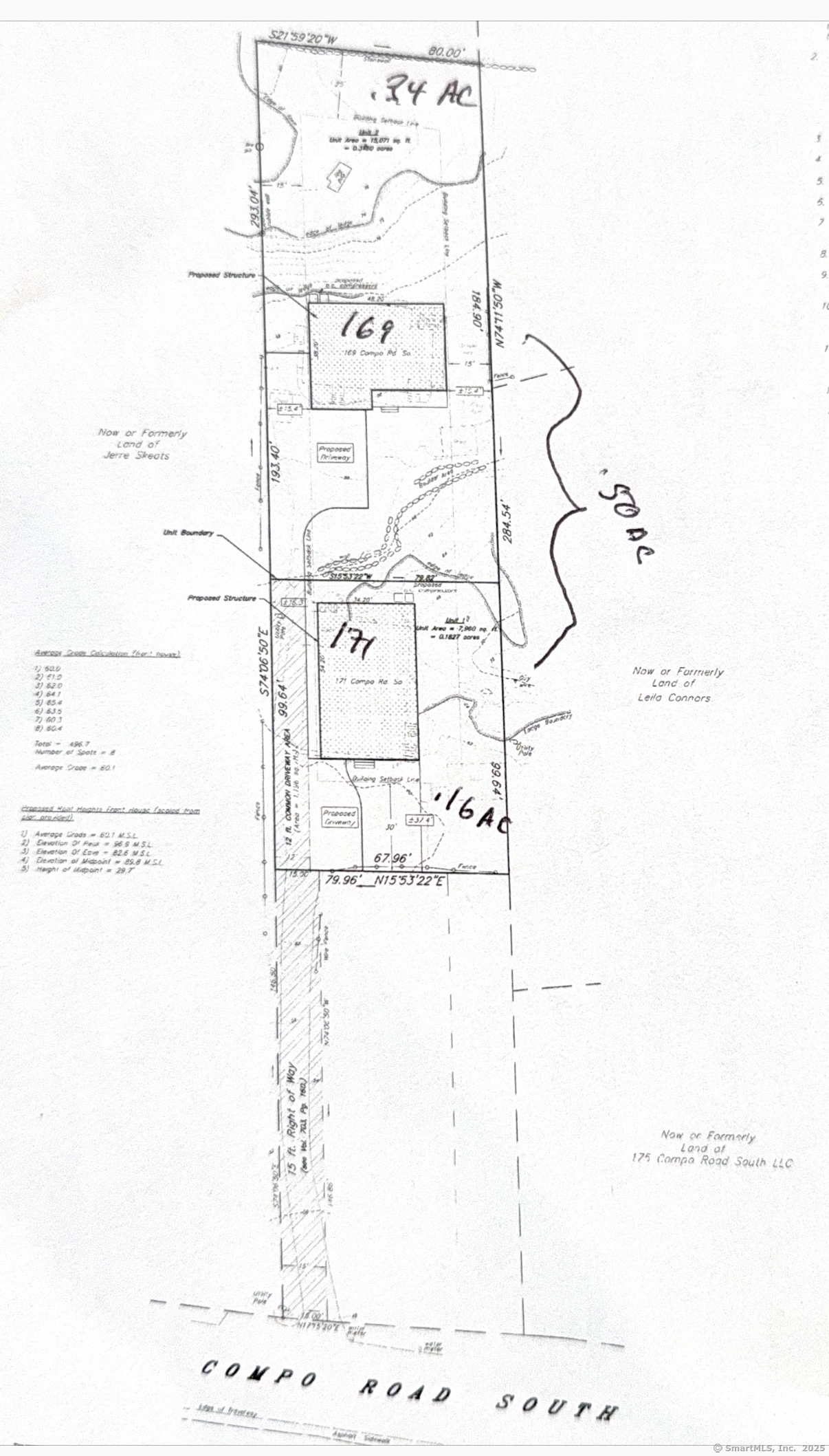 BOMK and REDUCED! Stunning 3800+SF of new construction, tucked well away from the road offering a serene private setting nestled on a .50 acre parcel with REMARKABLE potential. Offering fabulous proximity & convenience to Saugatuck train, Longshore town-golf club, Compo Beach and Downtown all via sidewalks. 171 & 169 Compo Rd. S. offers potential for a pool and separate guest house to go with the new construction at 171 Compo Rd. S. Or, if a multi generational compound is your interest, 171 & 169 Compo S. comes with P & Z *APPROVED* architectural plans for a 2nd Single Family 3700 SF structure w/ 2 car garage and city water, sewer and buried power lines. (see photos for #169 P and Z approved plans). The .50 ac property as a whole is a 2 house property on a condoized parcel of land. It allows for 2 completely separate single family structures on the .50 ac, that are able to be sold separately. Note: 171 Compo is being marketed separately on .16 ac. and offered at $2395,000. see MLS #24094300.