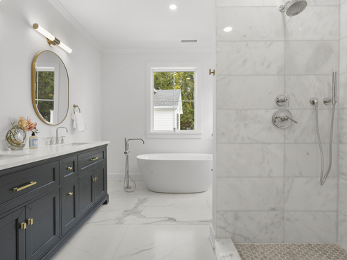Quartz Counters, Hydro-Tub, Stall Shower, Tile Floor