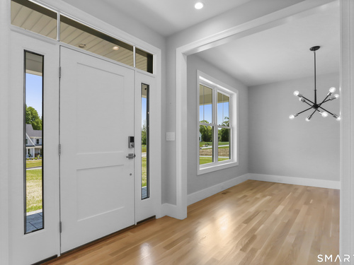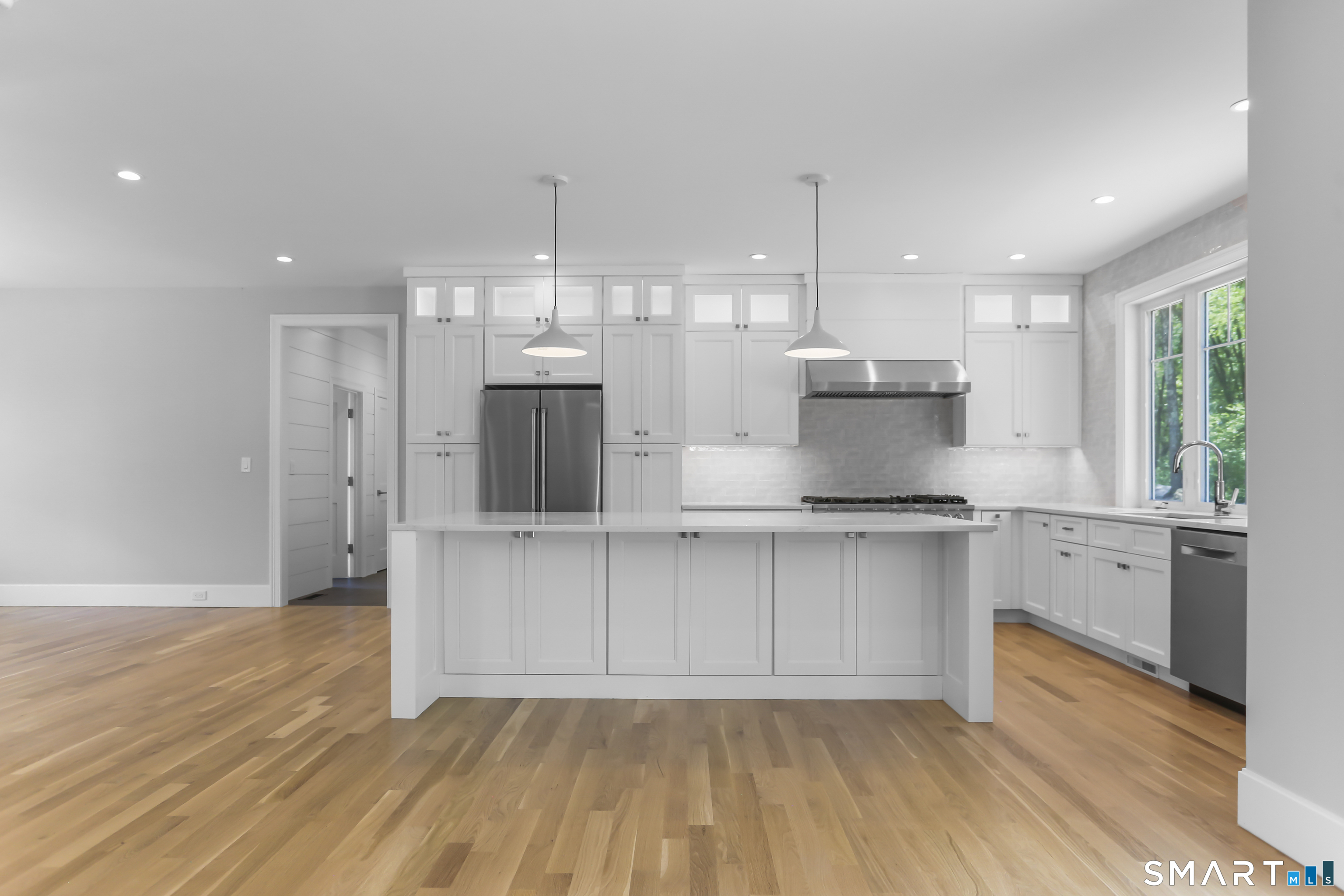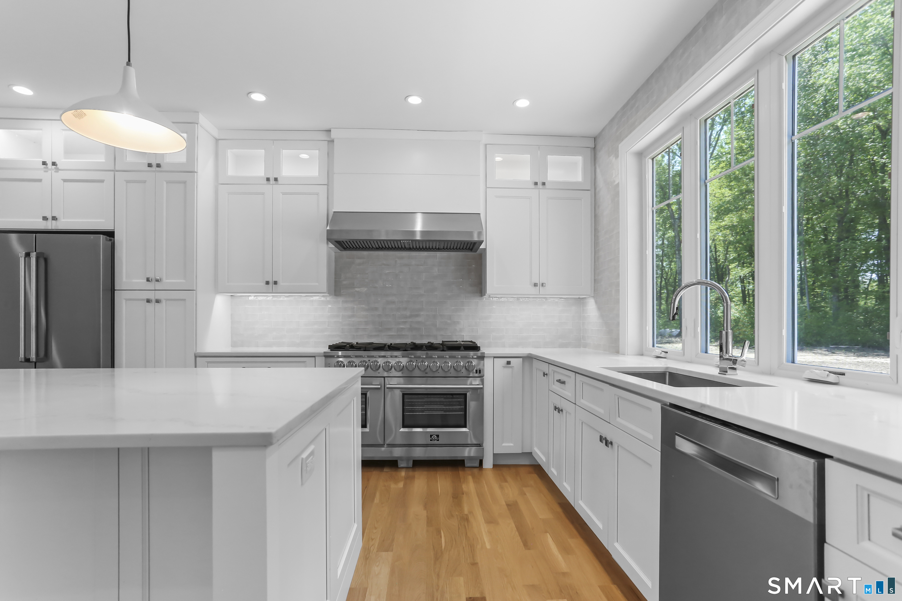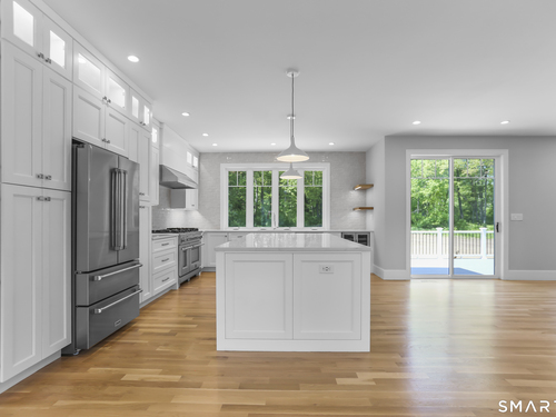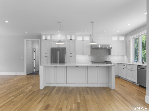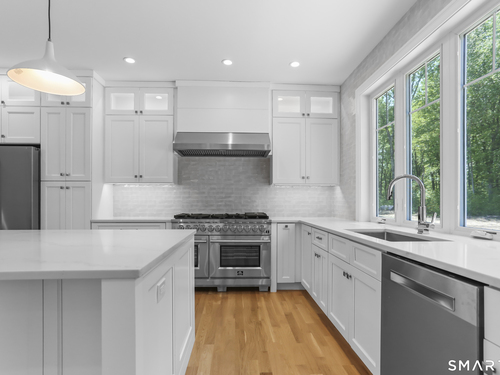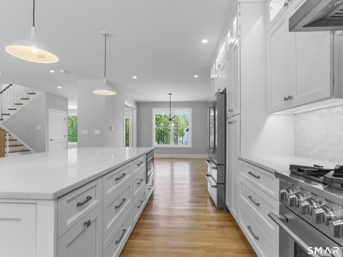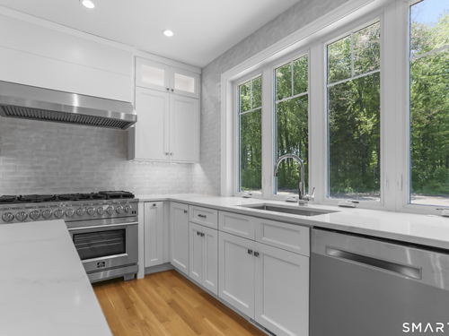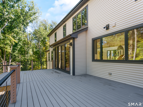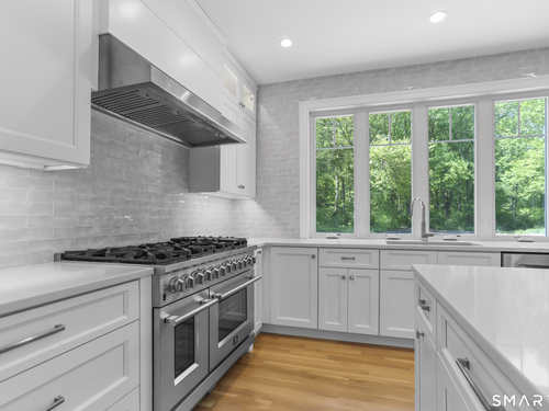 Magnificent Home in Private Cul-de-Sac. Tucked within enclave of newer, high-end homes. This exquisite residence offers a perfect combination of architectural drama and everyday comfort. Even when entering through the Side Door, you'll be immediately struck by the home's open-concept design and impeccable finishes. A massive cantilevered metal front door makes a bold statement for guests, opening to a soaring two-story foyer w/striking designer lighting. Wide-plank white oak flooring flows seamlessly through LR, DR, & expansive eat-in kitchen, creating a natural sense of continuity. Kitchen is a chef's dream, anchored by oversized quartz waterfall island w/seating for five & undercounter lighting. Professional-grade appliances include 8-burner double oven Viking range w/hood, Viking microwave & warming drawer, Bosch dishwasher, Bosch Coffee Station, Sub-Zero Refrigerator. The walk-in pantry (10' x 8.6') w/pocket door offers exceptional storage & Wine Chiller. Floor-to-ceiling windows flood the space with natural light, enhancing the open, airy ambiance. Step outside to the oversized Trex deck or relax on the concrete patio, surrounded by professional landscaping & mature arborvitae for privacy. The Primary Bedroom Suite is a private retreat, featuring 2 Walk-in Closets & Oversized spa-like bath w/walk-in shower, separate Soaking Tub, water closet w/Kohler commode, adjustable backlit mirrors w/defogging capabilities.