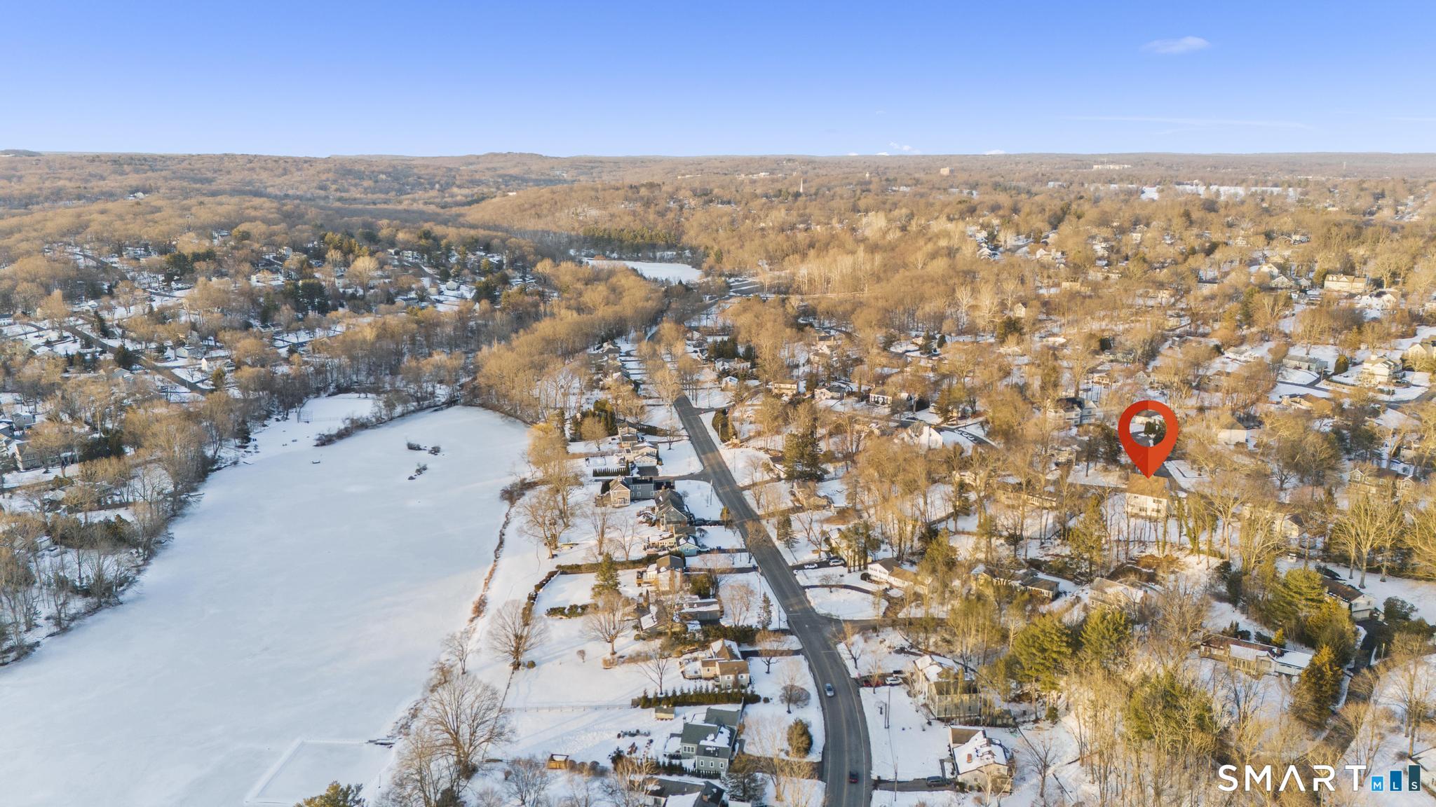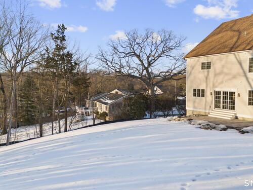Tucked within Fairfield's coveted Lake Area, this newly built home offers a peaceful retreat where nature and design meet. Surrounded by mature trees and set on a scenic stretch just moments from Lake Mohegan, neighborhood beaches, and downtown amenities, the setting feels tranquil and removed while remaining effortlessly connected. Set on .46 acres with seasonal water views from select rooms, the property captures the quiet rhythm of lake living-morning walks beneath a canopy of trees, evening sunsets through oversized windows, and cozy nights by the fire. Inside, moody, custom-caliber finishes create warmth and depth rarely found in new construction. Nine-foot ceilings, solid core doors, and detailed millwork elevate every space. The kitchen anchors the main level with a 36" gas range, walk-in pantry, and generous island seating, flowing seamlessly into a dramatic color-drenched family room with wood ceiling and beams and a Taj Mahal quartzite fireplace. The home offers five bedrooms plus a finished bonus room above the garage that qualifies as a sixth bedroom, providing flexibility for guests, office space, or recreation. The primary suite offers a spa-like escape with heated floors, soaking tub, and oversized glass shower. An expansive stone patio and private rear yard invite outdoor living, with room for a future pool. A refined, design-forward home in a setting that truly feels like an escape.