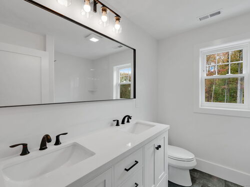 Step into modern elegance with this brand new 4-bedroom, 2.5 bath Colonial that perfectly blends timeless design with today's most desired finishes. From the moment you enter, you'll be greeted by an open floor plan filled with natural light, 9' ceilings, and wide plank hardwood floors in a beautiful provincial stain that flow throughout the home. The heart of the home is a stunning white kitchen featuring soft-close cabinetry, quartz countertops, a large center island, and high-end finishes that make it as functional as it is stylish. The kitchen opens seamlessly to the dining and living areas, where a fireplace with an eye-catching accent wall creates a warm and inviting focal point. A first-floor office or den offers flexible space for work or play, while the second level hosts four spacious bedrooms including a serene primary suite with a luxurious en-suite bath. Enjoy outdoor living on the stone patio overlooking a flat, private backyard that is perfect for entertaining or relaxing. Additional highlights include a two-car garage with extra storage, a huge basement with high ceilings ready to be finished, and quality craftsmanship throughout. Light, bright, and thoughtfully designed, this new construction Colonial offers the perfect combination of comfort and style in an amazing North End location. Close proximity to major highways, schools, stores, shops and restaurants. Don't miss this wonderful opportunity to make this new construction yours!