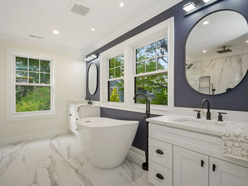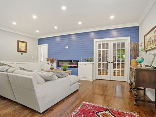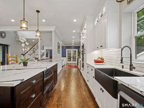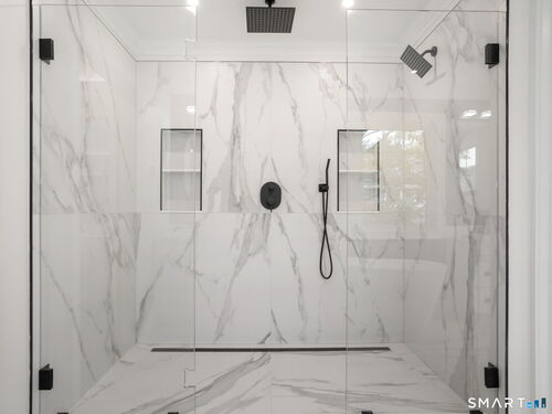 Back on market with enhancements including custom entryway storage/cubby area! Luxurious, like new construction home located in the desirable Stratfield Village neighborhood of Fairfield. Total interior renovation, including full second floor and additional two car garage was finished in 2025. This gorgeous property sits on 1.3 acres and features a modern, open-concept kitchen, four spacious bedrooms, three full bathrooms, two half bathrooms, and two dedicated home offices. The very spacious primary suite features walk in closets and a heated floor in the primary suite bathroom. An under the house garage adds an additional garage space, giving this home a three car garage. The home boasts a new roof, all new mechanicals, spray foam insulation, hardie back siding. All appropriate permits are with Town of Fairfield.