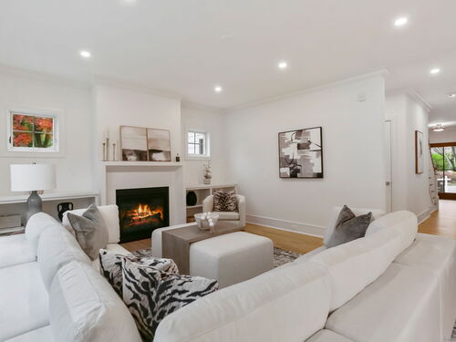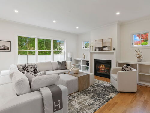 9 ft+ Ceilings, Built-Ins, Gas Log Fireplace, Sliders, Hardwood Floor