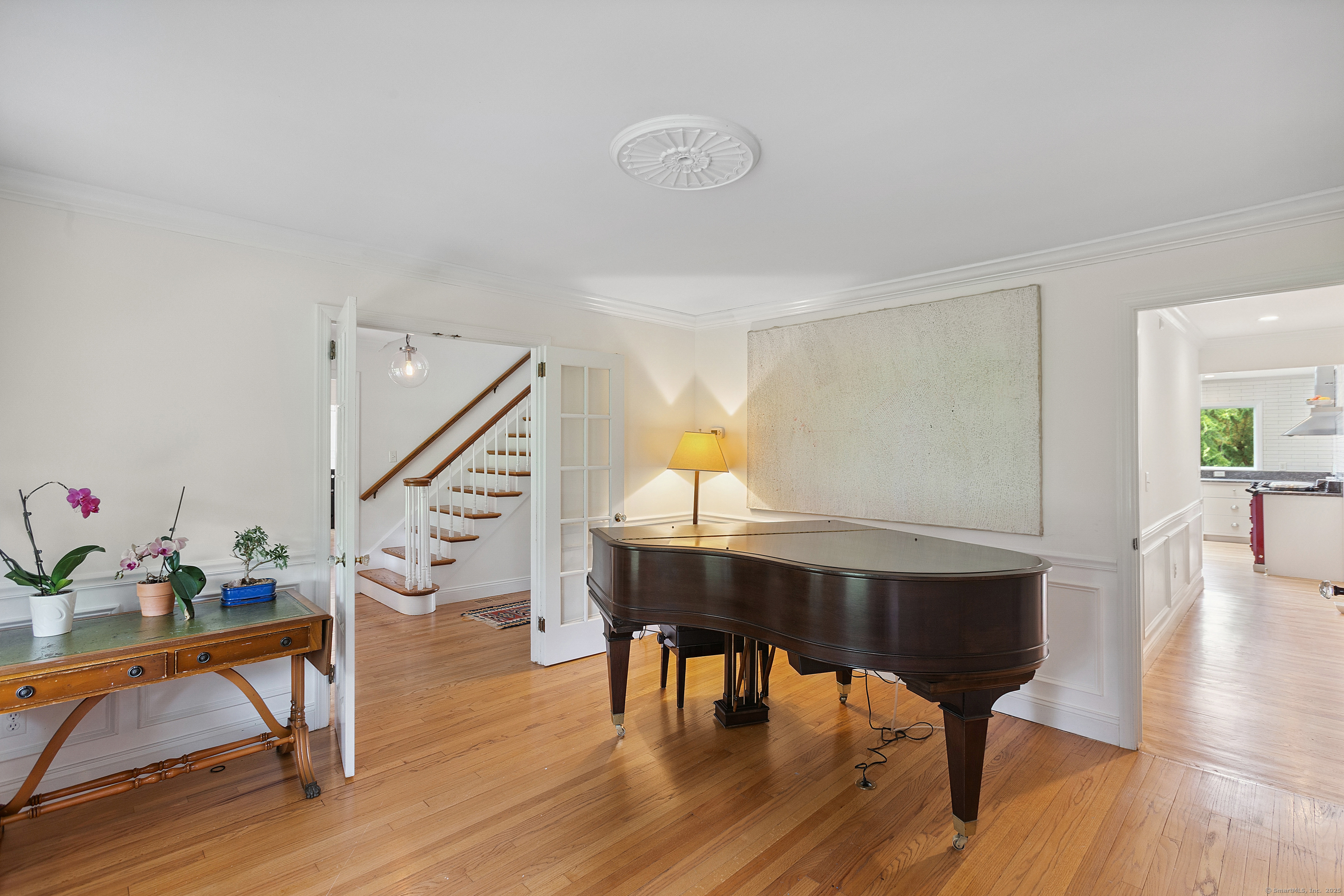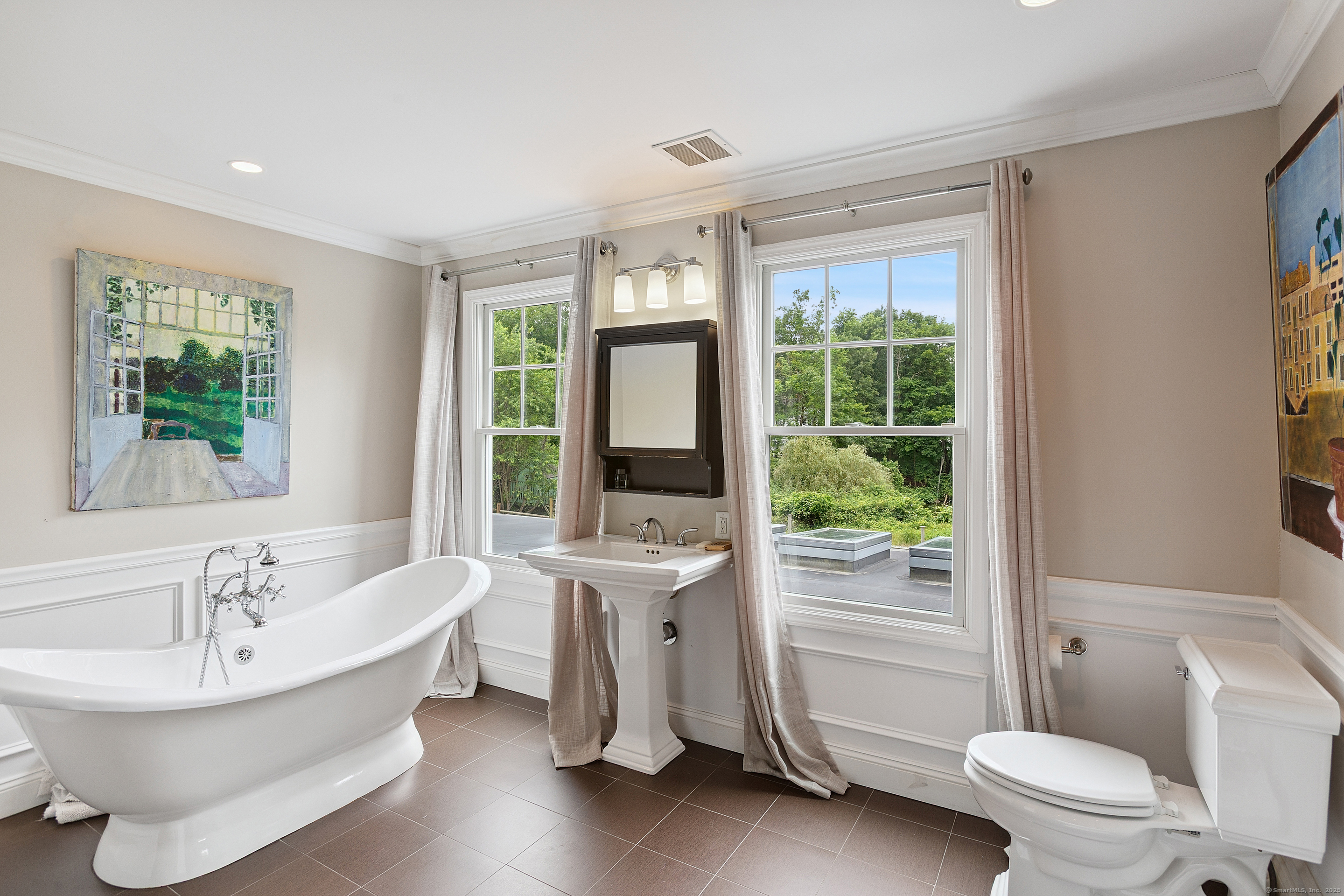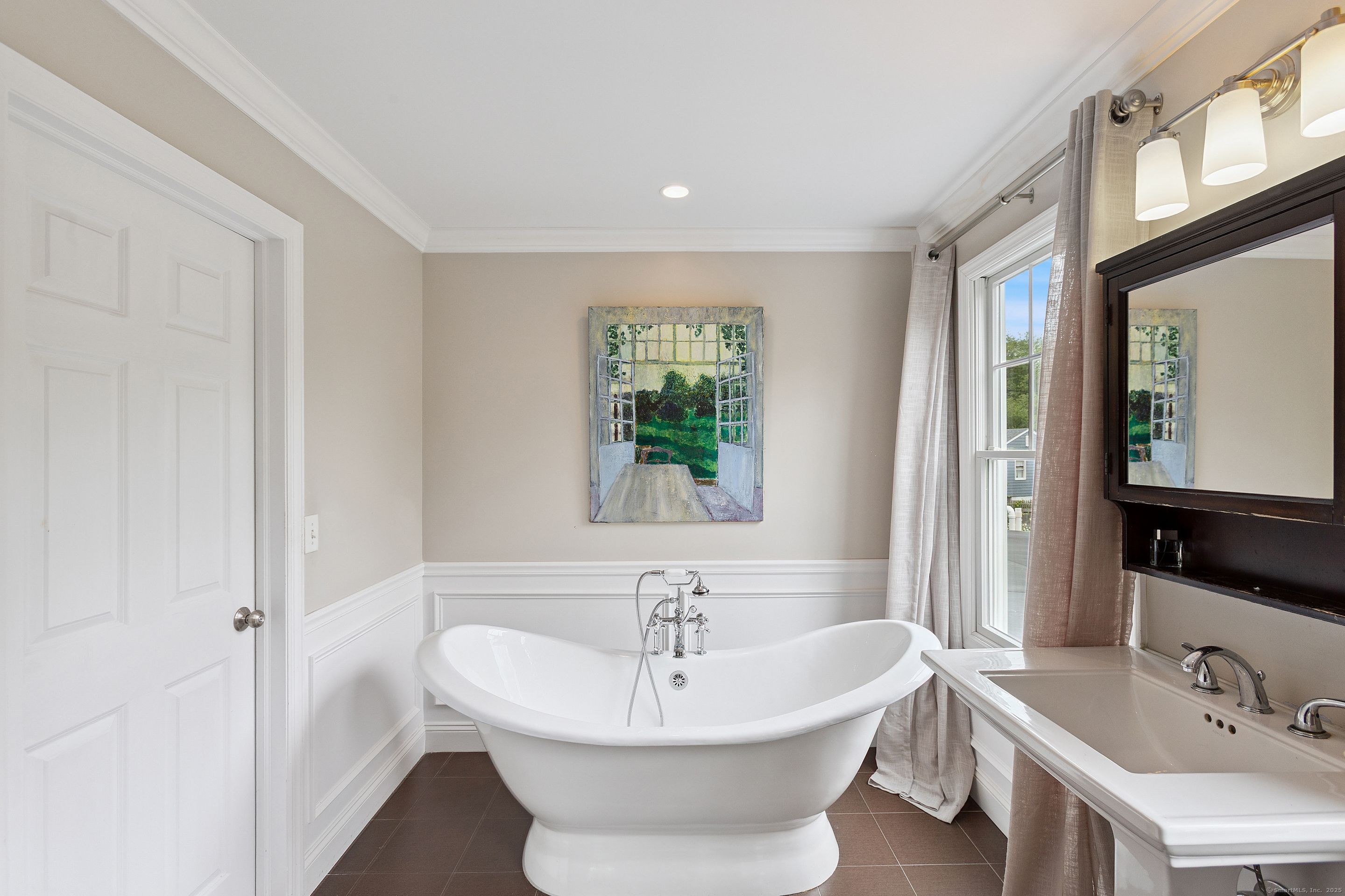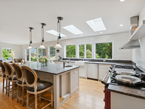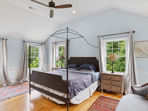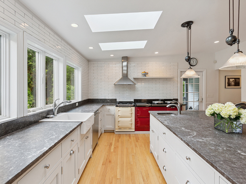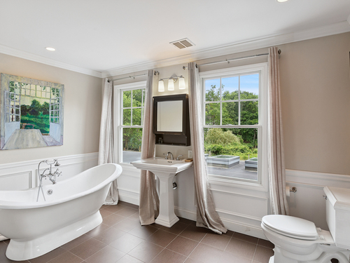 Welcome to a one-of-a-kind home in the heart of Westport - where timeless Colonial charm meets the elegance of a Parisian Estate. Set on an acre+ this home offers sophistication, space, and serenity throughout. The light-filled LR stuns with vaulted ceilings, HW floors, a wood-burning fireplace, and French doors opening directly to the deck and pool - the perfect setting for everyday living or entertaining. The formal DR offers its own fireplace, blending classic character with warmth and style. The chef's kitchen features two iconic AGA stoves, a walk-in pantry, skylights and a large center island. A charming covered porch offers peaceful morning coffee or evening outdoor dining. Upstairs, the primary suite, is a private sanctuary with vaulted ceilings, sunny sitting room, HW floors, walk-in closet, and spa-like bath incl cast iron soaking tub, oversized shower and elegant finishes. Add'l bedrooms 1 en suite the other w hall bath on the 2nd floor and 2 more Bedrooms on the 3rd floor w Hall Bath are bright and spacious, each w/ HW floors and serene views of the pool and gardens. The LL offers gym area, work space, storage and access to 2 car garage. The fully fenced backyard is a private paradise. Stone walls, mature English gardens and spectacular In-ground pool with auto cover add to the magic of this private oasis. Whole House Generator. Minutes to schools, shopping and town offering the rare combination of luxury, charm, privacy and convenience.