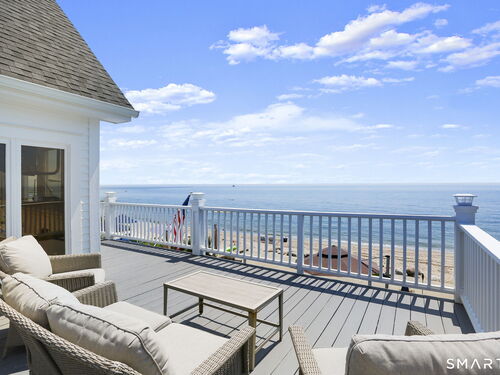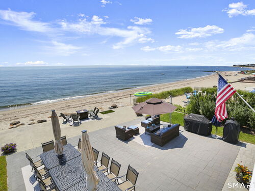 Toes in the sand! Welcome to 1149 & 1148 Fairfield Beach Rd where the best beach memories are made&every day feels like summer....2 wonderful homes:Main Home ~1149 w/direct waterfront & private sandy beach AND 1148 ~ A fun updated guest home just steps across the street. Enjoy true beachfront living w/no steps from your main level family room to an expansive patio where you can enjoy friends and family, corn hole games, BBQ's and waterside entertaining. Inside...is the best open floor plan w family & living rooms anchored by a see through fireplace.... crafted by a builder for his family & thoughtfully designed to maximize water views.Beachside Main & Upper Walls of Windows lets in abundant natural light throughout. Waterfront bedrooms open to wrap around deck creating private space for each. Wake up to sun-filled rooms & end your day w/the sound of waves &moonlit views. Great Room @mezzanine w/12 foot ceilings & skylights. Unfinished 3rd floor offers potential for over 1,000 SF of addn'l living space (home office, bedroom, sitting area; see virtual photos). Kitchen & all bathrooms in Main Home updated(2025). Host friends & family in your beautifully updated (2022)guest home or use as a private home office, both w/2 car attached garages & off street parking.Don't miss this unique oppt'y to own this Fairfield Beach versatile beachfront compound 60 mins or so to NYC & Mins to Schools, Restaurants, & ALL that Downtown Ffld has to offer!