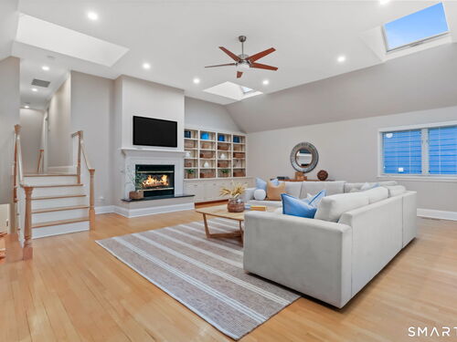 Skylight, Book Shelves, Built-Ins, Gas Log Fireplace, Hardwood Floor