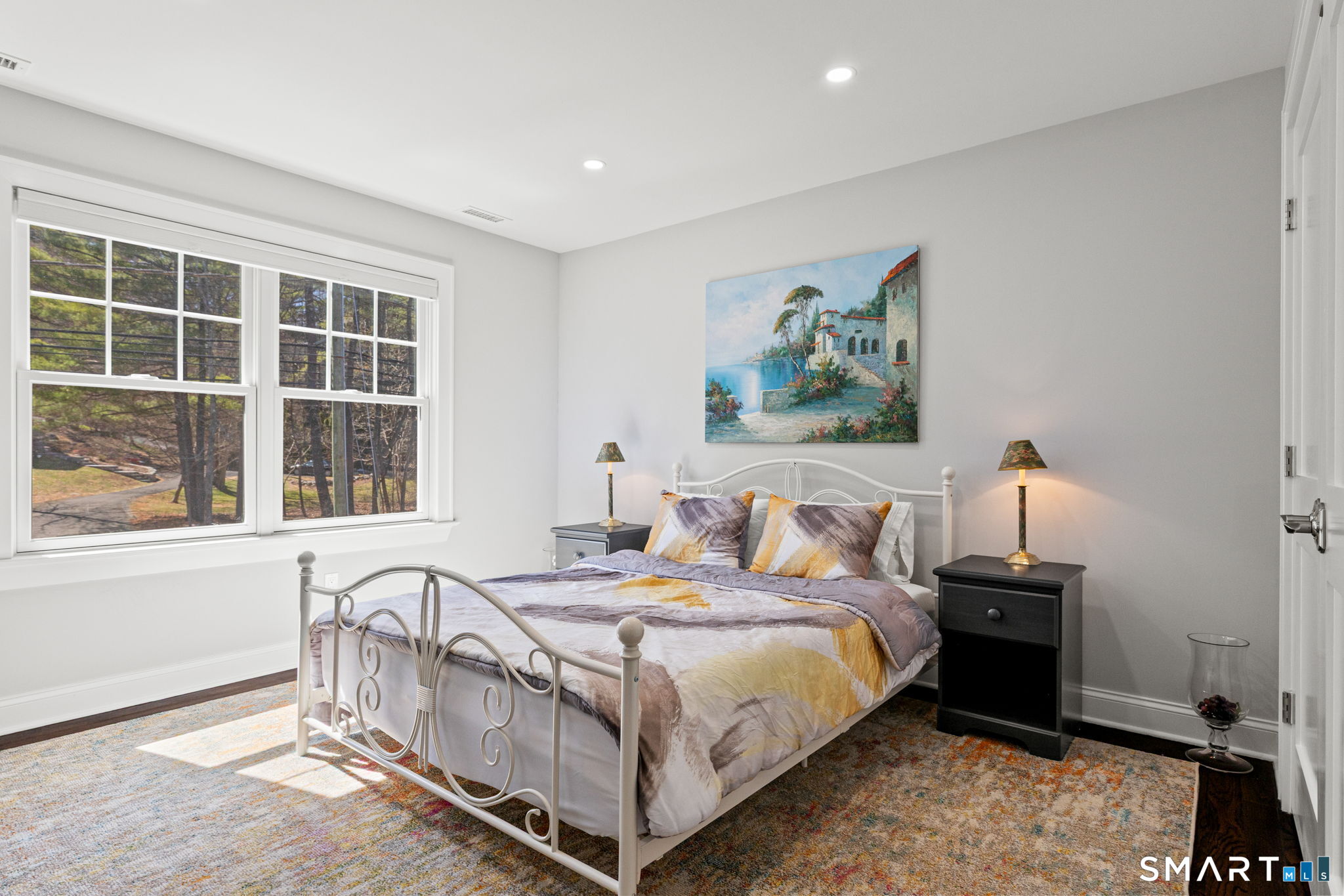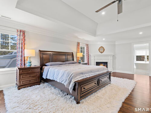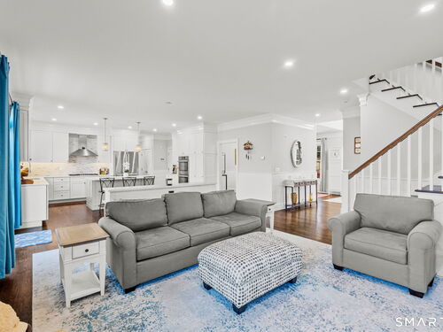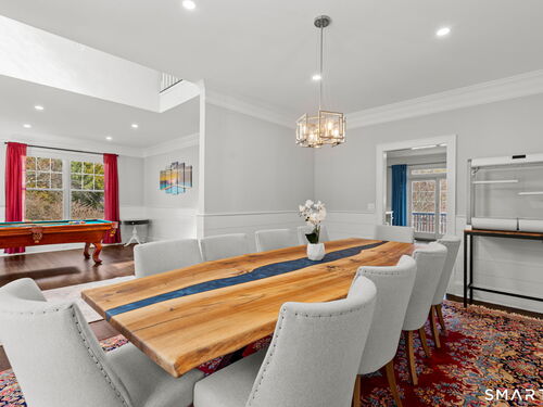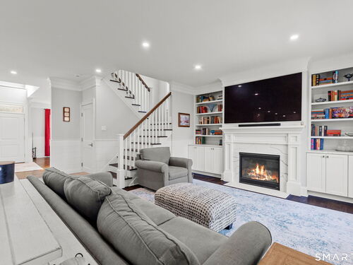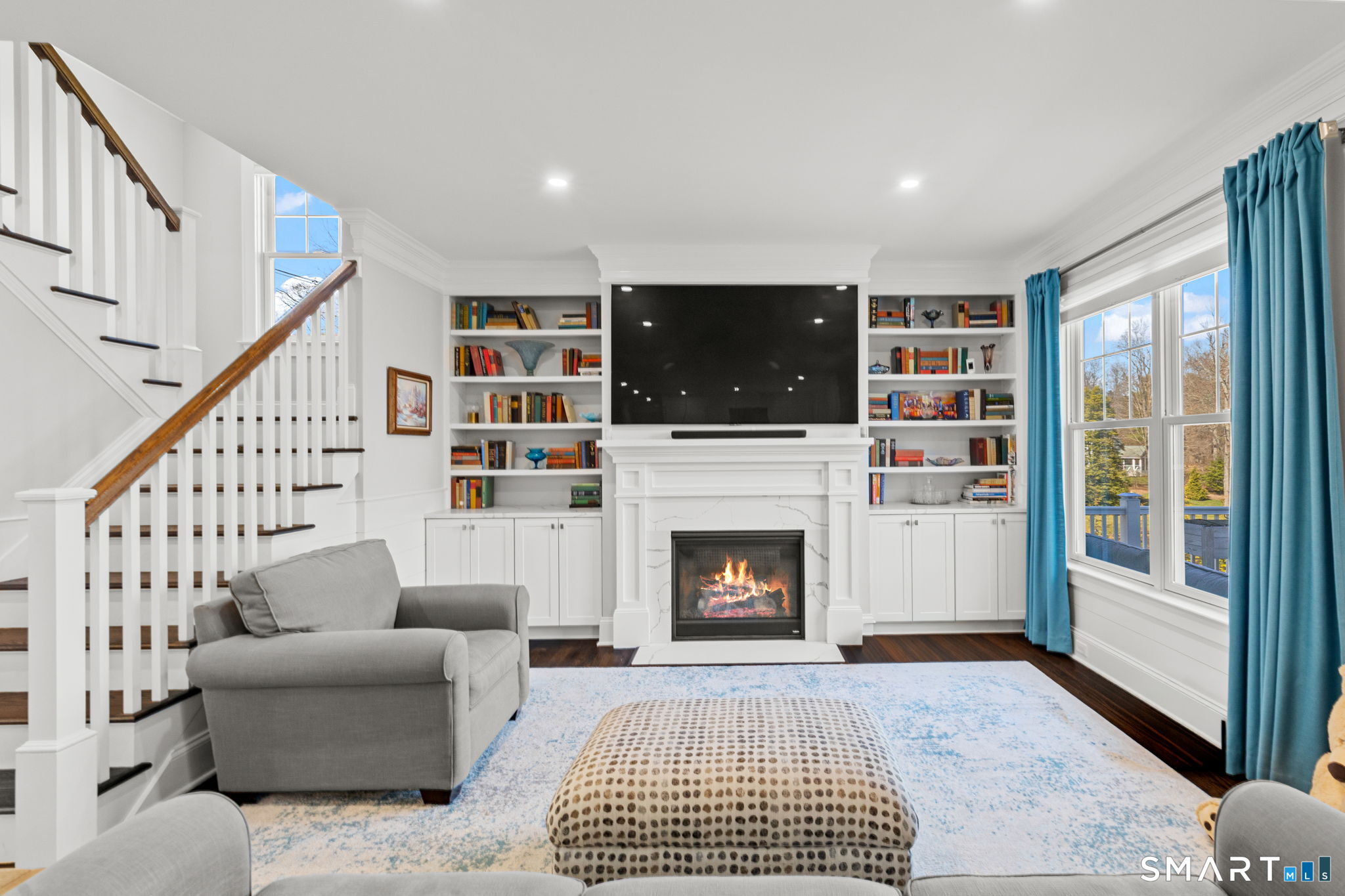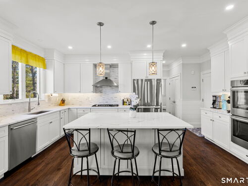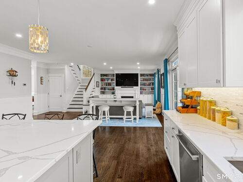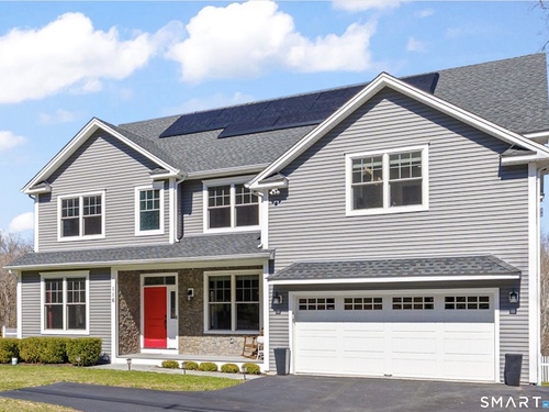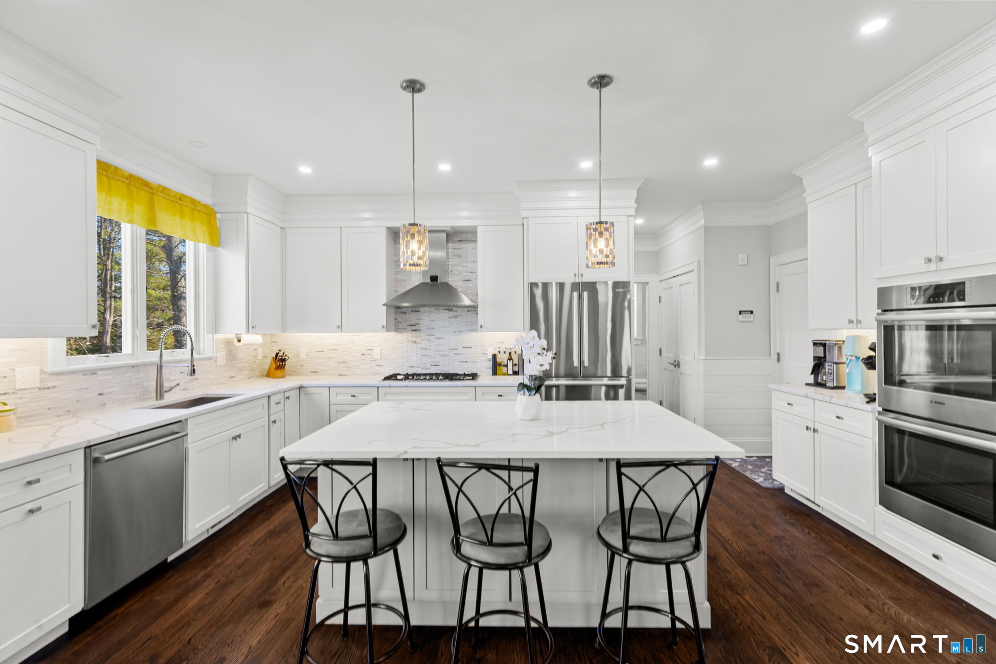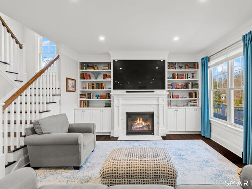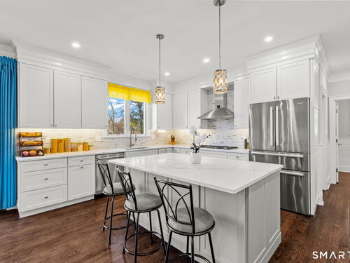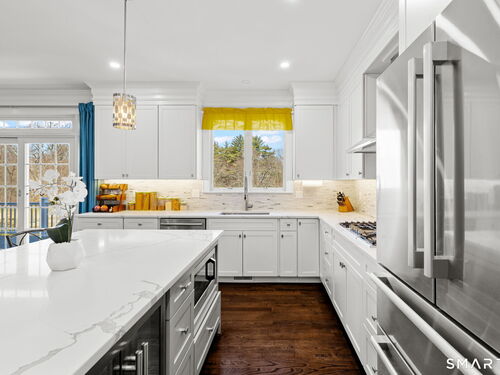 Sparkling 4-bedroom, 4-bathroom home built in 2021 on Silvermine Avenue in Norwalk, Connecticut. The open-plan first floor features a family room with a gas fireplace and custom built-in shelving, a large formal dining room, living room, and a chef's kitchen equipped with stainless steel appliances, a gas cooktop, double wall ovens, a wine cooler, and a breakfast bar - all set on hardwood flooring throughout. The kitchen and living areas open to a large deck overlooking gardens and a water feature with expansive views. The second floor features a large primary bedroom suite with tray ceilings, a gas fireplace, a walk-in closet, and a spa-style bathroom, along with three additional bedrooms and two full bathrooms. A large unfinished walk-up attic provides significant future potential. The full unfinished basement features extra-height ceilings - ideal for finishing as a recreation room, gym, or additional living space. Solar panels and a Tesla Powerwall battery system deliver energy efficiency and backup power. A two-car attached garage and meticulous curb appeal complete the property. Located in the sought-after Silvermine section of Norwalk, CT, residents enjoy proximity to the Merritt Parkway, downtown Norwalk, South Norwalk dining and shopping, and an easy commute to New York City. A move-in-ready home in Silvermine, Norwalk, Connecticut.