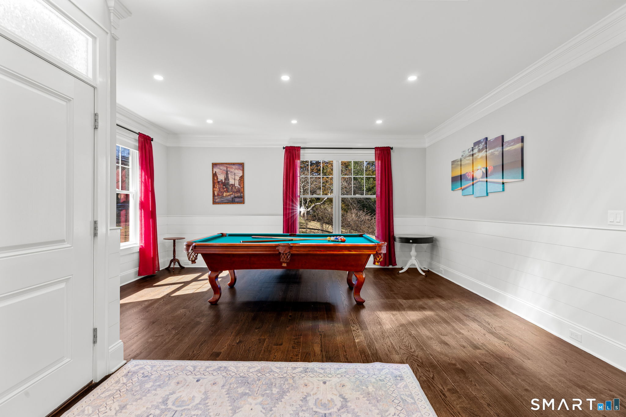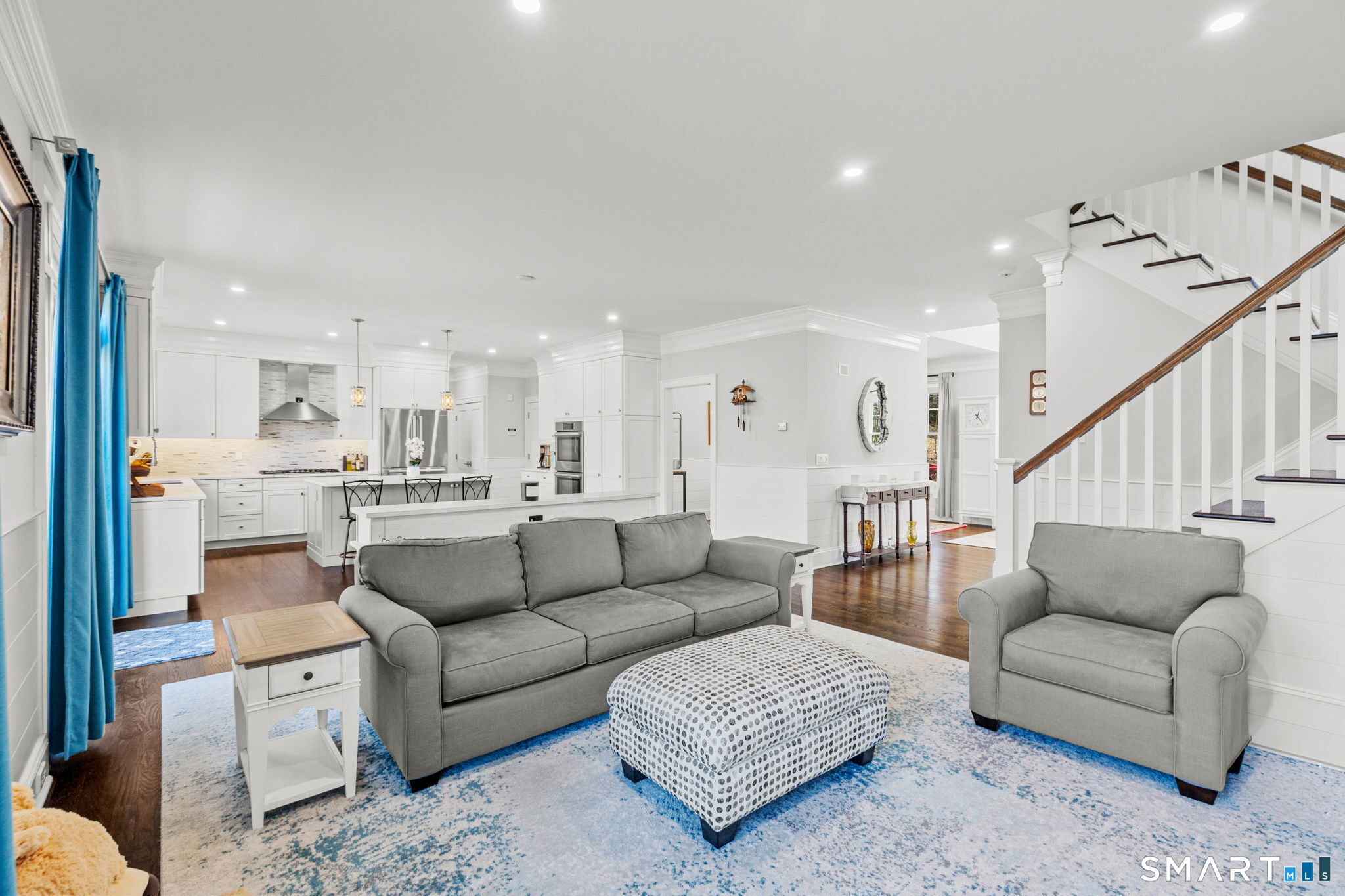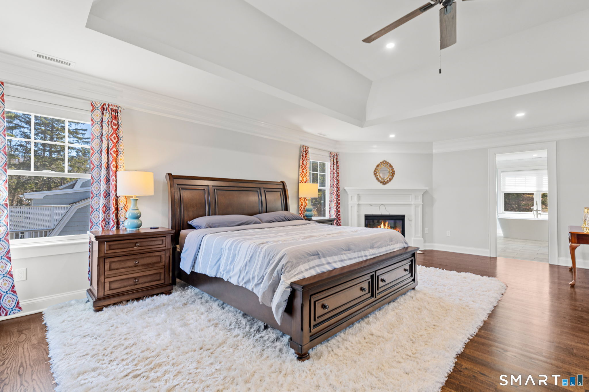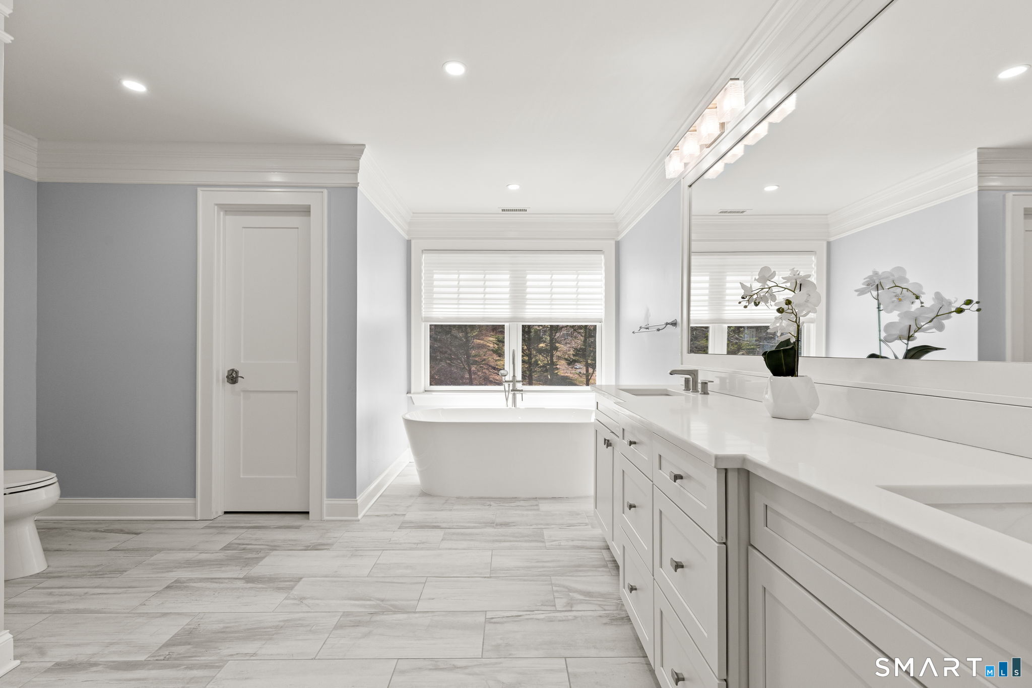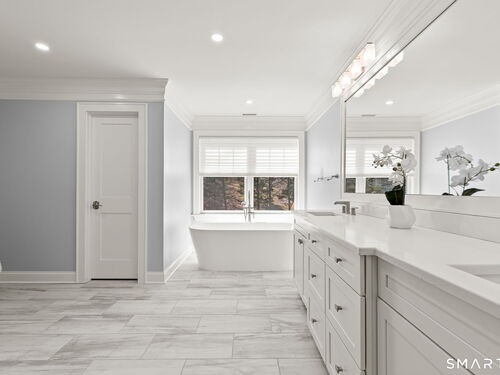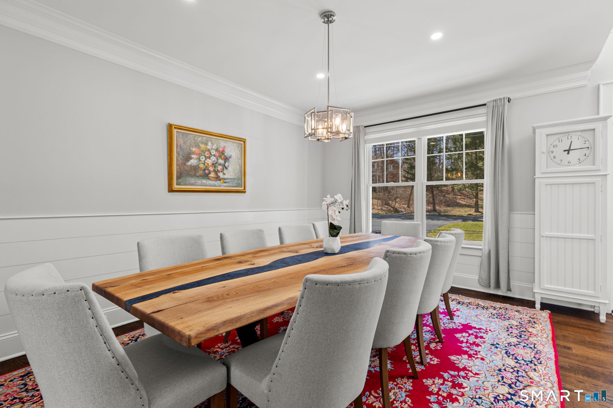 Sparkling 4-bedroom, 4-bathroom home built in 2021 on Silvermine Avenue in Norwalk, Connecticut. The open-plan first floor features a family room with a gas fireplace and custom built-in shelving, a large formal dining room, living room, and a chef's kitchen equipped with stainless steel appliances, a gas cooktop, double wall ovens, a wine cooler, and a breakfast bar - all set on hardwood flooring throughout. The kitchen and living areas open to a large deck overlooking gardens and a water feature with expansive views. The second floor features a large primary bedroom suite with tray ceilings, a gas fireplace, a walk-in closet, and a spa-style bathroom, along with three additional bedrooms and two full bathrooms. A large unfinished walk-up attic provides significant future potential. The full unfinished basement features extra-height ceilings - ideal for finishing as a recreation room, gym, or additional living space. Solar panels and a Tesla Powerwall battery system deliver energy efficiency and backup power. A two-car attached garage and meticulous curb appeal complete the property. Located in the sought-after Silvermine section of Norwalk, CT, residents enjoy proximity to the Merritt Parkway, downtown Norwalk, South Norwalk dining and shopping, and an easy commute to New York City. A move-in-ready home in Silvermine, Norwalk, Connecticut.