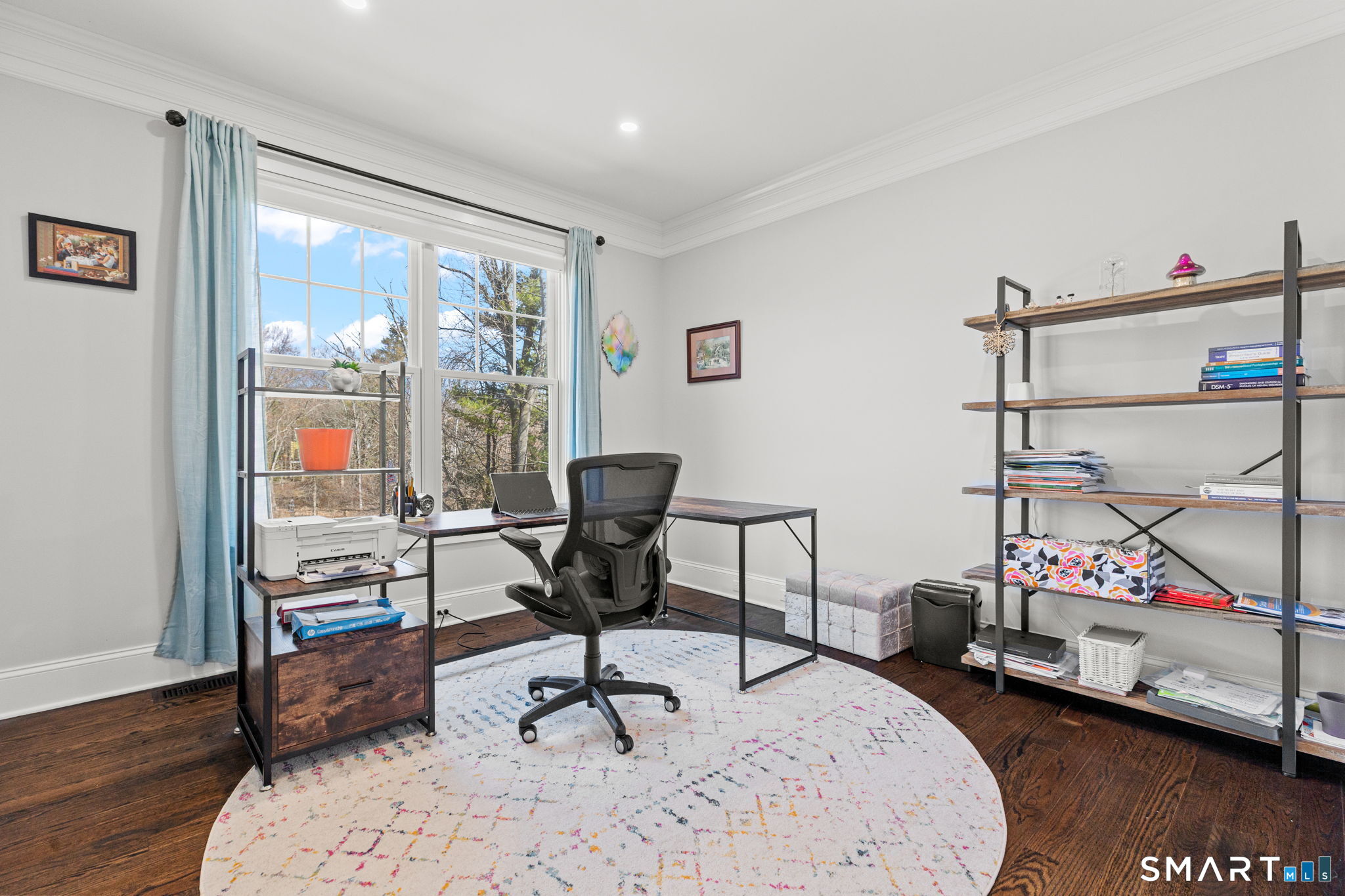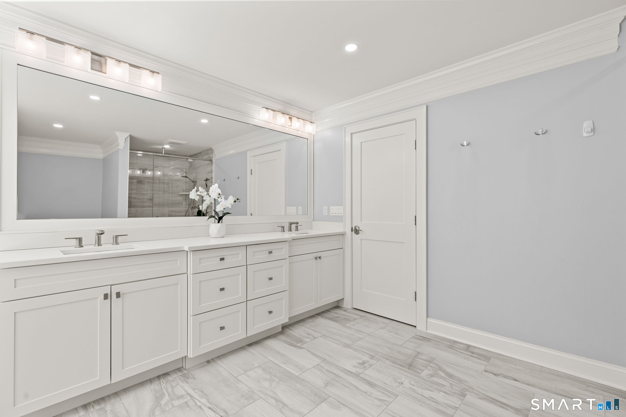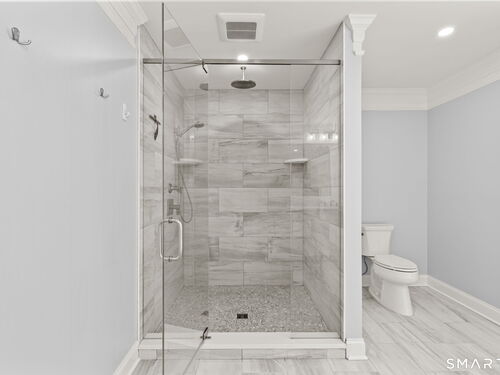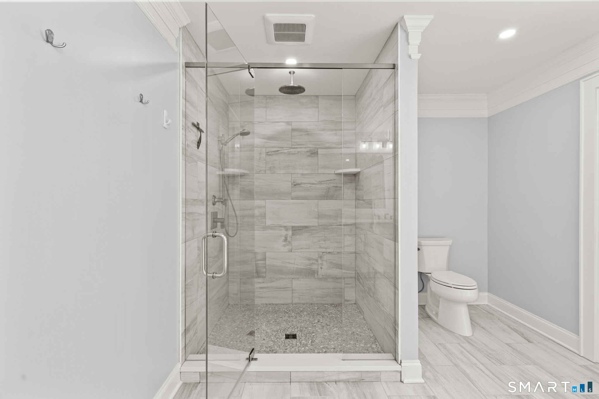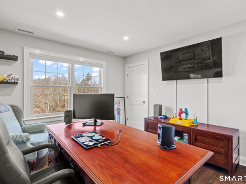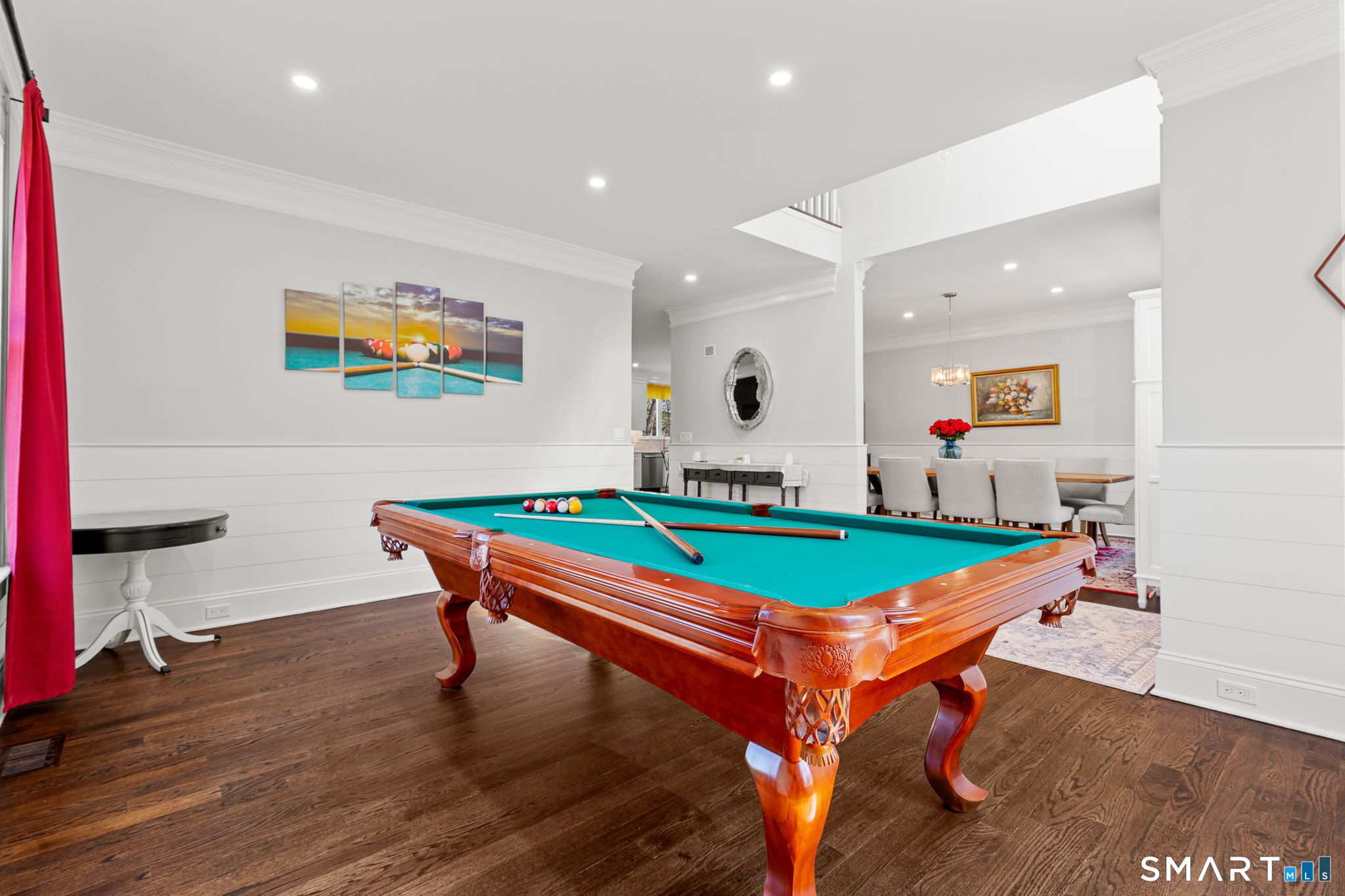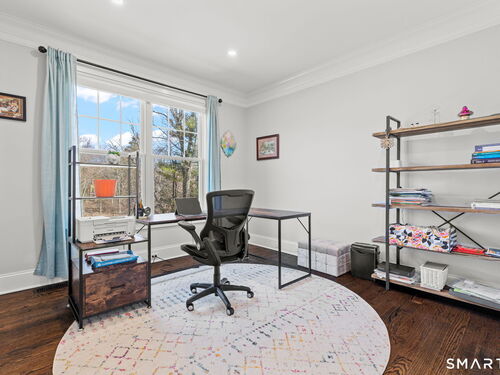 Sparkling 4-bedroom, 4-bathroom home built in 2021 on Silvermine Avenue in Norwalk, Connecticut. The open-plan first floor features a family room with a gas fireplace and custom built-in shelving, a large formal dining room, living room, and a chef's kitchen equipped with stainless steel appliances, a gas cooktop, double wall ovens, a wine cooler, and a breakfast bar - all set on hardwood flooring throughout. The kitchen and living areas open to a large deck overlooking gardens and a water feature with expansive views. The second floor features a large primary bedroom suite with tray ceilings, a gas fireplace, a walk-in closet, and a spa-style bathroom, along with three additional bedrooms and two full bathrooms. A large unfinished walk-up attic provides significant future potential. The full unfinished basement features extra-height ceilings - ideal for finishing as a recreation room, gym, or additional living space. Solar panels and a Tesla Powerwall battery system deliver energy efficiency and backup power. A two-car attached garage and meticulous curb appeal complete the property. Located in the sought-after Silvermine section of Norwalk, CT, residents enjoy proximity to the Merritt Parkway, downtown Norwalk, South Norwalk dining and shopping, and an easy commute to New York City. A move-in-ready home in Silvermine, Norwalk, Connecticut.