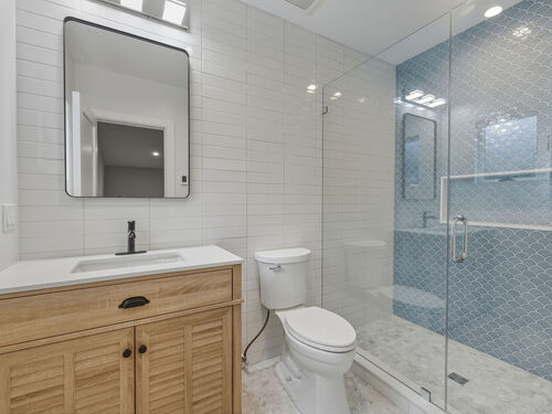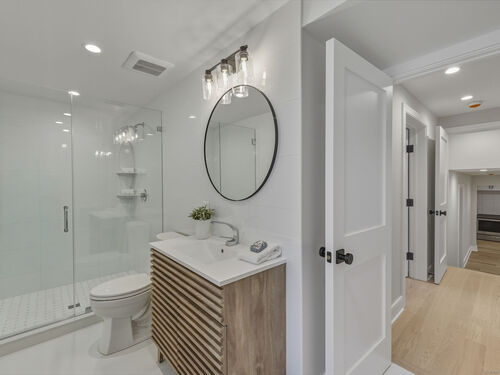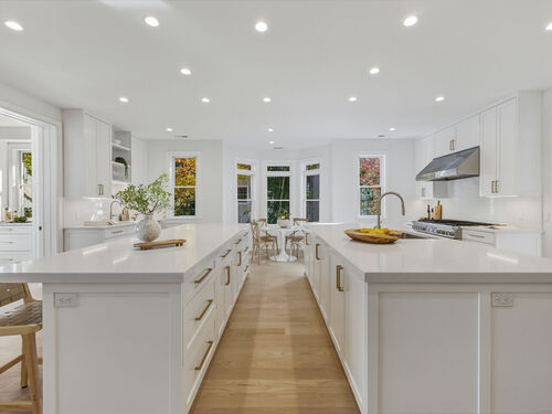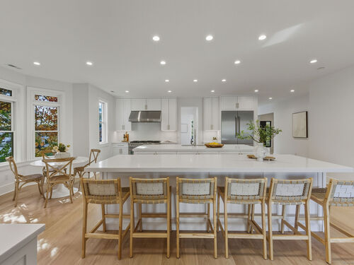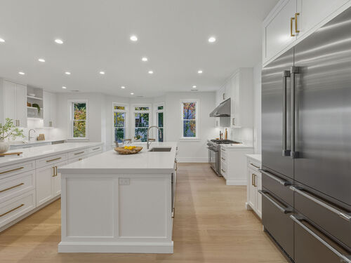 Experience luxury living at its finest in this exquisite direct waterfront property that has been completely renovated by award winning builder. Convenience & sophisticated style is what you get with this ultra-chic 6 bedroom 6.5 bathroom one of a kind property that will take your breath away from the moment you walk through the front door. Built with the best finishes in mind, you'll enjoy 10ft+ ceilings, flexible open floor plan, private office, walls of large-pane oversized glass with breathtaking water views, and formal rooms that flow seamlessly from one to another. Entertaining is easy in the ultimate dream kitchen featuring two islands with 2"quartz countertops, chefs appliances, two dishwashers, wine fridge, custom walk-in pantry, wet bar, and dramatic windowed breakfast area that opens to the family room overlooking the fabulous deck with unobstructed views of the lake. Wide plank floors, custom staircase with glass railings, and cubie built-ins will show the attention to detail. Absolutely spectacular primary bedroom with sitting are, huge walk-in closet, private deck and spa like bathroom featuring heated floors, double sink vanity and beautiful shower w/ frameless glass door. (All bedrooms have en-suite bathrooms with heated floors). Head Downstairs to a beautifully finished walkout lower level with full kitchen, additional bedroom, full bath, media room, game room, Gym, and 2nd laundry. The perfect space for au-pair quarters or in-law suite.