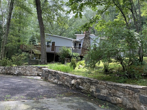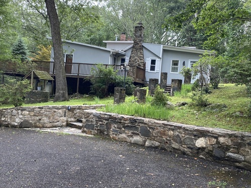 Lovely private Easton wooded setting overlooking Morehouse Brook. Large level parking that allows truck turn around. Lower driveway access to Brook and lower level entrance.Close to Parkway Rt15 former exit 46 1 mile away.