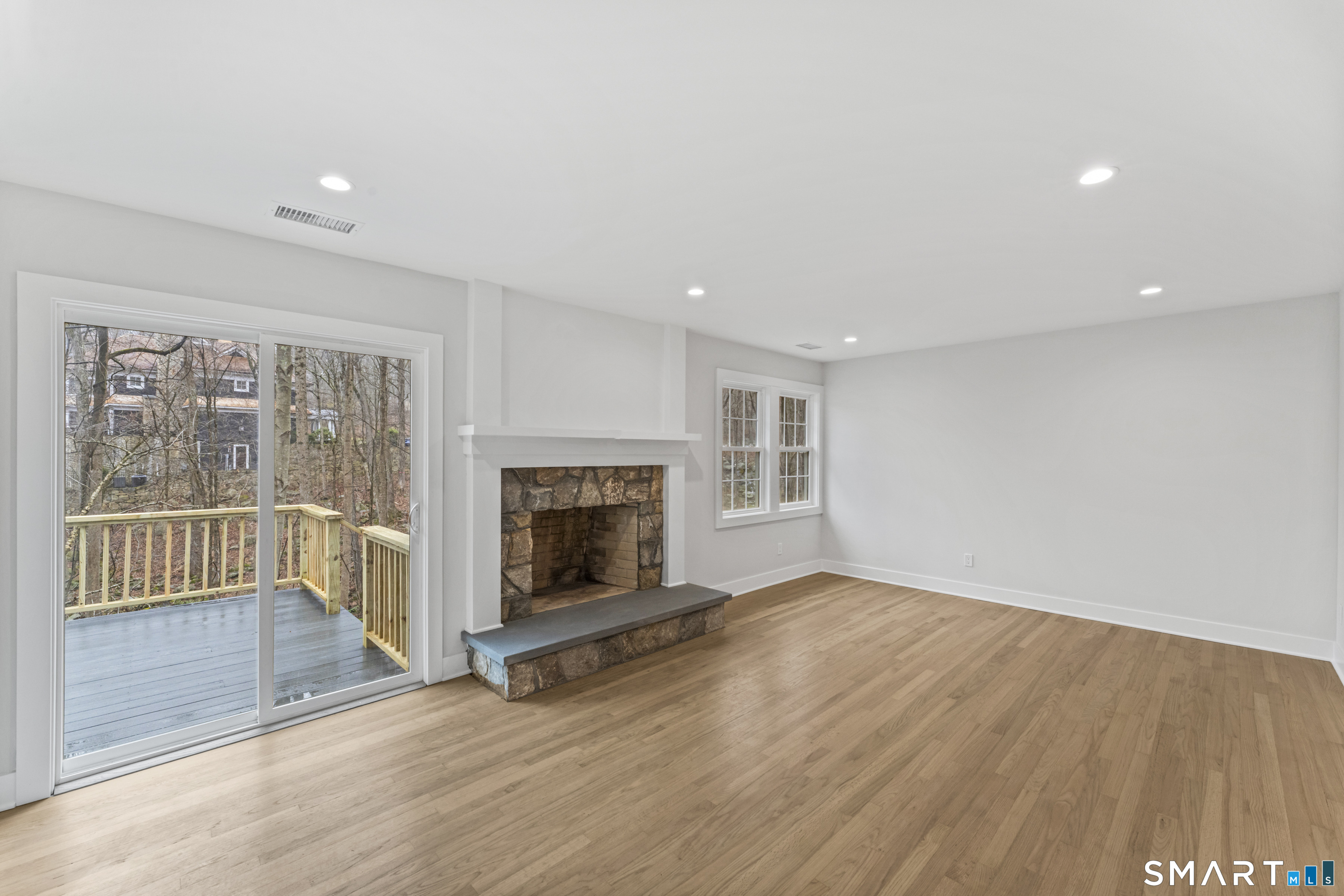 Balcony/Deck, Fireplace, Hardwood Floor