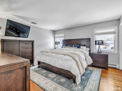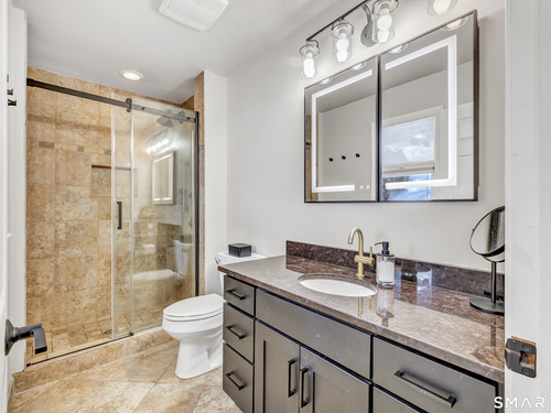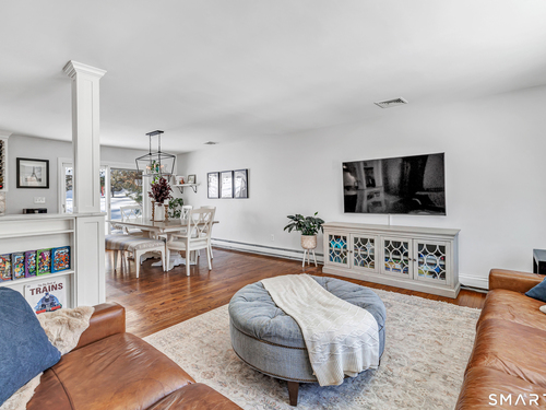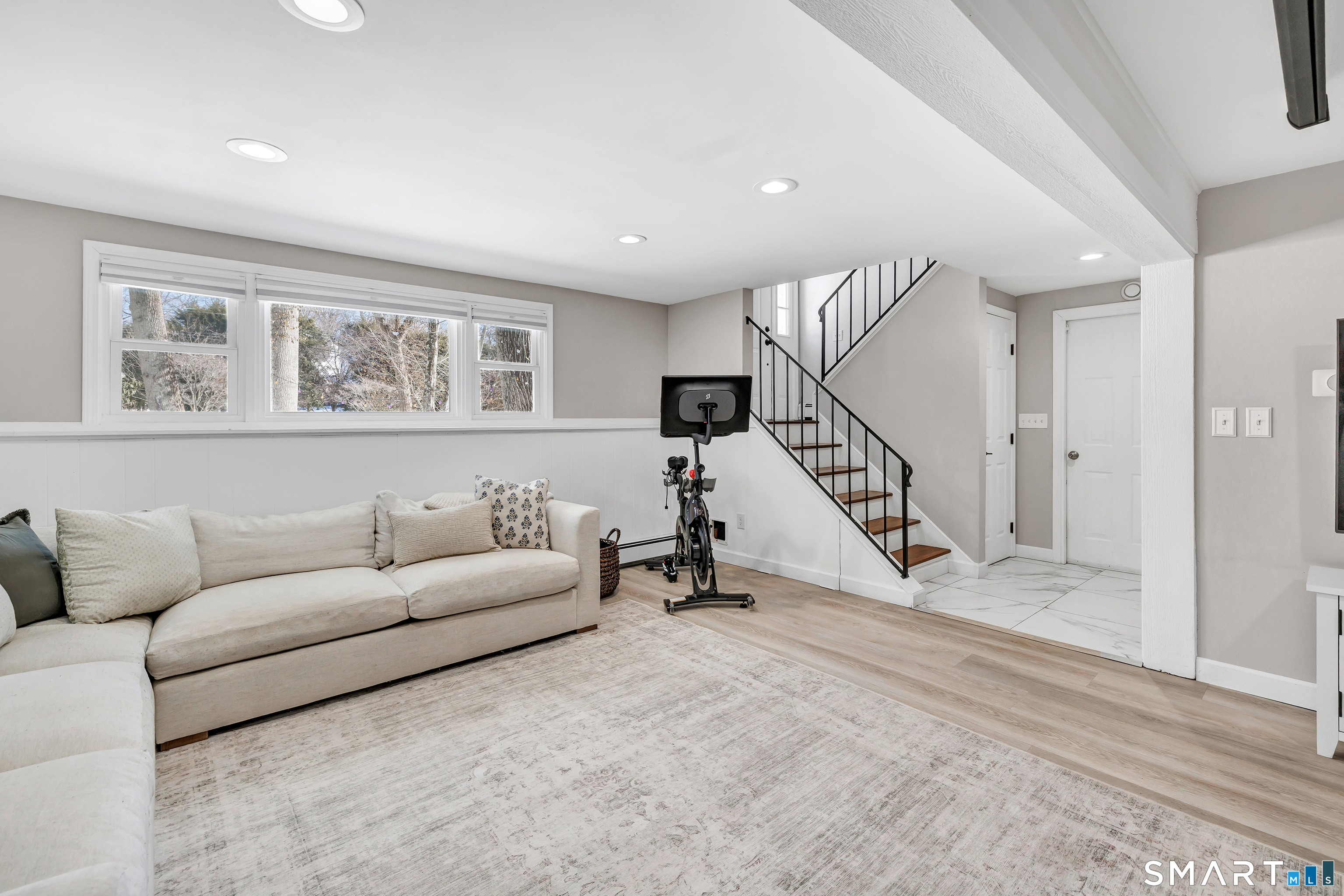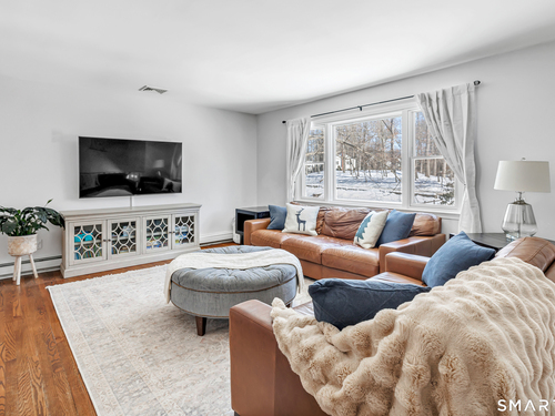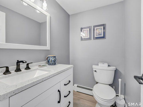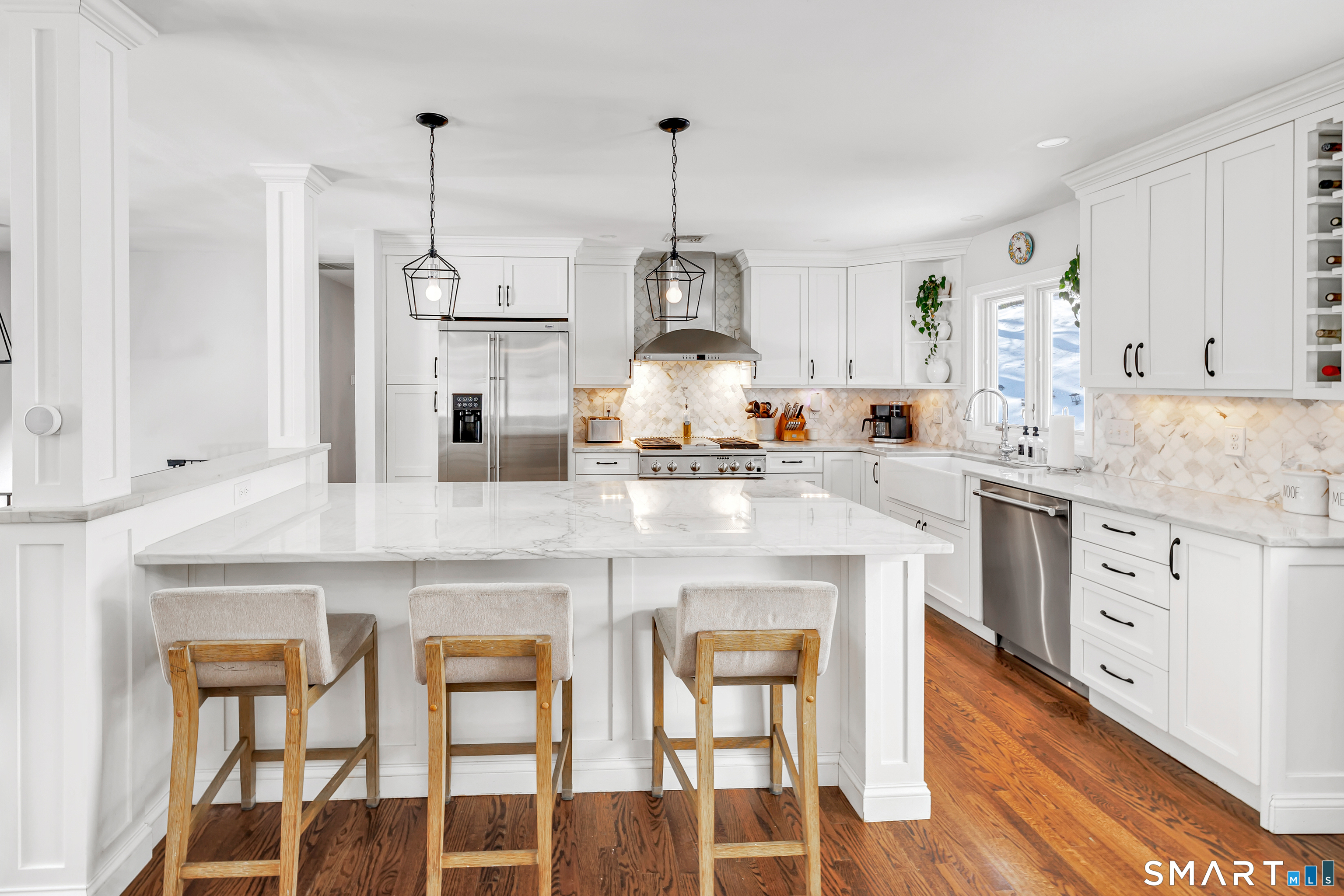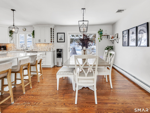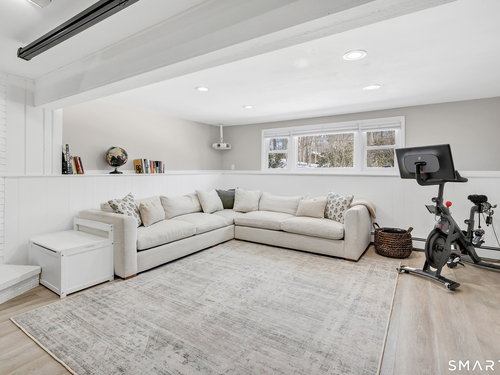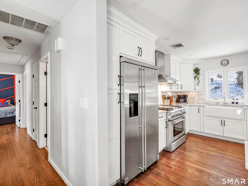 Private, peaceful, and perfectly located, this University-area home offers a serene natural setting just minutes from Fairfield's town center, train, and beaches. Set in Fairfield's highly sought-after University area, this beautifully updated 3-bedroom, 2.5-bath home offers two levels of living with a cozy fireplace and a rare connection to nature. Surrounded by mature trees, stone walls, a tranquil creek, and a waterfall, the setting feels private yet convenient. The main level features a light-filled open floor plan anchored by a stunning kitchen with quartzite island, Calacatta marble backsplash, farmhouse sink, custom built-in wine rack, and new dishwasher. Newly sanded and stained hardwood floors flow through the main living areas and bedrooms. Large windows frame views of natural stone and landscaping, with the soothing sound of water just outside. Step from the kitchen to a private backyard and deck with custom pergola-ideal for outdoor dining or relaxing. The finished lower level offers flexible living space with new premium Italian luxury vinyl flooring and a fireplace, perfect for a family room, rec room, or home office. Custom laundry cabinetry with butcher block counter and a new smart washer and dryer complete the lower level. Major improvements include a new high-efficiency boiler, water tank, updated piping, zone system, and upgraded 200-amp electrical with generator hookup. Exterior upgrades include a newly paved driveway with Belgian block, freshly painted..