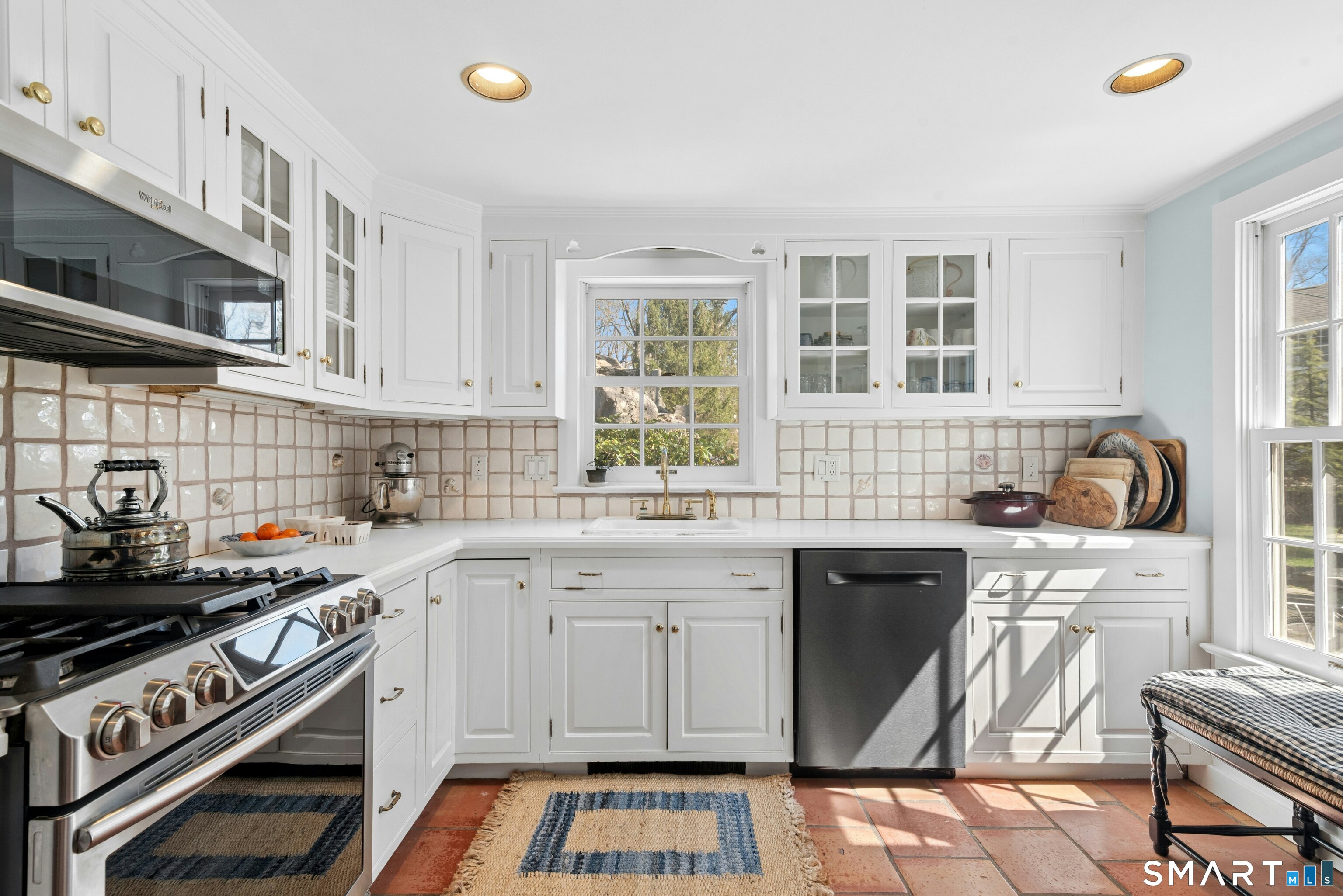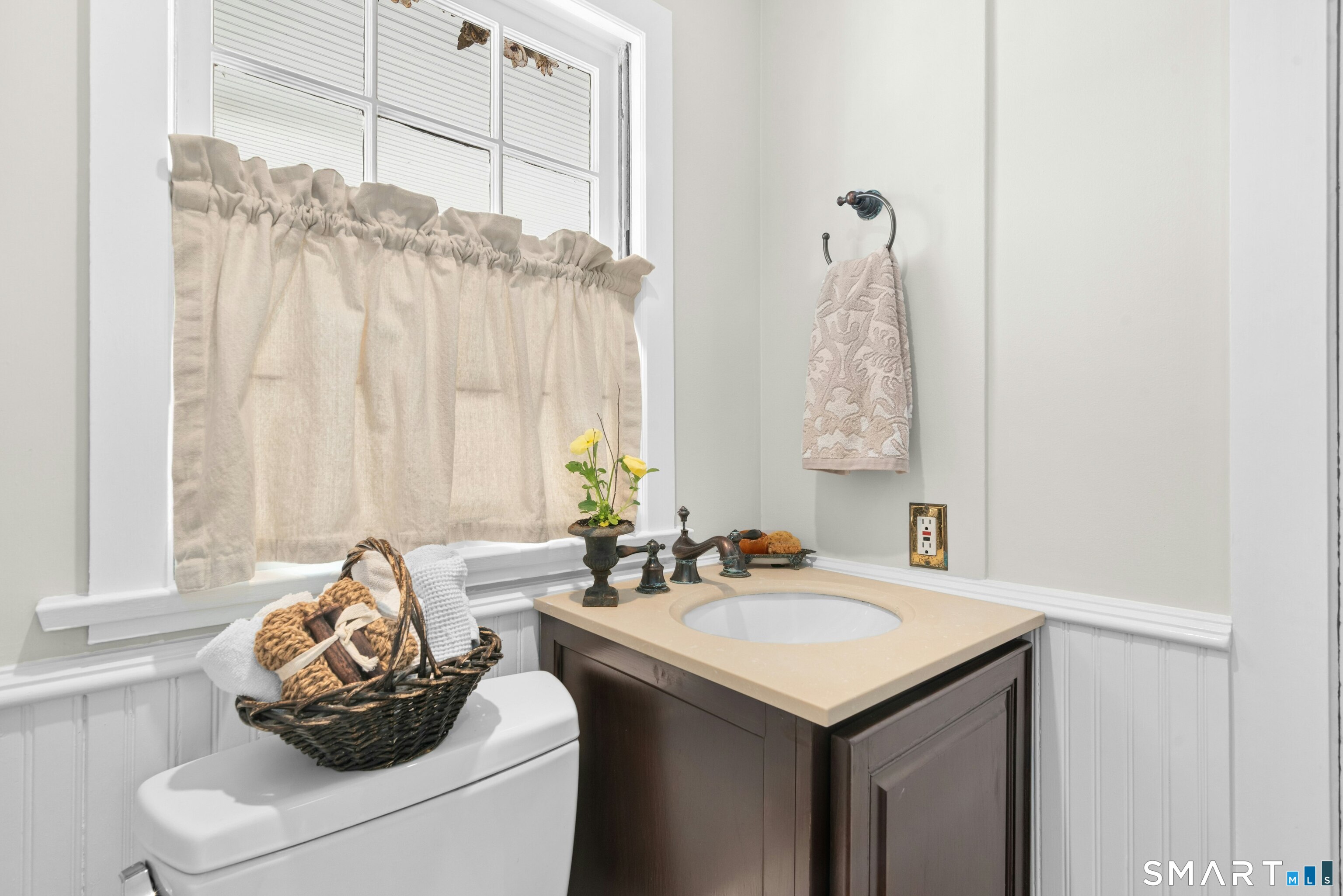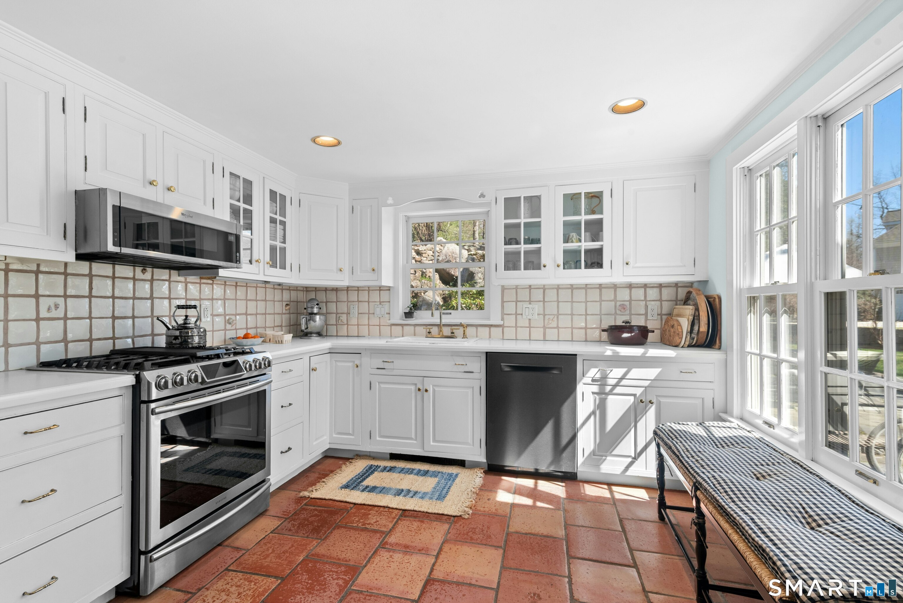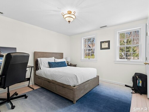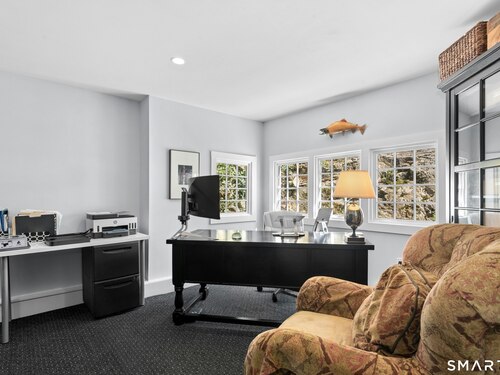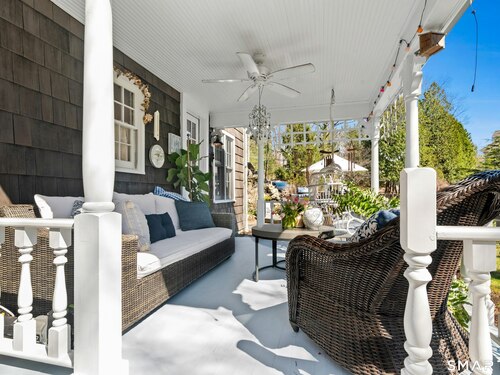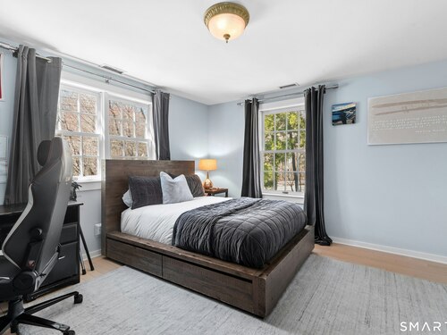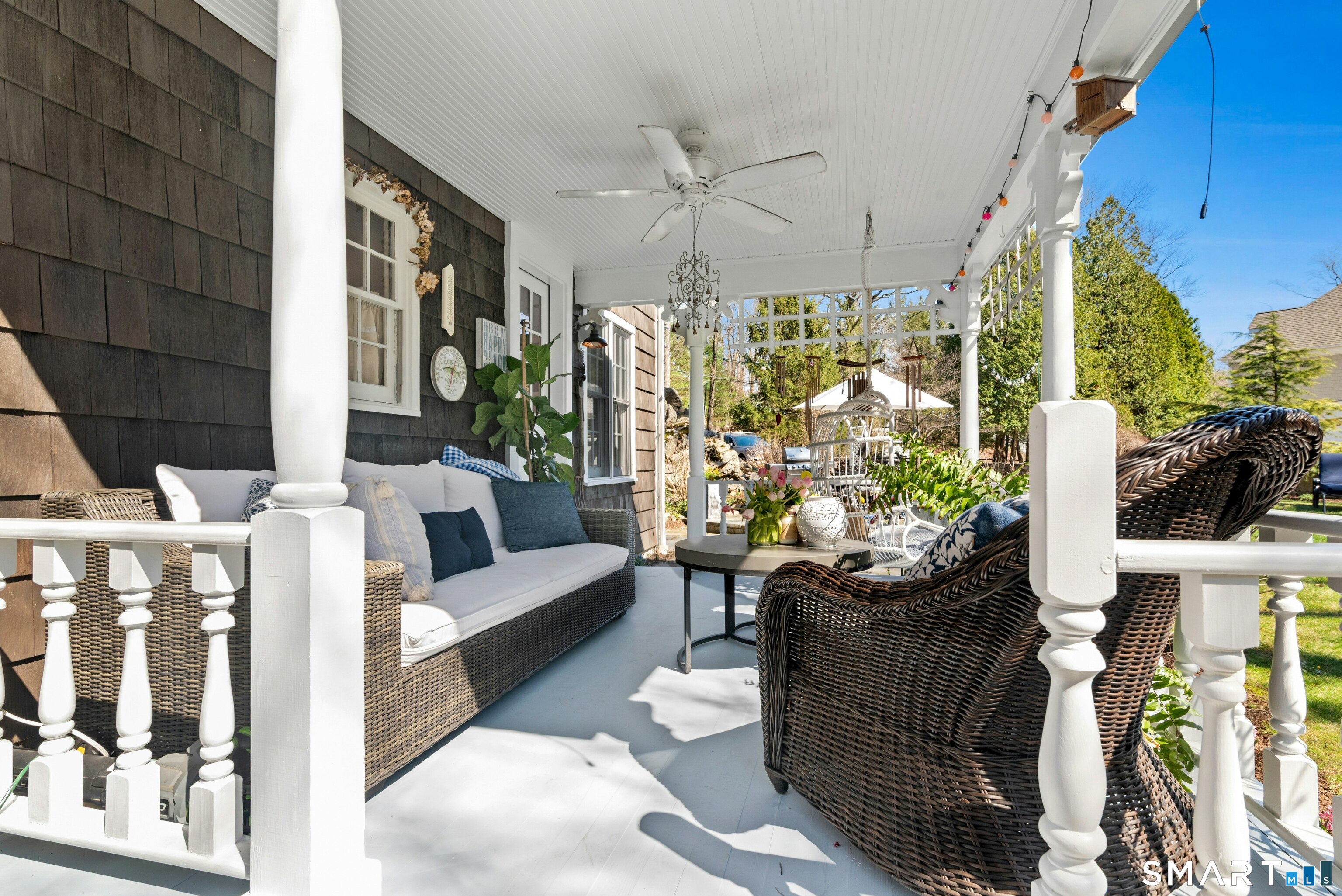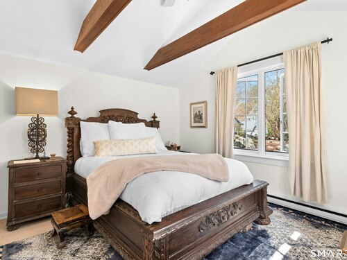 Filled with natural light from large, plentiful windows and featuring two fireplaces, this lovely 3-5 bedroom, 2-bath home blends authentic New England character with thoughtful updates in a peaceful pondside setting close to town and schools. Originally an 1800s home that was carefully deconstructed and rebuilt at its current location in 1952, the property retains beautiful antique details, including historic wood paneling and charming architectural elements. Inviting living spaces include a spacious family room addition and a second-floor sitting area. Flexible bonus rooms offer options for a nursery, home office, guest or au pair space, or potential primary-suite expansion. Main-level laundry, mudroom/office, attached garage, and central A/C provide everyday convenience. Set on a serene 0.80-acre lot, the property features multiple outdoor living areas for entertaining and relaxing, including a welcoming front porch, a firepit gathering space, and seating areas overlooking the picturesque pond and seasonal brook. Spring brings blooming daffodils and irises along the water's edge, enhancing the natural beauty of the setting. Backing to a private lane with a warm neighborhood feel and located close to Wilton's town center, schools, and the Norwalk River walking trail, this home offers a rare combination of historic charm, natural beauty, and convenience.