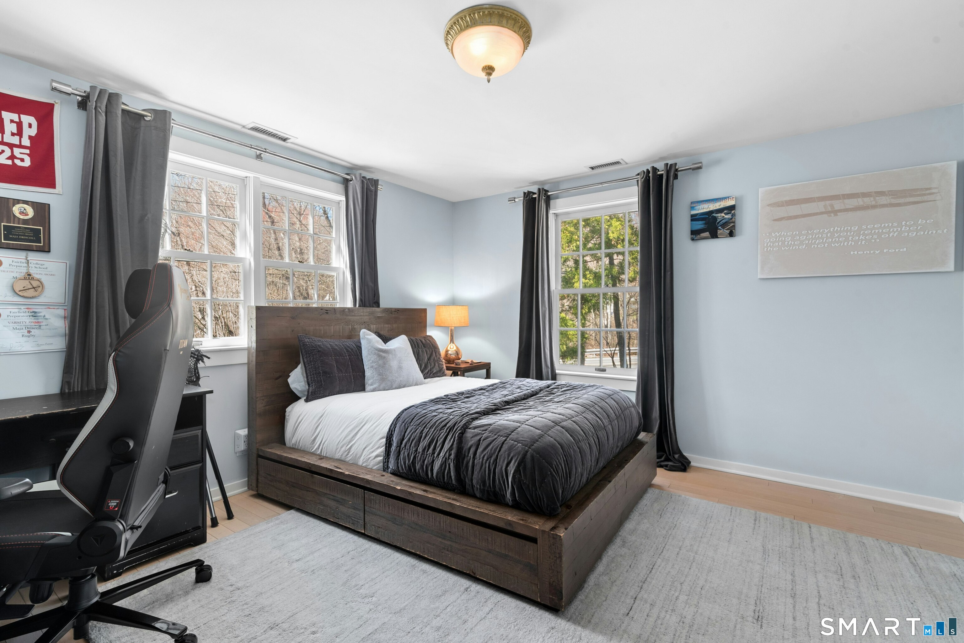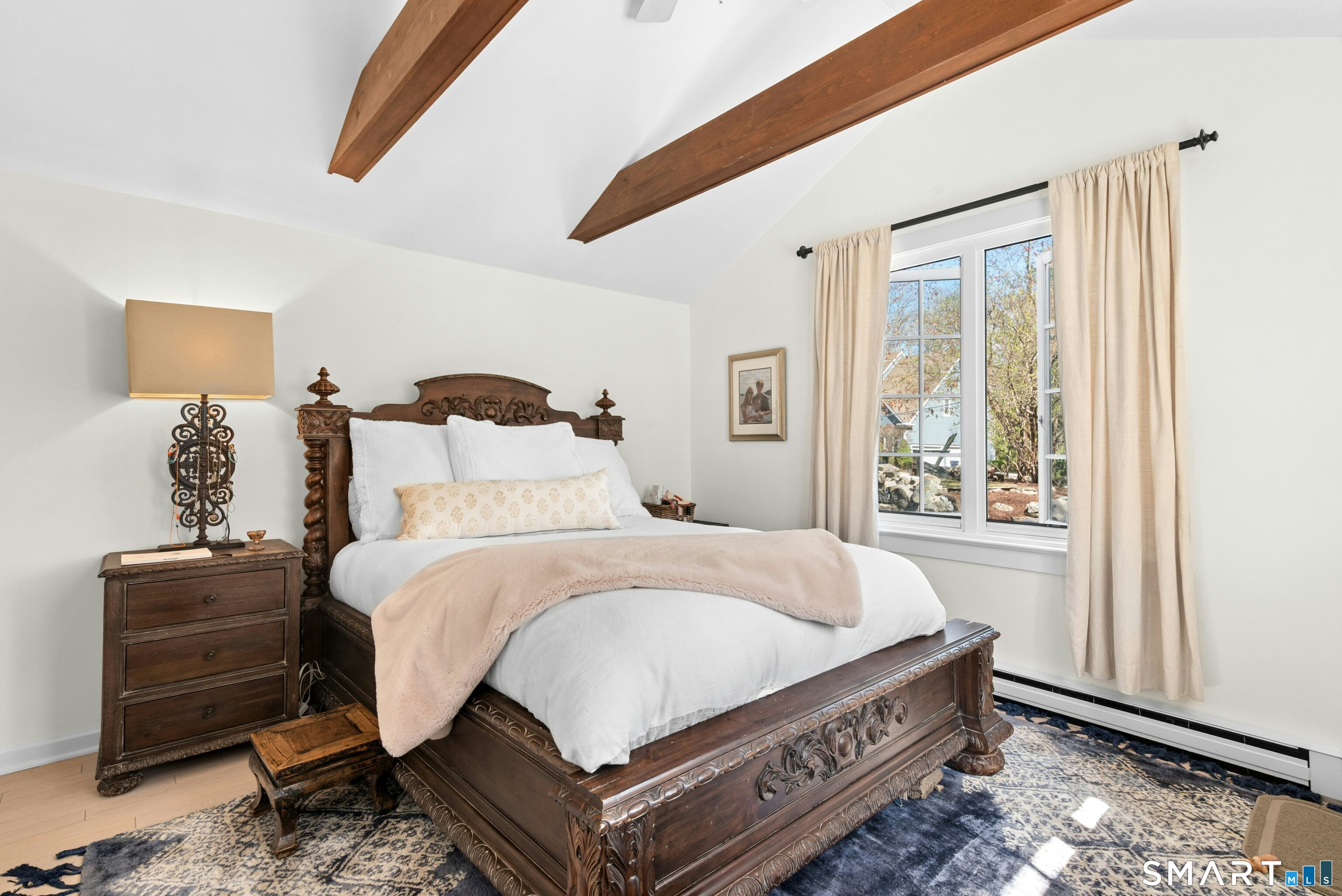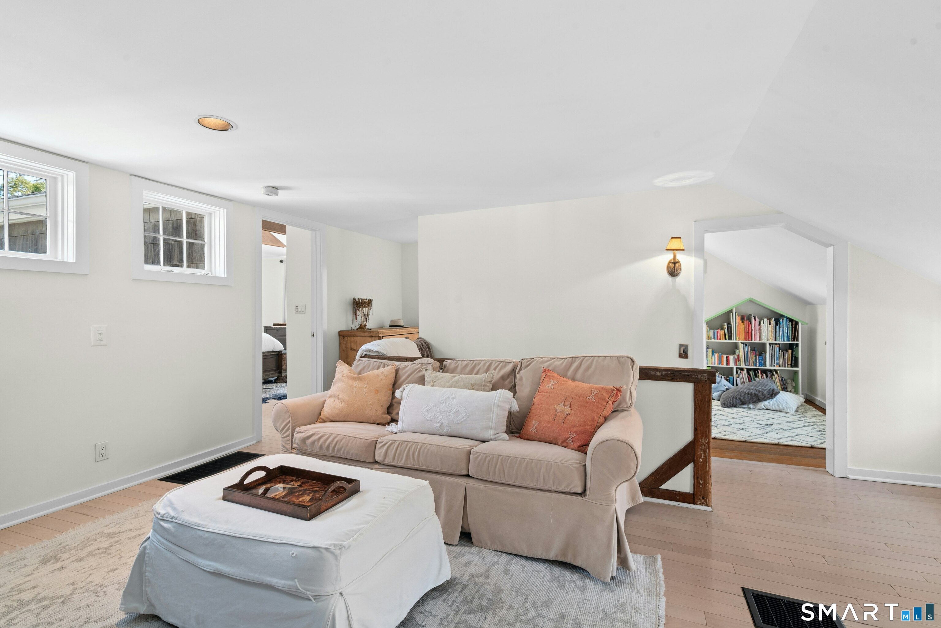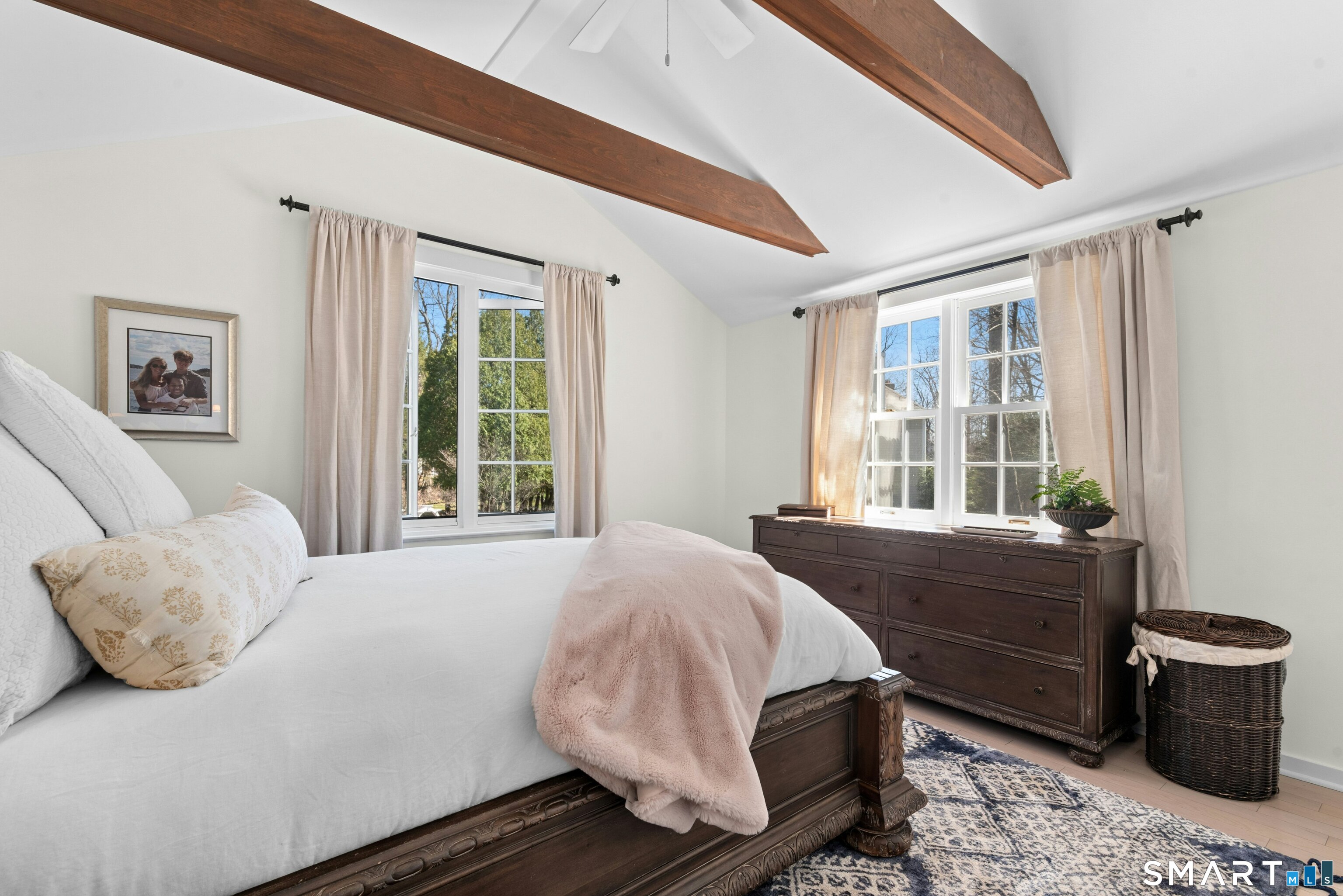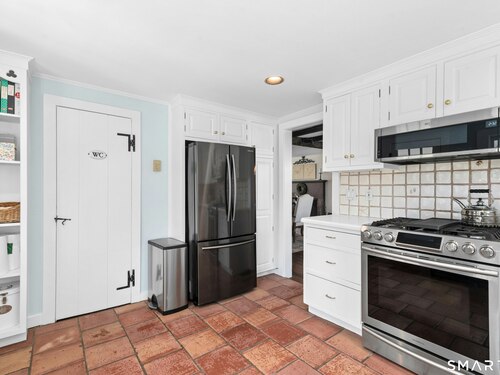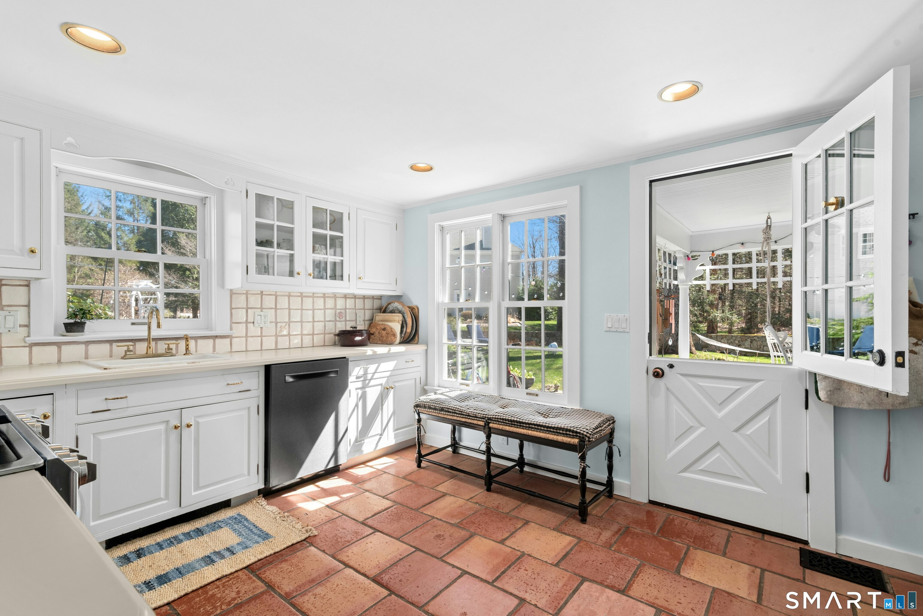 Filled with natural light from large, plentiful windows and featuring two fireplaces, this lovely 3-5 bedroom, 2-bath home blends authentic New England character with thoughtful updates in a peaceful pondside setting close to town and schools. Originally an 1800s home that was carefully deconstructed and rebuilt at its current location in 1952, the property retains beautiful antique details, including historic wood paneling and charming architectural elements. Inviting living spaces include a spacious family room addition and a second-floor sitting area. Flexible bonus rooms offer options for a nursery, home office, guest or au pair space, or potential primary-suite expansion. Main-level laundry, mudroom/office, attached garage, and central A/C provide everyday convenience. Set on a serene 0.80-acre lot, the property features multiple outdoor living areas for entertaining and relaxing, including a welcoming front porch, a firepit gathering space, and seating areas overlooking the picturesque pond and seasonal brook. Spring brings blooming daffodils and irises along the water's edge, enhancing the natural beauty of the setting. Backing to a private lane with a warm neighborhood feel and located close to Wilton's town center, schools, and the Norwalk River walking trail, this home offers a rare combination of historic charm, natural beauty, and convenience.
