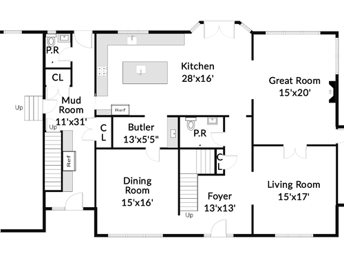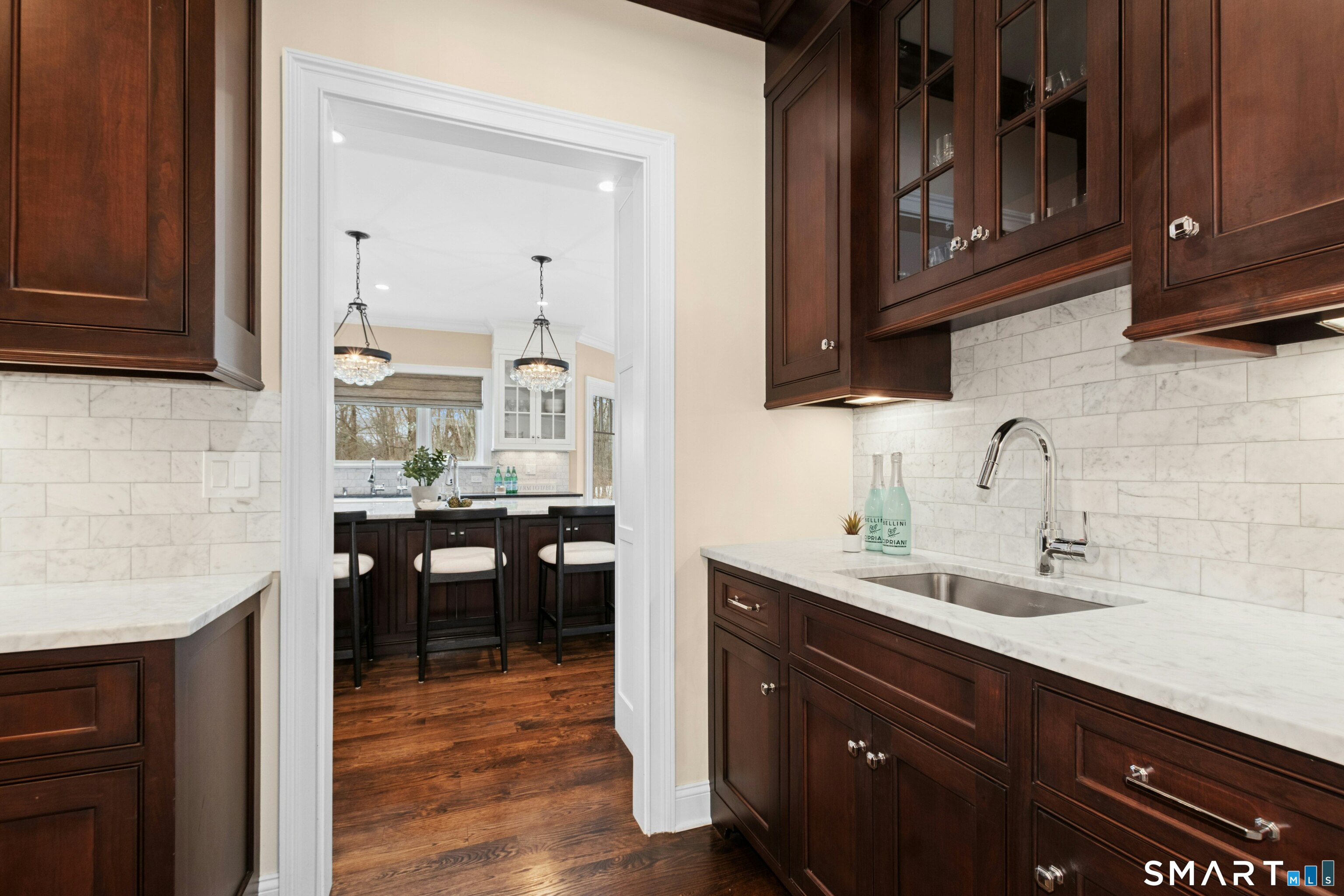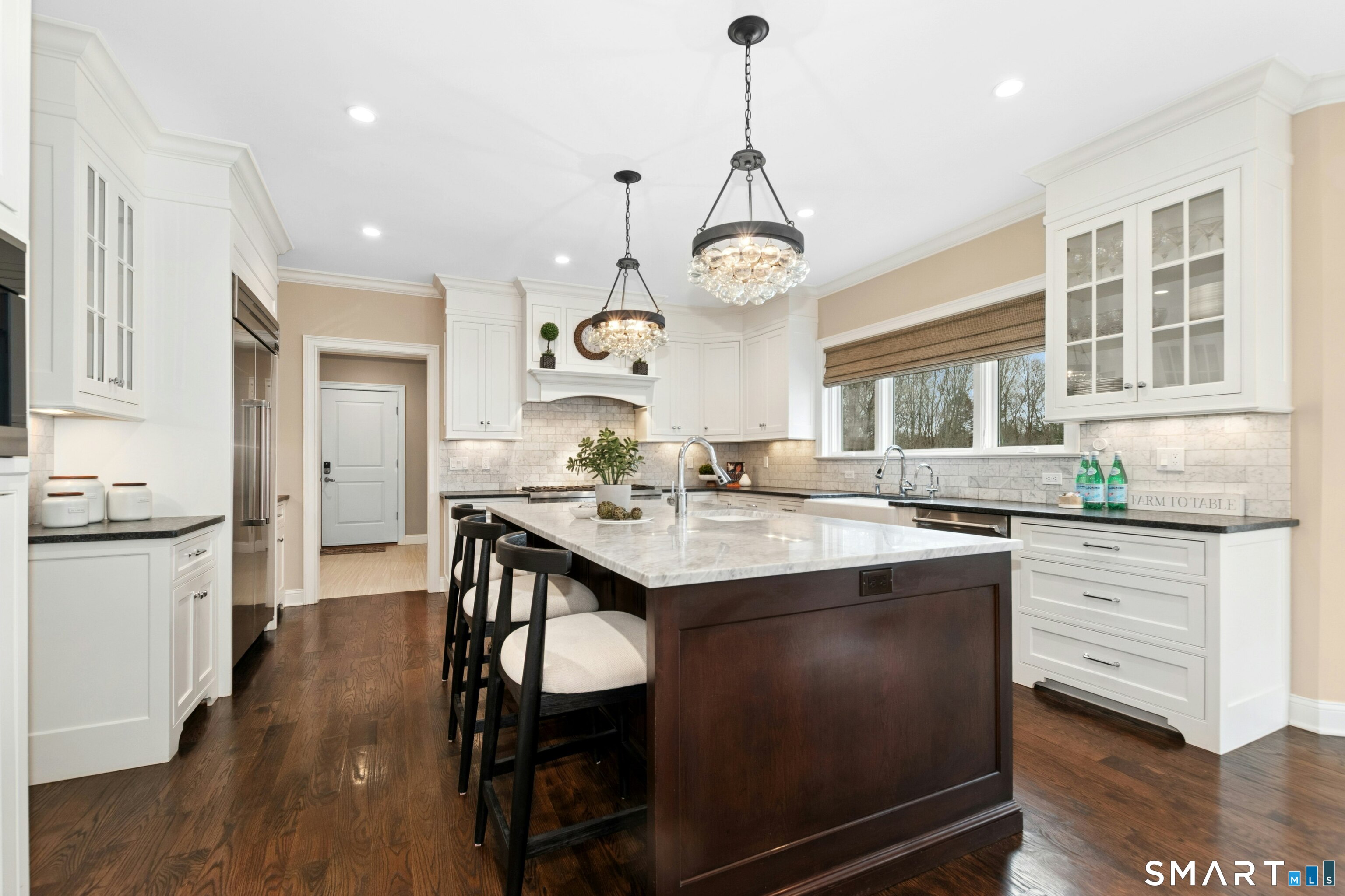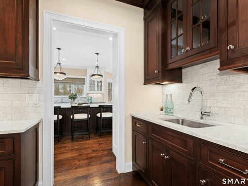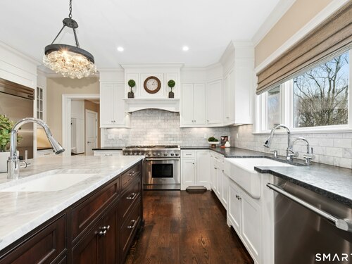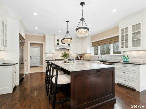Kitchen (Main Level)9 ft+ Ceilings, Granite Counters, Dining Area, French Doors, Island, Hardwood Floor