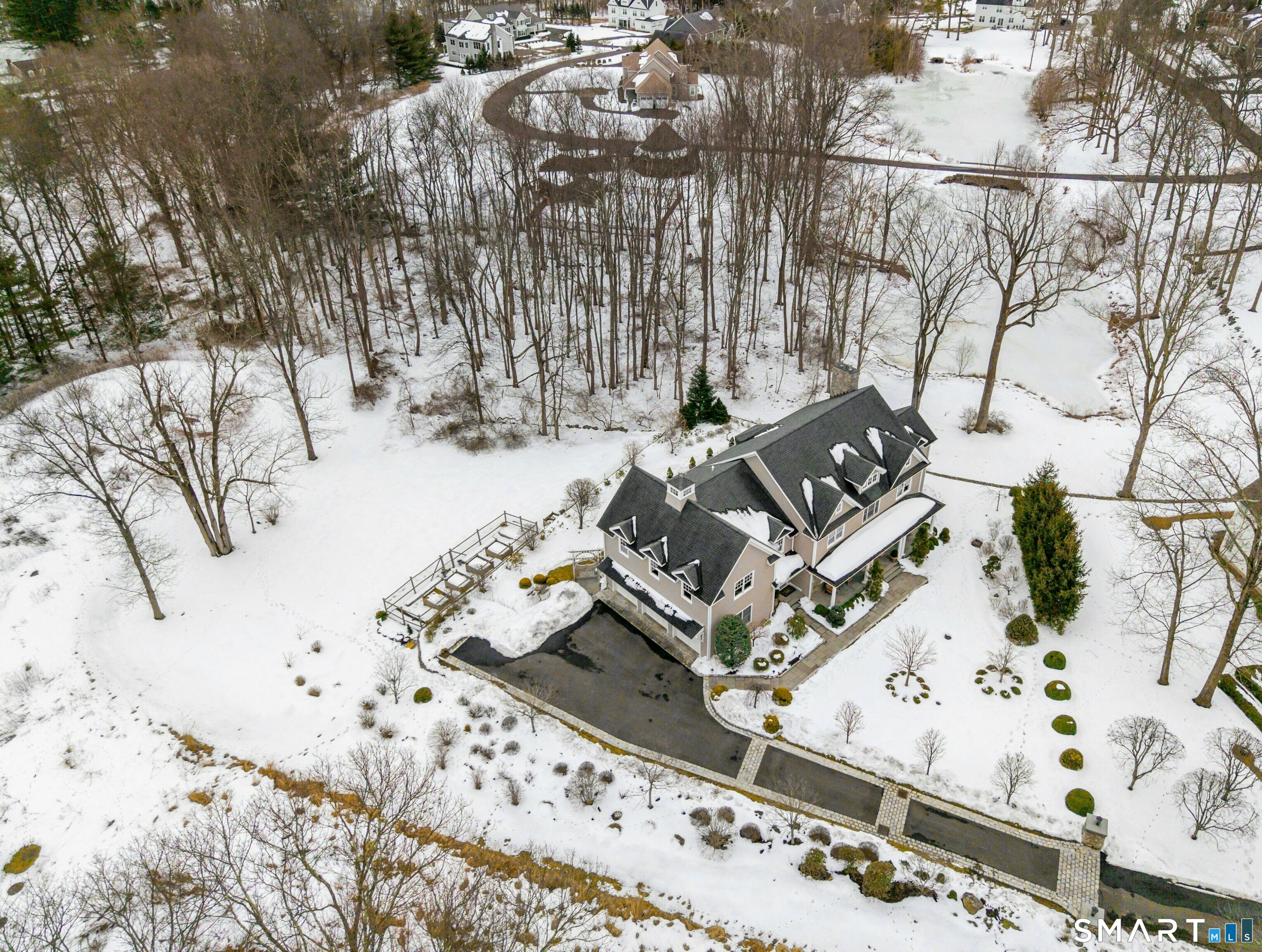 21 Ravenglass Drive offers the rare balance of peaceful waterfront living and the amenities of the gated Windermere on the Lake community. Tucked at the end of a quiet cul-de-sac, the home sits on a park-like property with mature landscaping, blooming gardens, an enclosed vegetable garden, and a sunny yard opening to the lake and protected nature preserve-ensuring enduring privacy and tranquility. Scenic pathways lead to the community pool, tennis/pickle ball courts, clubhouse, and lakeside trails just steps away. The exterior of this exceptional Colonial is enhanced by a new Belgium block-edged driveway with inset lighting, creating a stunning evening approach. Inside, the sun-filled home is pristine and designed to capture beautiful lake views through oversized windows. Highlights include soaring ceilings, rich hardwood floors, and an open, elegant floor plan. The kitchen features an oversized marble island, breakfast room with patio access, high-end appliances, and a built-in Miele coffee maker, along with a butler's pantry and custom mudroom. A light-filled office enjoys lake views, while both the great room and primary suite offer gas fireplaces. The primary suite includes a custom dressing room and spa-like bath. All bedrooms are ensuite or Jack/Jill. A generous bonus room adds flexibility, and an expansive unfinished basement and walk-up attic provide exceptional future potential. This is more than a home-it's a place to slow down, enjoy nature, & savor every season!