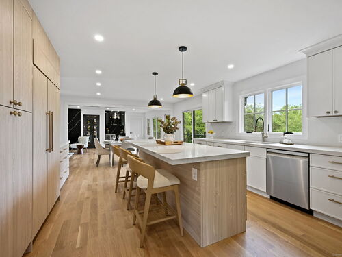 Designed for flexibility & privacy. Stunningly re-imagined & rebuilt Westport residence offers TWO distinct living levels w/bdrm suites on both floors. Ideal for today's evolving lifestyles. Main-level living is complimented by a private lower-level retreat, perfect for guests, home offices, or extended living needs, all set on beautiful, serene property.Prepare to be wowed by this 4-bedroom, 3 full and 2 half bath masterpiece, set on over 2 acres of private, picturesque grounds with plenty of room for a pool.This home is fully equipped with the latest in smart home technology. The open-concept floor plan centers around a to die for chef's kitchen w/top-of-the-line appliances & designer finishes-that flows seamlessly into the living room w/a cozy fireplace, stylish bar, & show-stopping wine display. Expansive sliders open to a sun-soaked deck w/panoramic views of your sprawling backyard extending all the way to the Saugatuck River!.The luxurious primary suite is a private retreat, featuring a spa-inspired bath w/radiant heated floors, fireplace,& generous walk-in closet.A dramatic spiral staircase leads to an intimate office loft, while sliding doors open to a deck w/breathtaking vistas. Second ensuite bedroom, half bath, & welcoming foyer complete the first floor.On the lower 2 add'l bdrms share a jack & jill bath. You'll also find a laundry room, powder room, and a spacious family room with frplc.Finished 3rd level w/endless possibilities for a gym, office or rec room