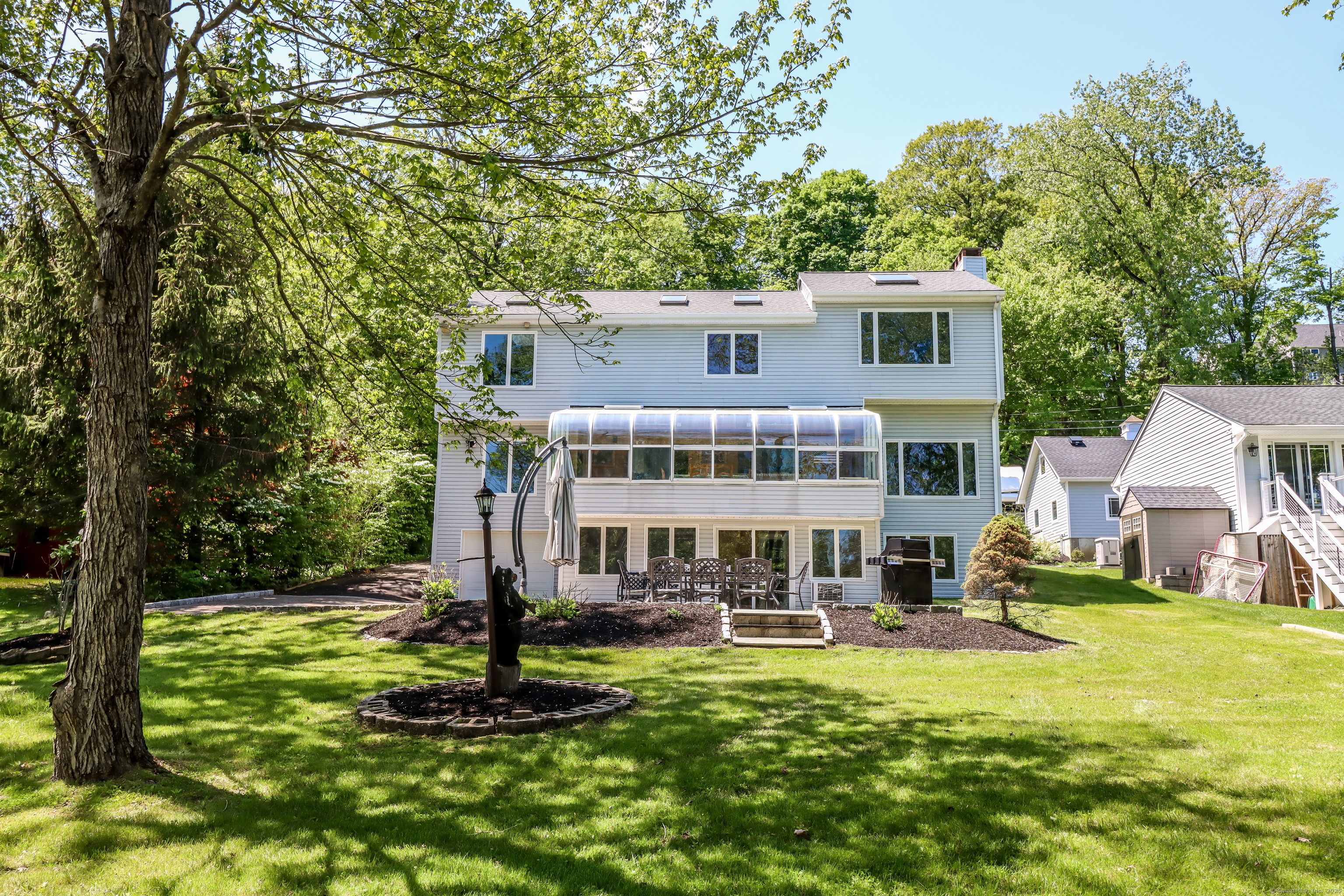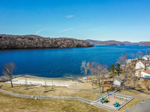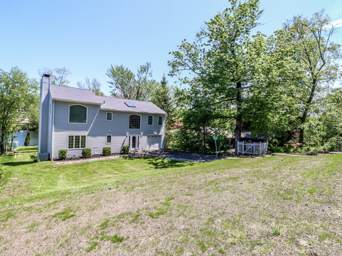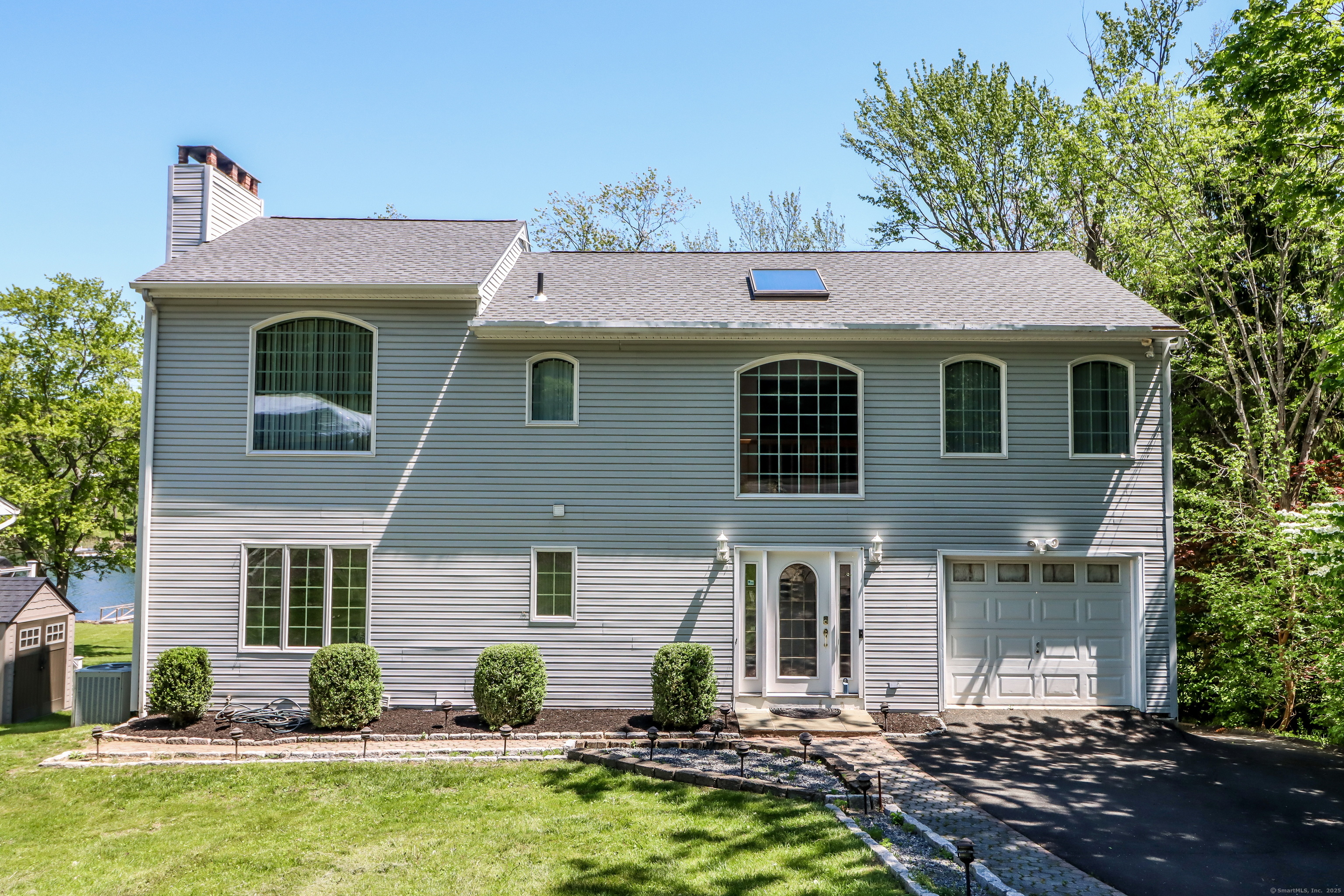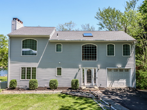 Candlewood Lake Waterfront! Embrace the beauty of Candlewood Shores lake community in this stunning, sun-filled home featuring private dock, multiple levels of living space, and a seamless indoor-outdoor flow. The main level boasts an open-concept layout with tile floors throughout the living room, kitchen, and dining area, creating a bright and inviting atmosphere. A bedroom and full bathroom on this level provide added convenience and flexibility. Upstairs, the primary suite is a true retreat, complete with an expansive office/sitting area, soaring ceilings, and panoramic lake views. A full bathroom enhances the suite's comfort, while the third bedroom, located across the hall, shares access to the bathroom. The lower level offers even more space to enjoy, featuring a bonus room, wet bar, and laundry room. With walk-out access to the patio and waterfront, it's the perfect setup for entertaining all summer long. MANY big-ticket updates: roof, siding, water tank, central a/c, furnace, oil tank.