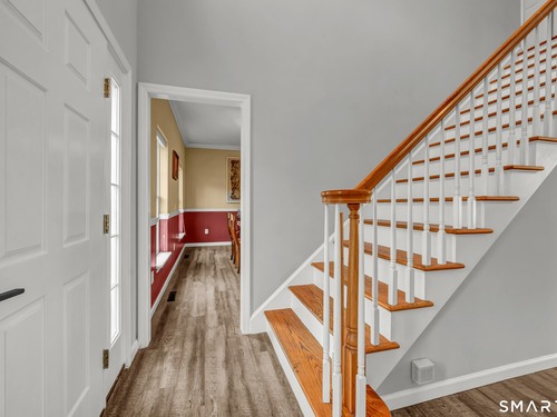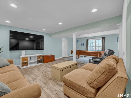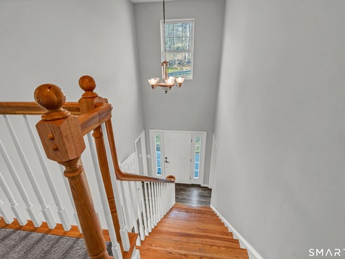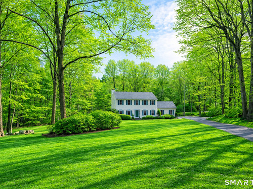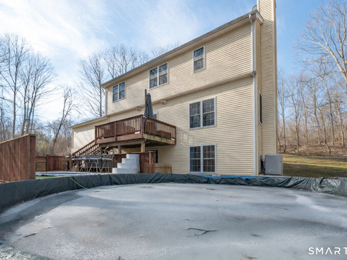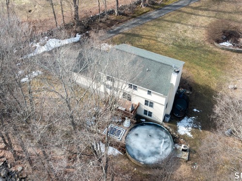 Privately set back from the road on 1.47 acres, this inviting Colonial offers a well-designed, airy layout. A two-story foyer welcomes you upon entry. The renovated eat-in kitchen features crisp white cabinetry, quartz countertops, a large center island and a bright dining area with sliders leading to a multi-level deck, perfect for entertaining. The kitchen opens seamlessly into the spacious living room where a wood-burning fireplace creates a warm and comfortable gathering space. Upstairs, you'll find four spacious bedrooms, including a primary suite with a walk-in closet and updated full bath, along with a second updated full bathroom serving the additional bedrooms. The finished lower level offers flexible living space with sliders to the backyard, as well as ample storage. Additional highlights include three-zone heating for comfort and efficiency, and generously sized rooms throughout. Outside, the private property features a babbling brook and an above-ground pool-an ideal setting for relaxing, entertaining, and enjoying the tranquil natural surroundings. Don't miss this one - it truly has it all!