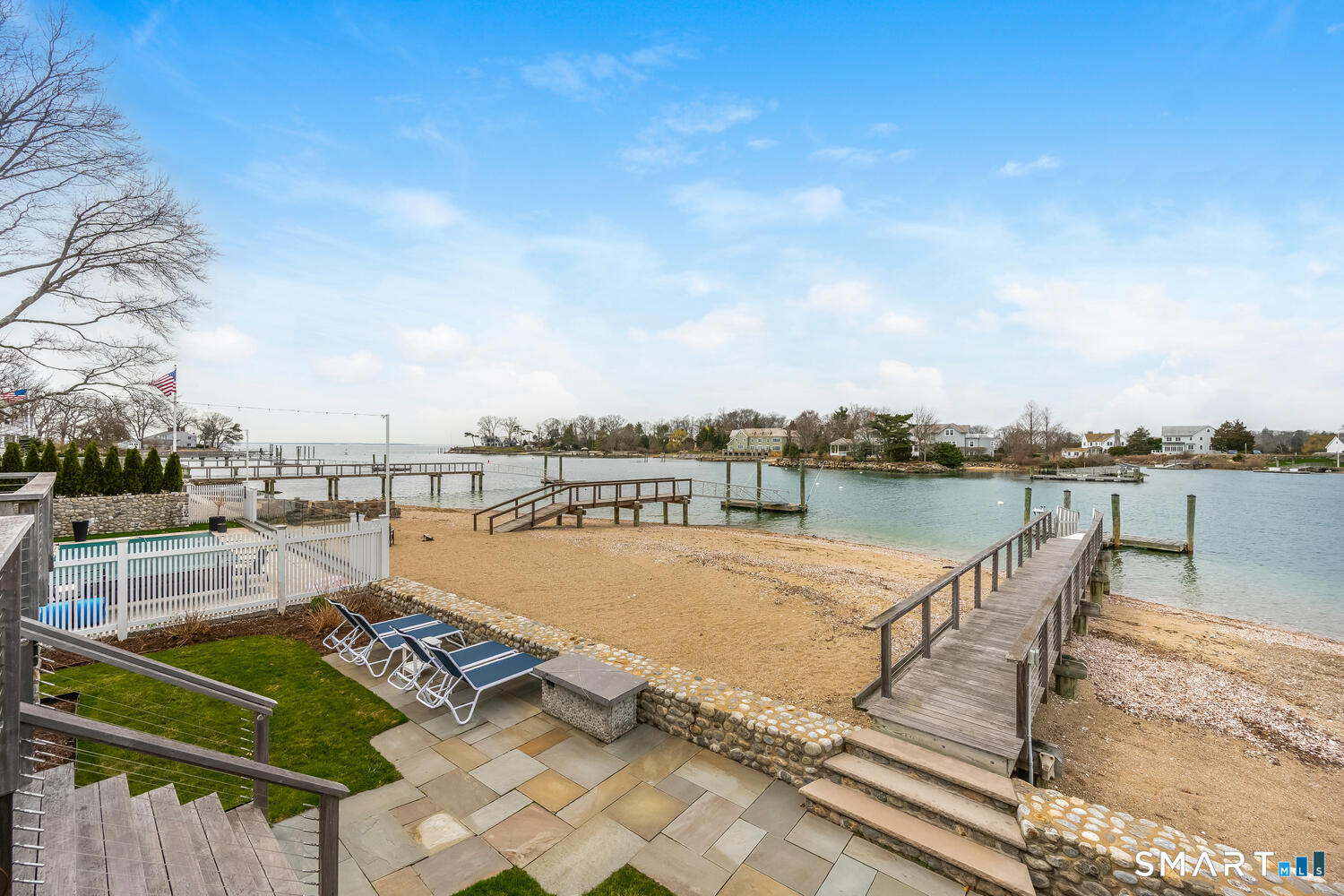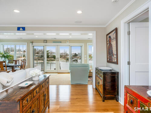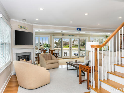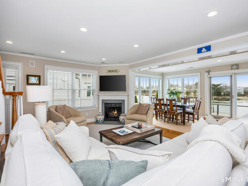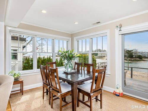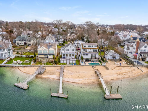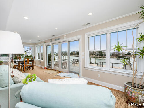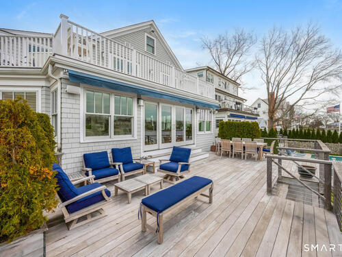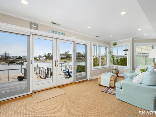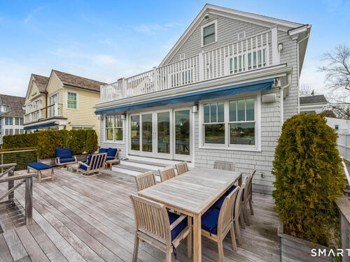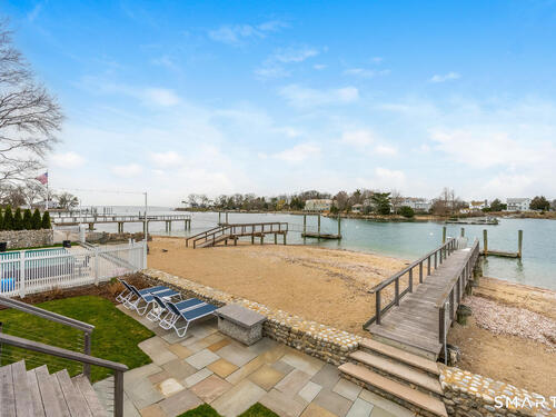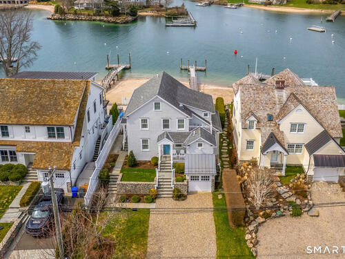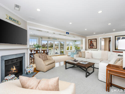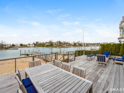 Set along the picturesque Five Mile River with its own private beach and dock, this exceptional waterfront home captures sweeping views of the Long Island Sound and unforgettable sunsets from multiple outdoor living spaces, including a terrace with a gas fireplace and two expansive decks. Located in the heart of the sought-after Rowayton Beach Association, the residence offers a bright, open floor plan with water views from nearly every room. Featuring four bedrooms and two-and-a-half baths, including a convenient first-floor primary suite, the home is in wonderful condition and FEMA compliant. Ideal for those looking to downsize without compromise, with the flexibility to expand for a larger lifestyle-all just a short walk to downtown Rowayton and its charming amenities.