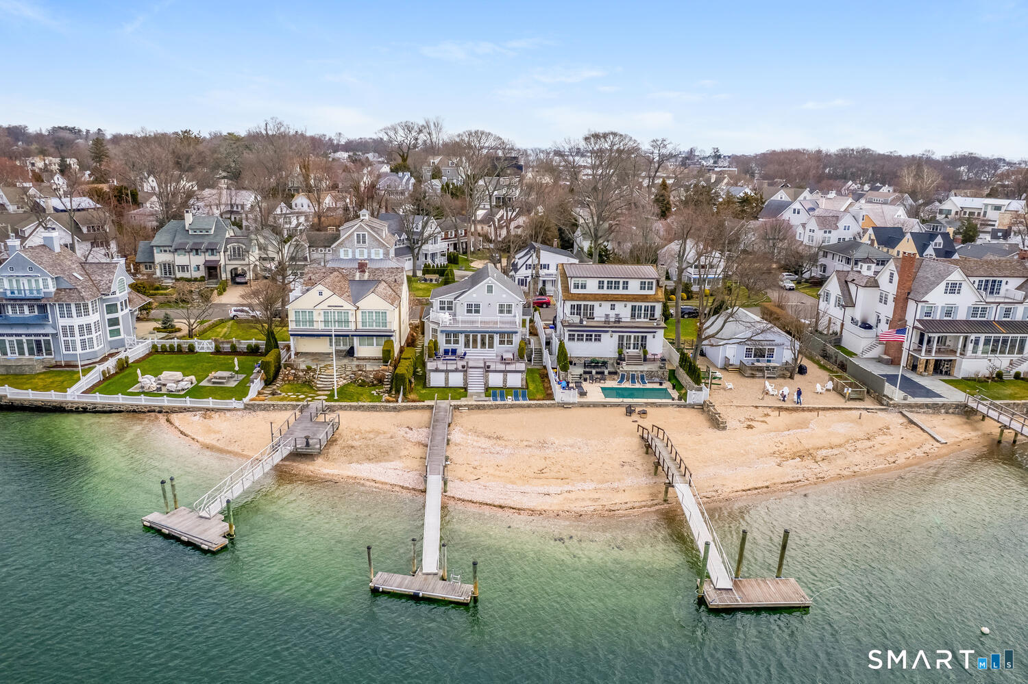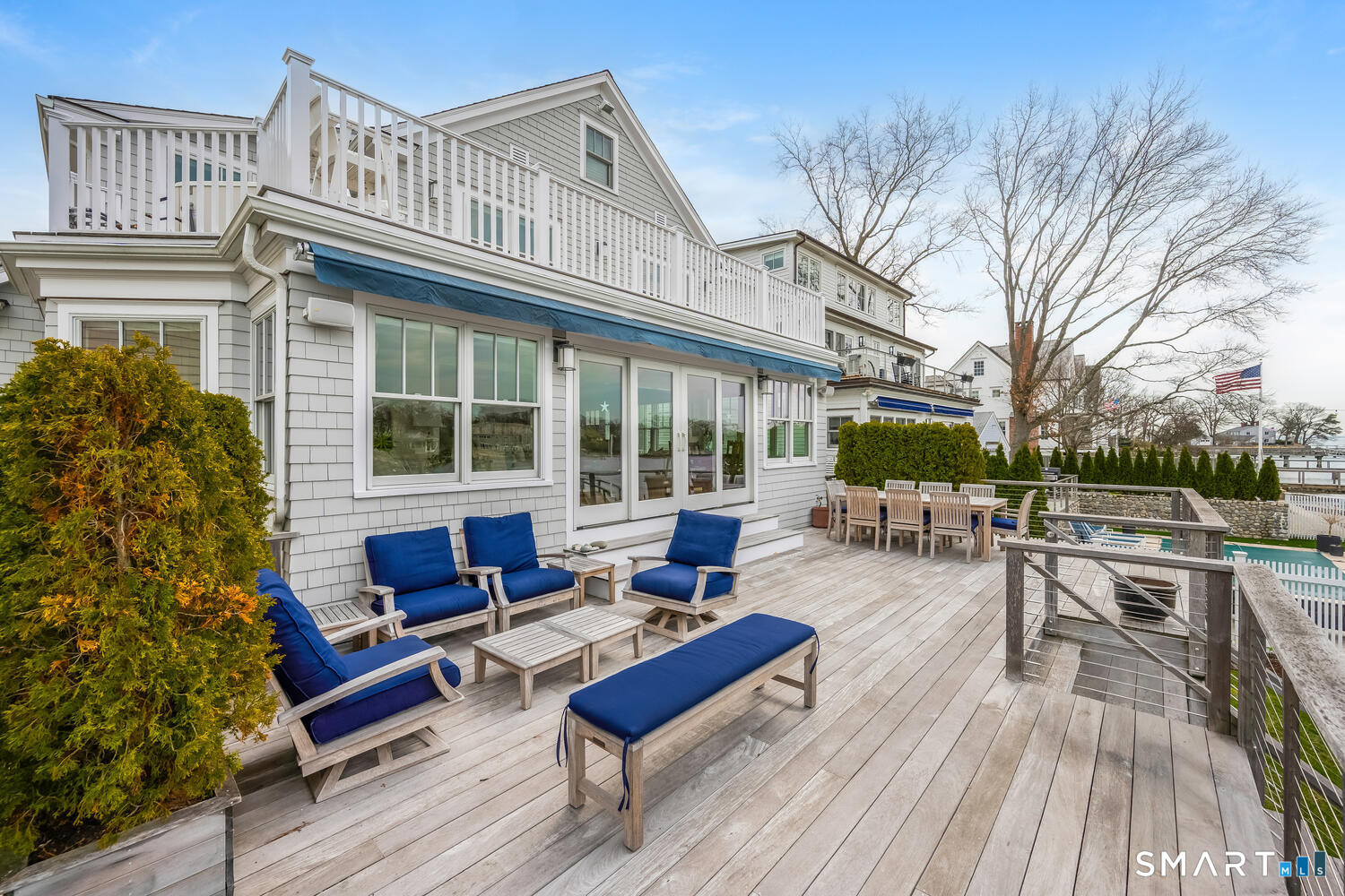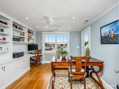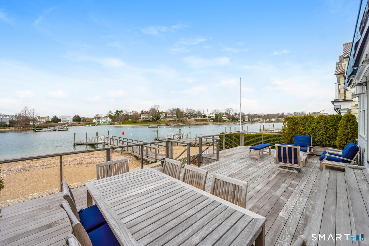 Set along the picturesque Five Mile River with its own private beach and dock, this exceptional waterfront home captures sweeping views of the Long Island Sound and unforgettable sunsets from multiple outdoor living spaces, including a terrace with a gas fireplace and two expansive decks. Located in the heart of the sought-after Rowayton Beach Association, the residence offers a bright, open floor plan with water views from nearly every room. Featuring four bedrooms and two-and-a-half baths, including a convenient first-floor primary suite, the home is in wonderful condition and FEMA compliant. Ideal for those looking to downsize without compromise, with the flexibility to expand for a larger lifestyle-all just a short walk to downtown Rowayton and its charming amenities.