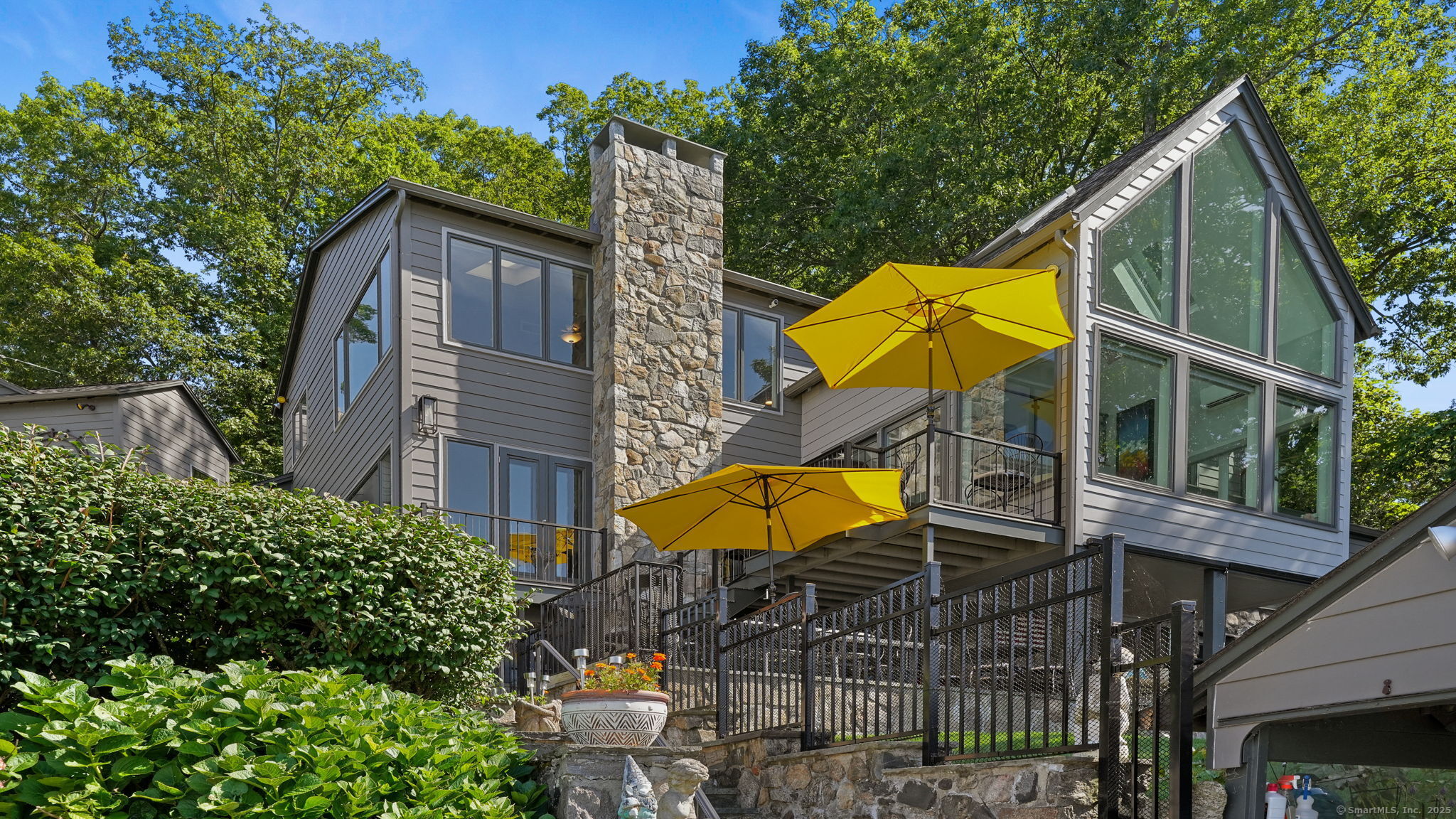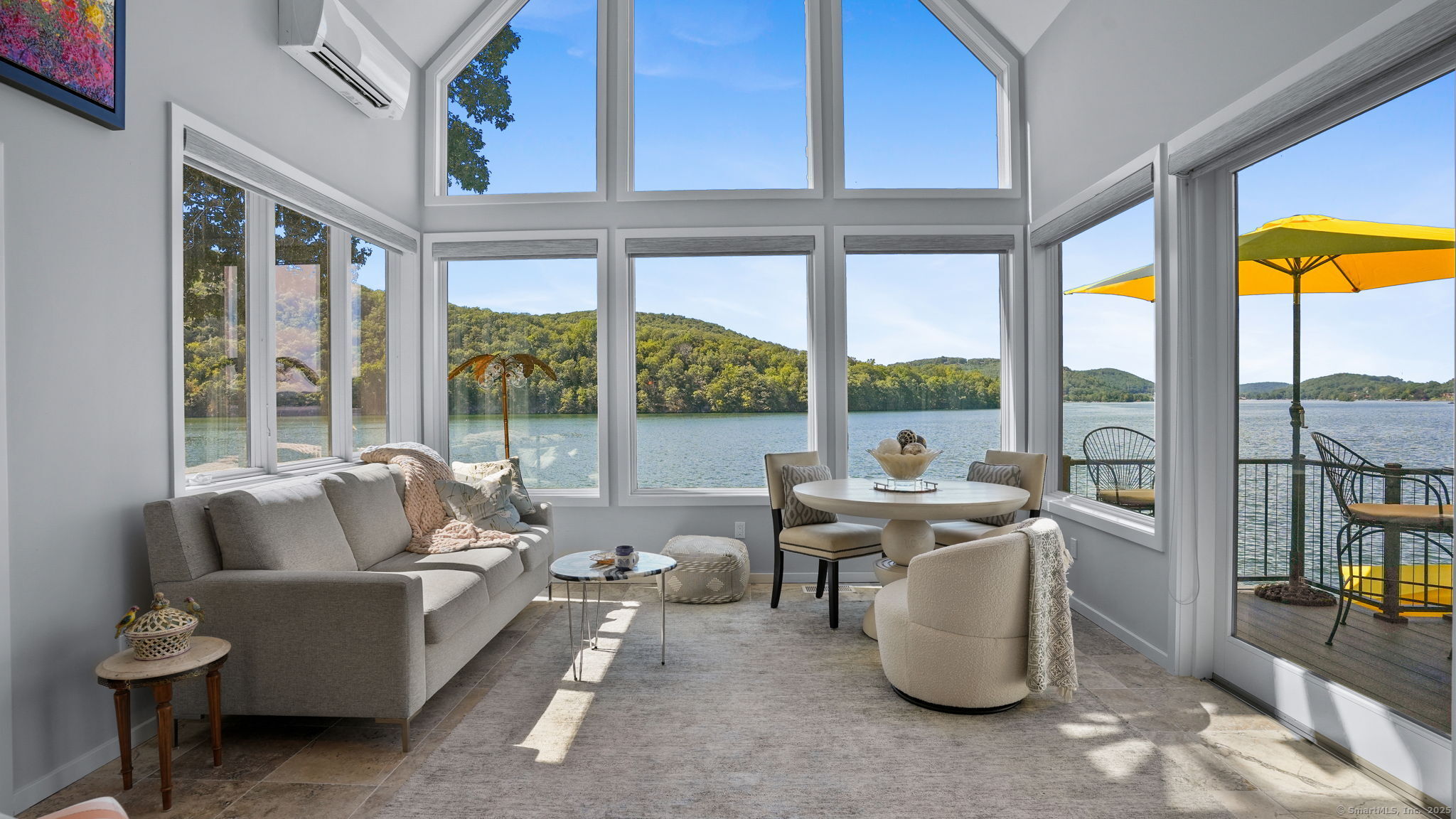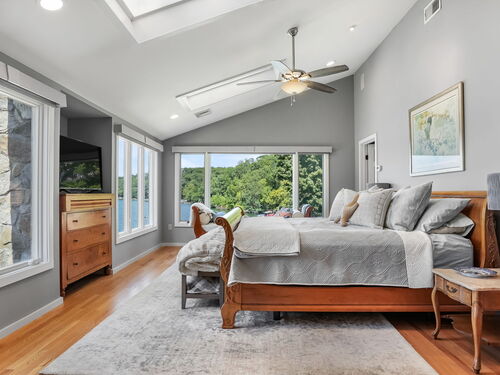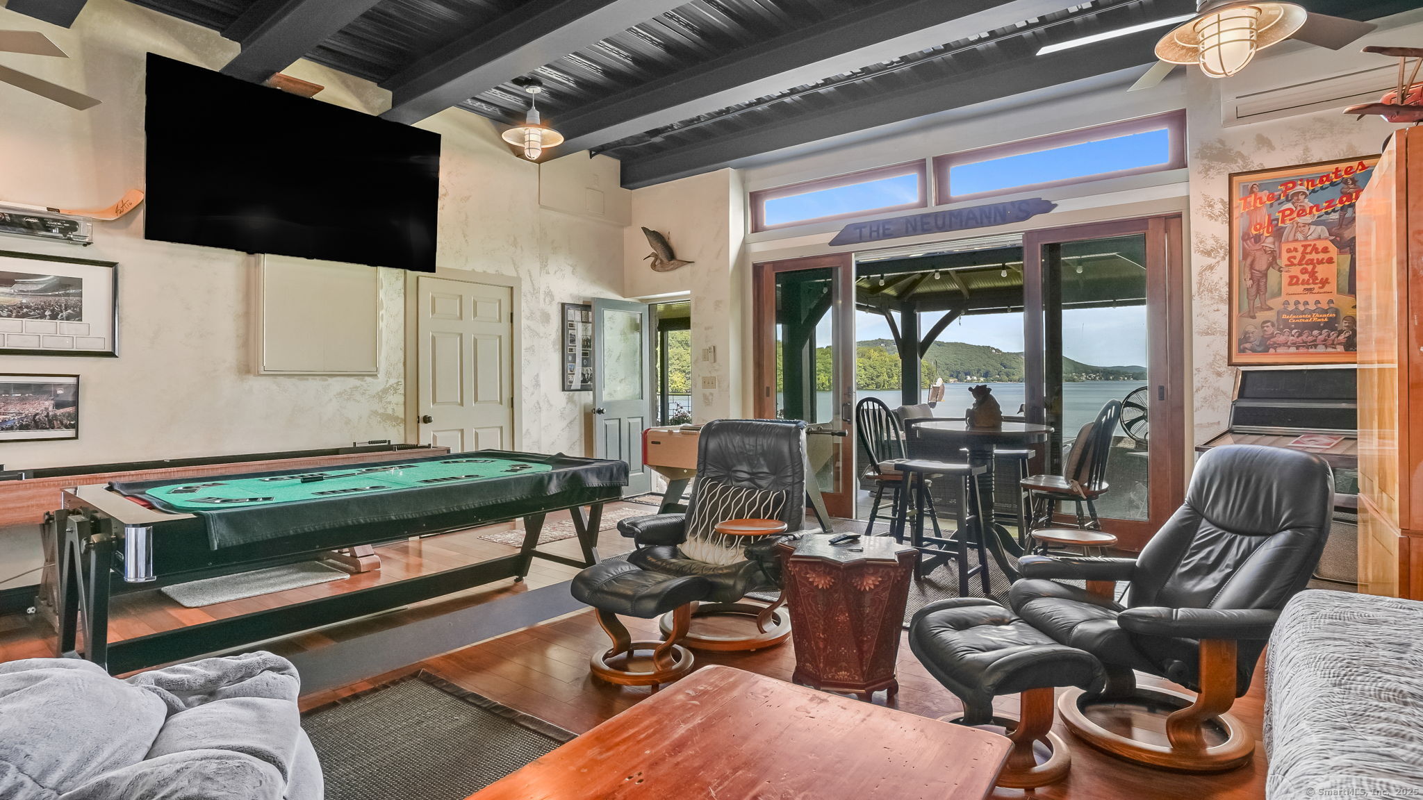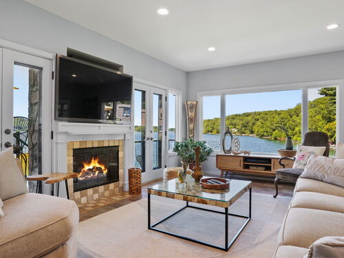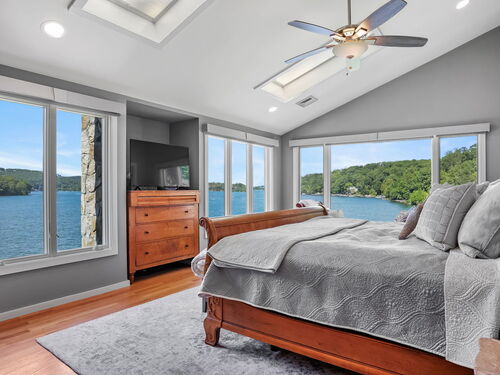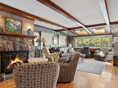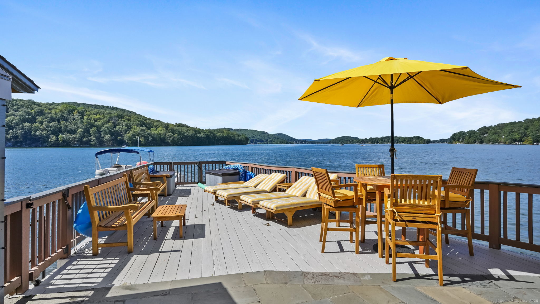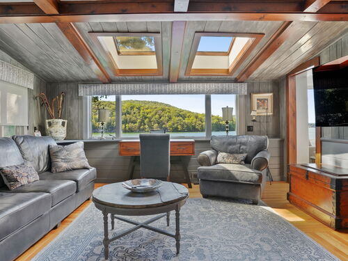 Imagine waking up to the best view of beautiful Candlewood Lake. This exceptional property offers 200 ft of direct waterfront, just steps from the water's edge. Enjoy stunning western sunsets with a panoramic view of scenic Bear Mountain Park. Endless outdoor entertainment awaits with a meticulously designed, multi-tiered landscape featuring a rare-grandfathered in waterfront cabana bar, several patios, a garden veranda, game room gazebo and a regulation-size shuffleboard court. The newly added two-story sunroom with a loft offers year-round, sweeping views that will take your breath away. The two-car garage includes a full-sized elevator, providing convenient access to the main level's Garden Veranda. A full bath and guest sleeping quarters on the main level ensure easy accessibility for all guests. The garage is also home to a modern game room with additional sleeping space for weekend visitors, complete with a slate patio and a cozy fire pit. The walk-out basement features a brand-new sauna, a second kitchen, and a guest suite, offering privacy and access to the second-tier patio. Five-zone heating & cooling, as well as a new 26 KW whole-home generator, maintenance-free Hardy Board siding and a brand-new roof. A full irrigation system ensures the property stays lush and green year-round. For boating enthusiasts, the property includes a fully covered hydraulic boat lift and two additional docks that can accommodate up to five vessels. It's amazing!