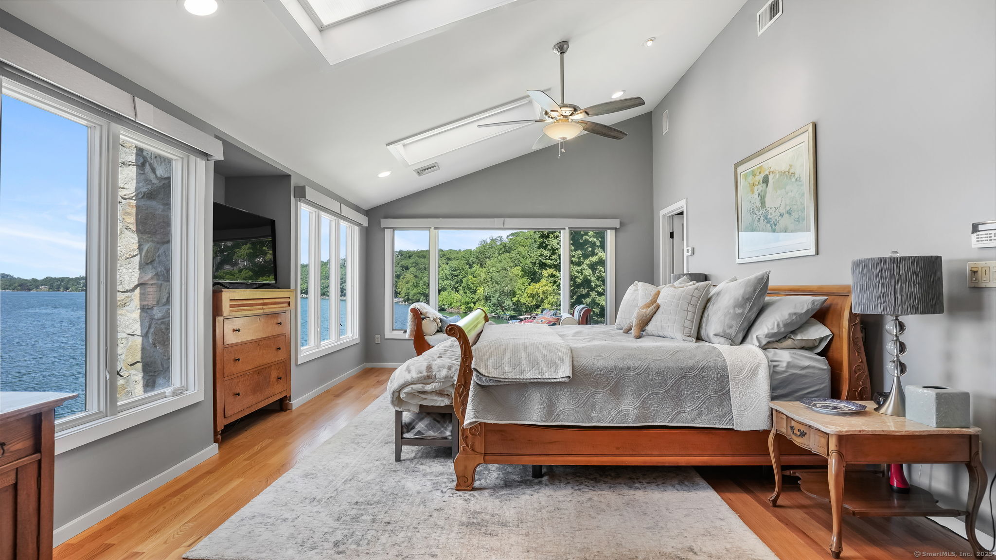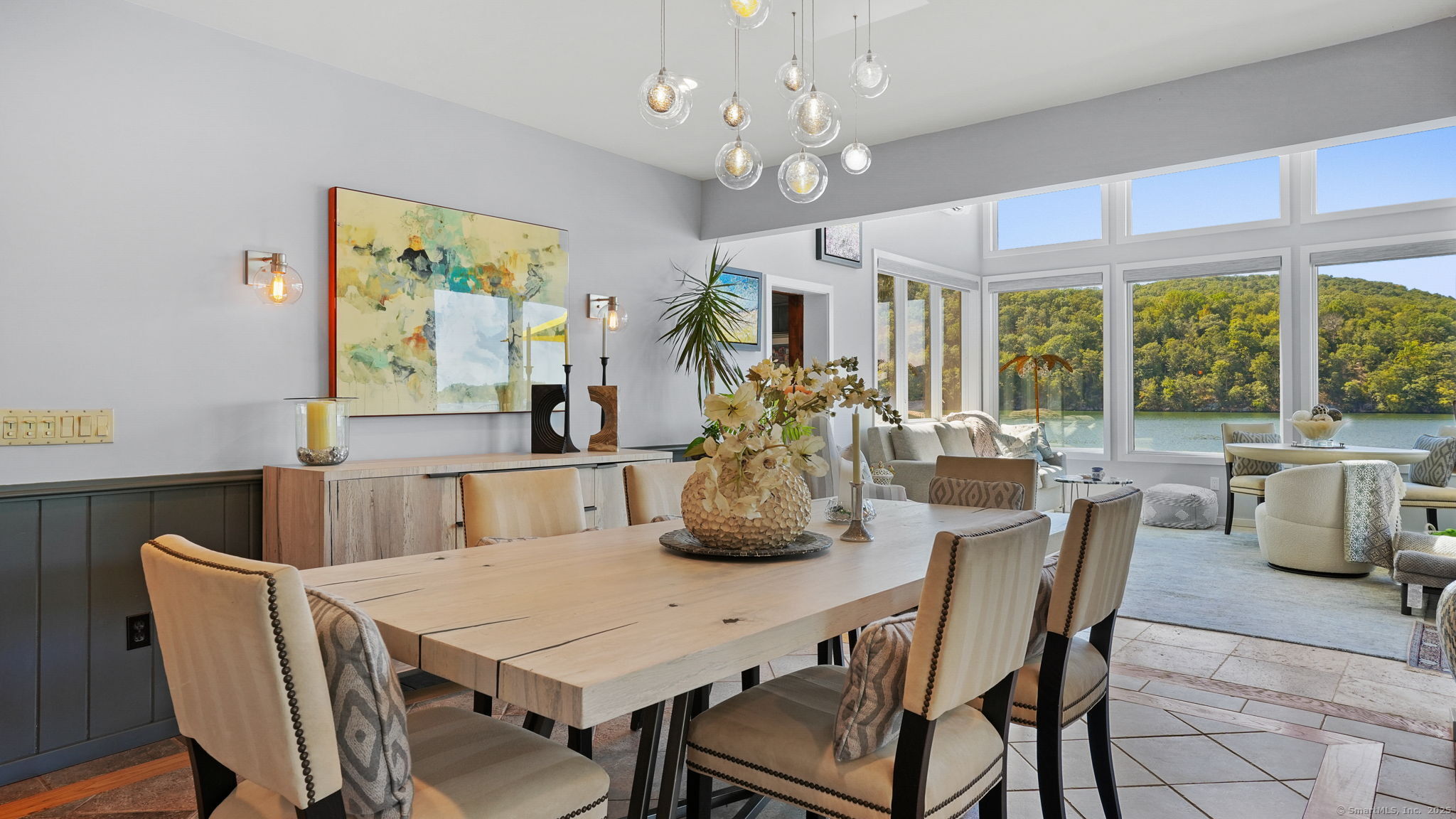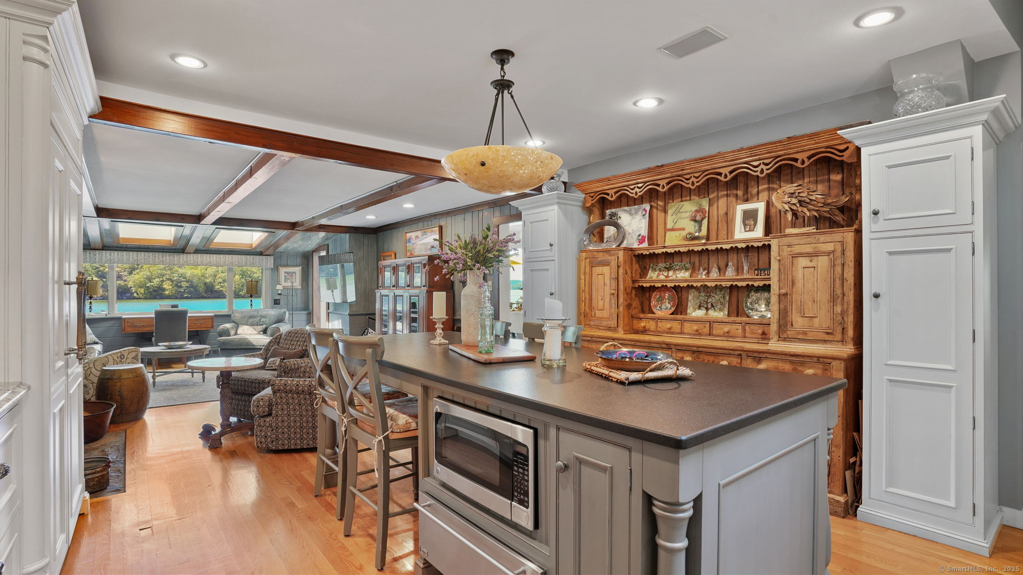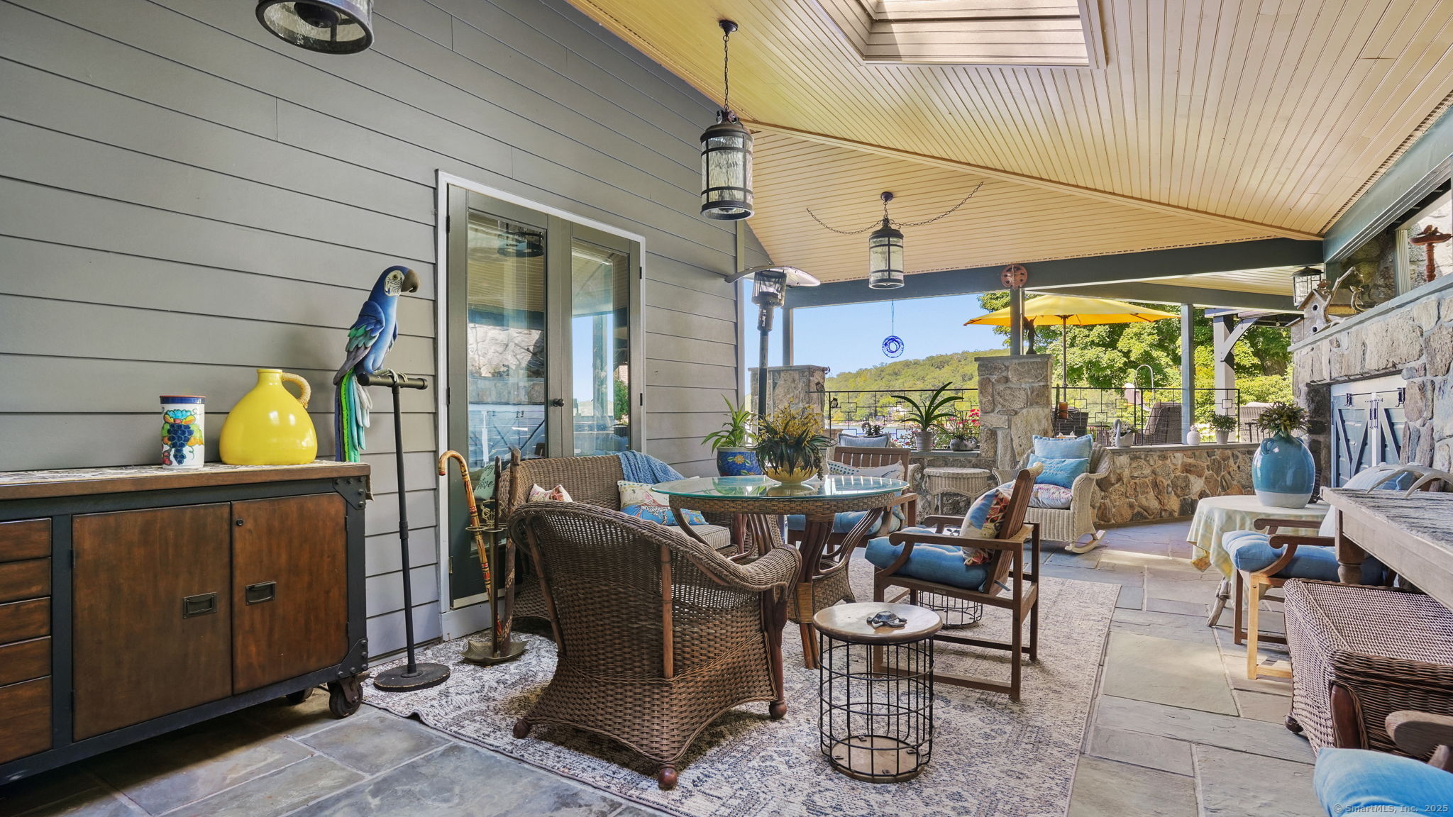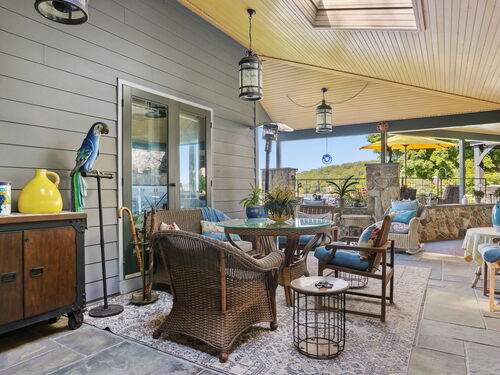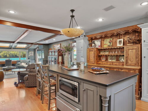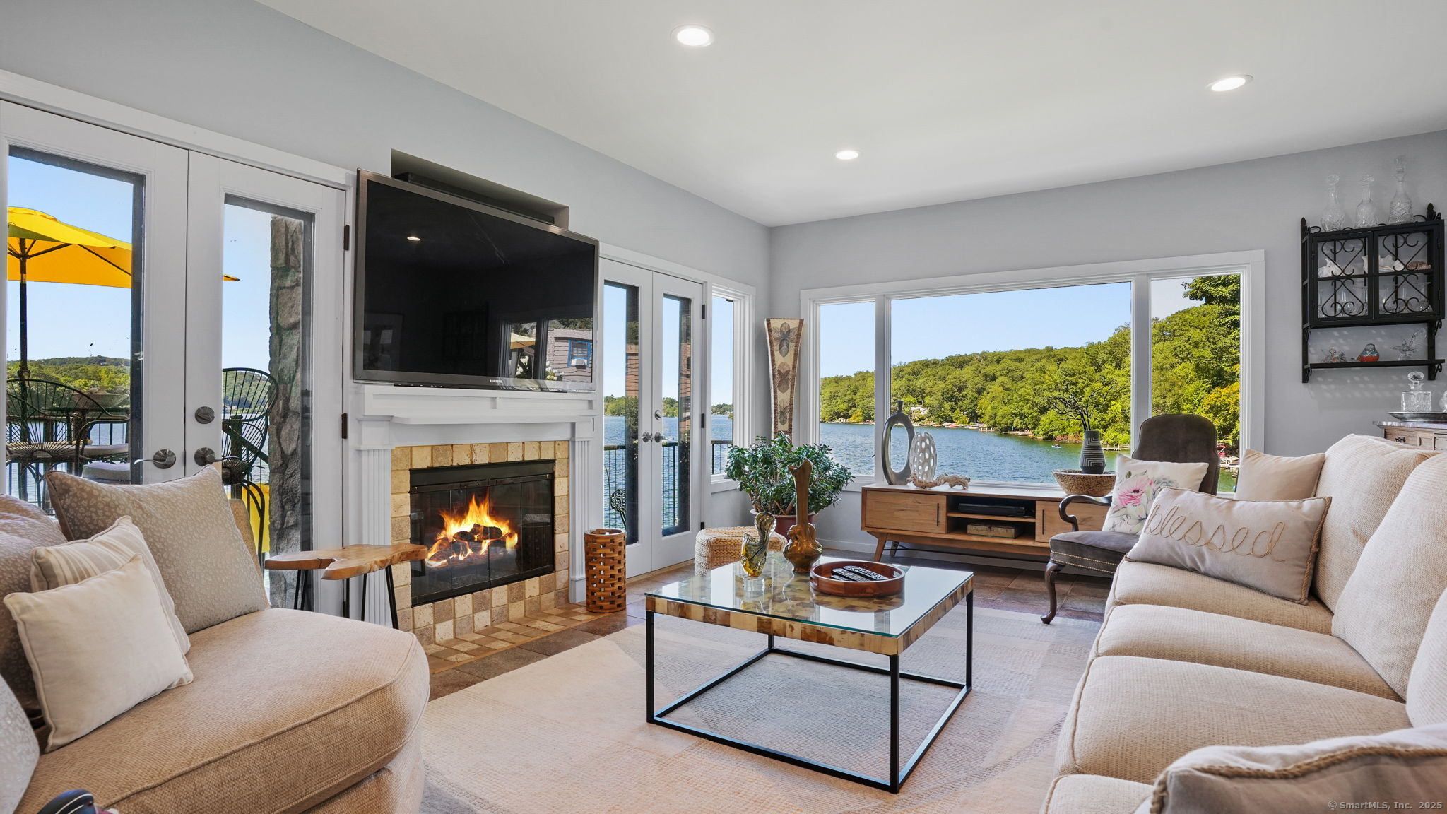Imagine waking up to the best view of beautiful Candlewood Lake. This exceptional property offers 200 ft of direct waterfront, just steps from the water's edge. Enjoy stunning western sunsets with a panoramic view of scenic Bear Mountain Park. Endless outdoor entertainment awaits with a meticulously designed, multi-tiered landscape featuring a rare-grandfathered in waterfront cabana bar, several patios, a garden veranda, game room gazebo and a regulation-size shuffleboard court. The newly added two-story sunroom with a loft offers year-round, sweeping views that will take your breath away. The two-car garage includes a full-sized elevator, providing convenient access to the main level's Garden Veranda. A full bath and guest sleeping quarters on the main level ensure easy accessibility for all guests. The garage is also home to a modern game room with additional sleeping space for weekend visitors, complete with a slate patio and a cozy fire pit. The walk-out basement features a brand-new sauna, a second kitchen, and a guest suite, offering privacy and access to the second-tier patio. Five-zone heating & cooling, as well as a new 26 KW whole-home generator, maintenance-free Hardy Board siding and a brand-new roof. A full irrigation system ensures the property stays lush and green year-round. For boating enthusiasts, the property includes a fully covered hydraulic boat lift and two additional docks that can accommodate up to five vessels. It's amazing!