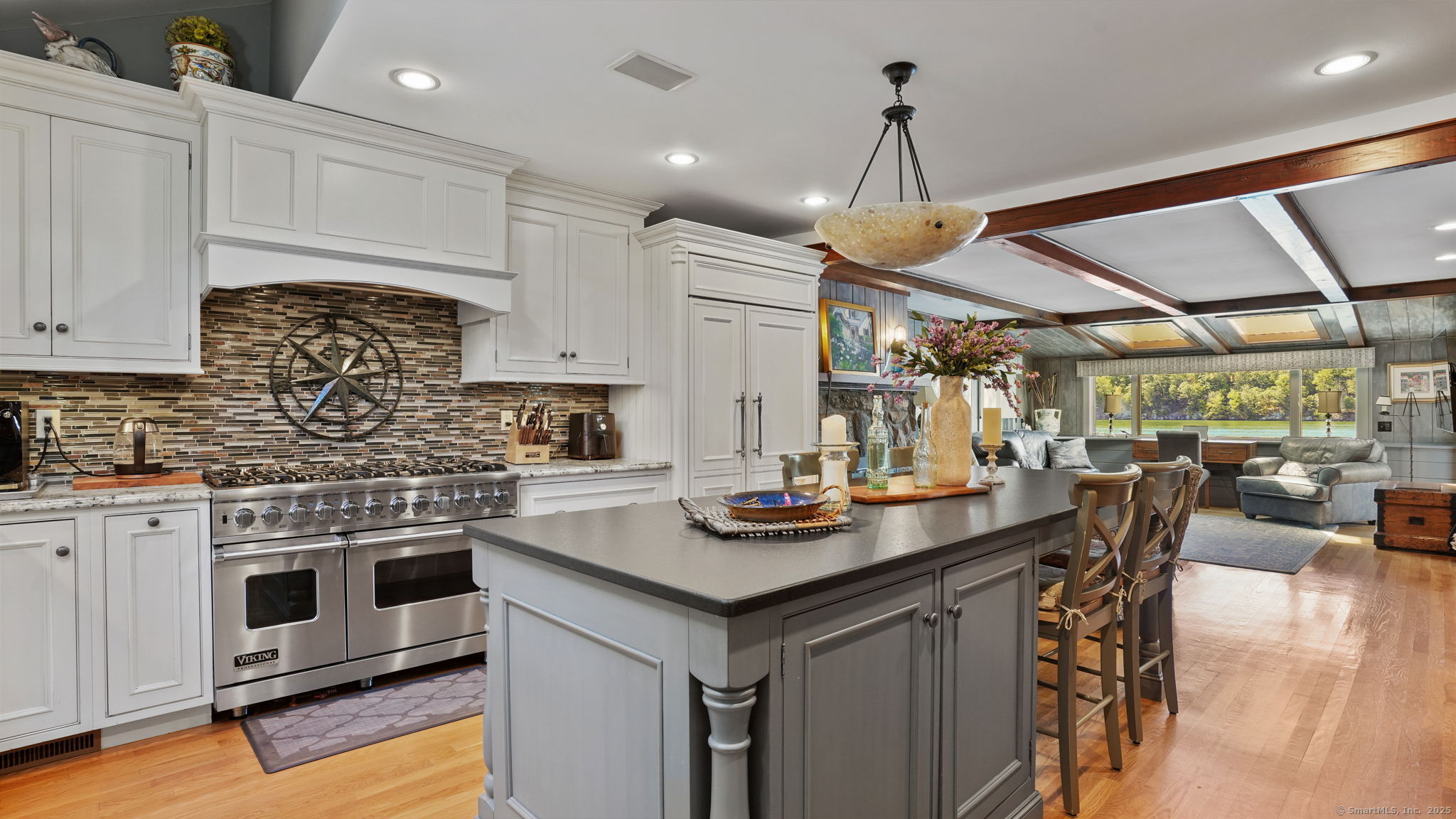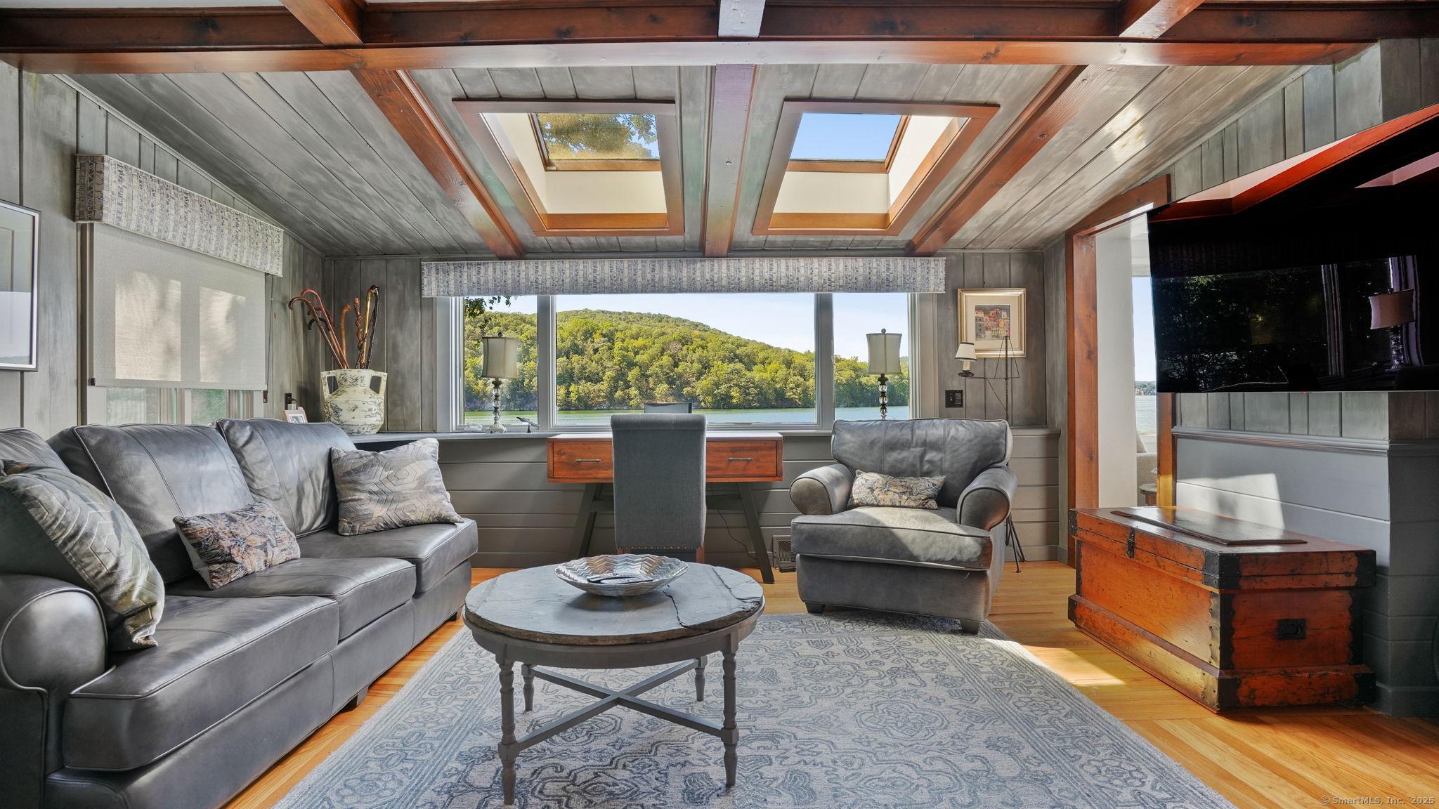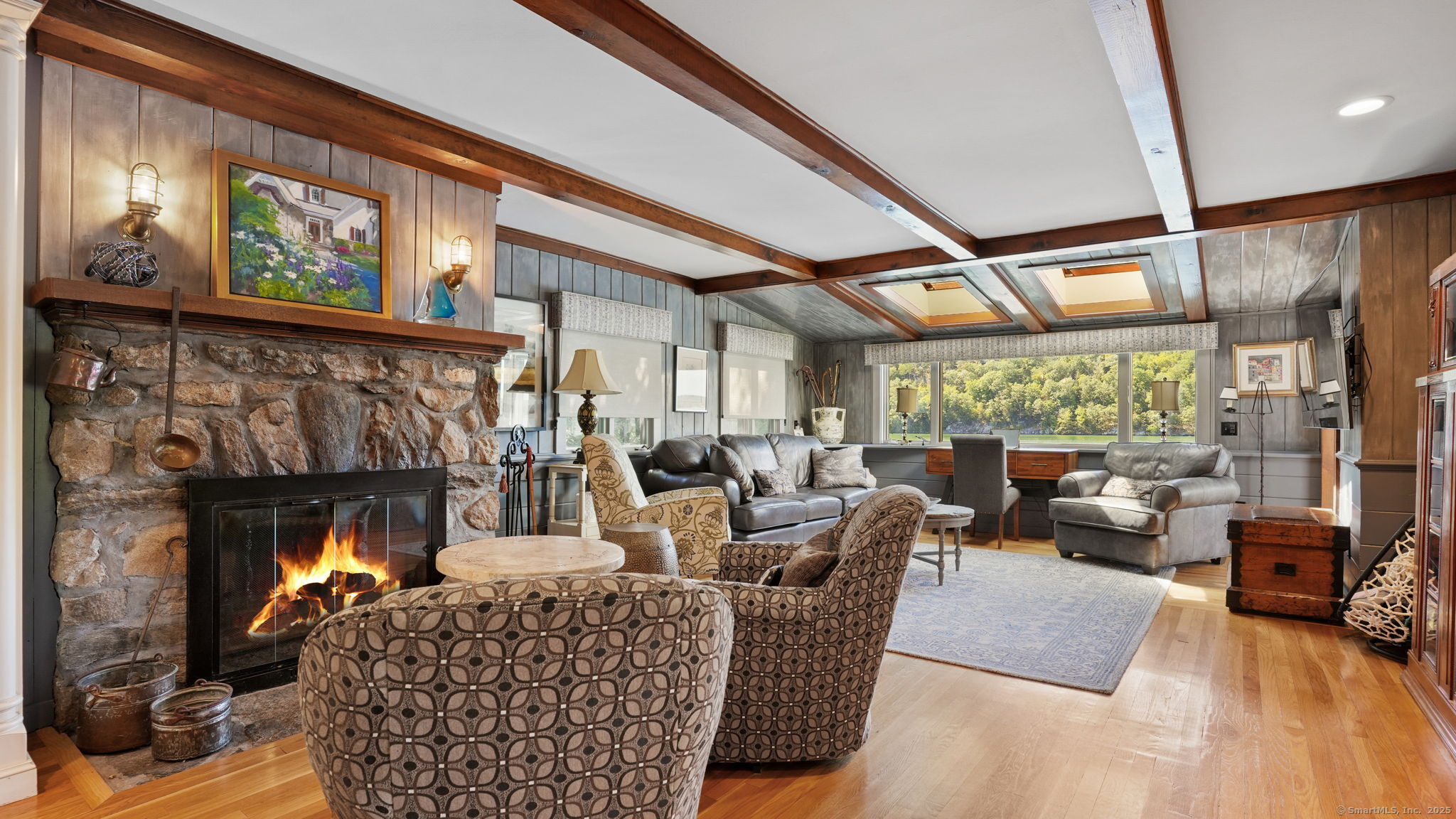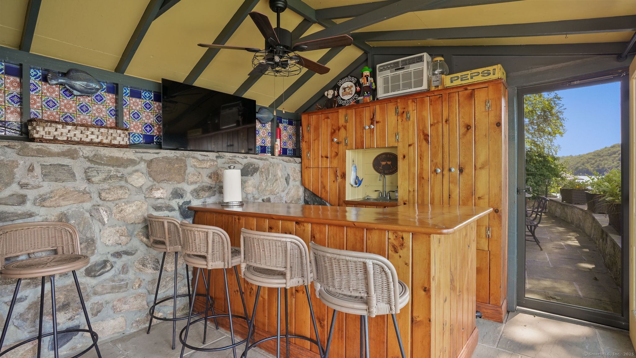 Imagine waking up to the best view of beautiful Candlewood Lake. This exceptional property offers 200 ft of direct waterfront, just steps from the water's edge. Enjoy stunning western sunsets with a panoramic view of scenic Bear Mountain Park. Endless outdoor entertainment awaits with a meticulously designed, multi-tiered landscape featuring a rare-grandfathered in waterfront cabana bar, several patios, a garden veranda, game room gazebo and a regulation-size shuffleboard court. The newly added two-story sunroom with a loft offers year-round, sweeping views that will take your breath away. The two-car garage includes a full-sized elevator, providing convenient access to the main level's Garden Veranda. A full bath and guest sleeping quarters on the main level ensure easy accessibility for all guests. The garage is also home to a modern game room with additional sleeping space for weekend visitors, complete with a slate patio and a cozy fire pit. The walk-out basement features a brand-new sauna, a second kitchen, and a guest suite, offering privacy and access to the second-tier patio. Five-zone heating & cooling, as well as a new 26 KW whole-home generator, maintenance-free Hardy Board siding and a brand-new roof. A full irrigation system ensures the property stays lush and green year-round. For boating enthusiasts, the property includes a fully covered hydraulic boat lift and two additional docks that can accommodate up to five vessels. It's amazing!