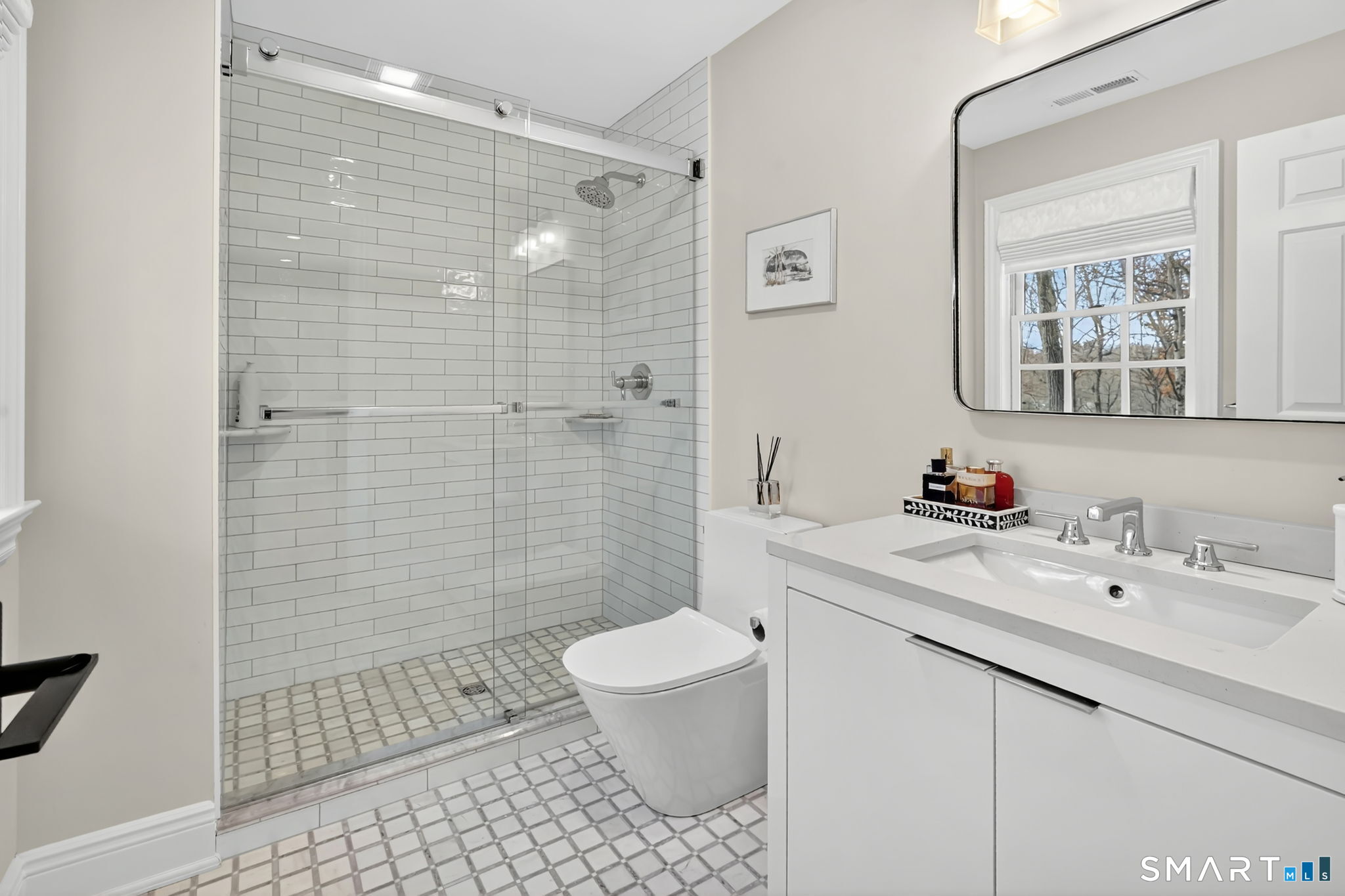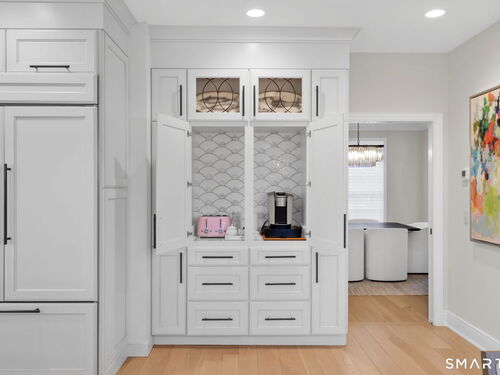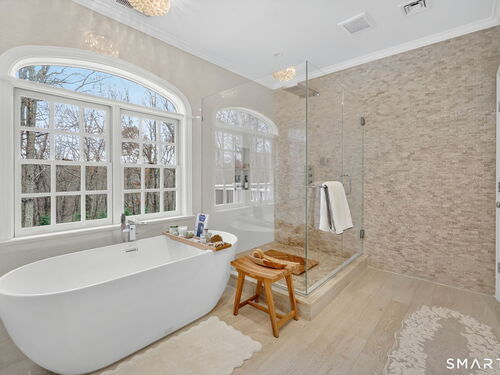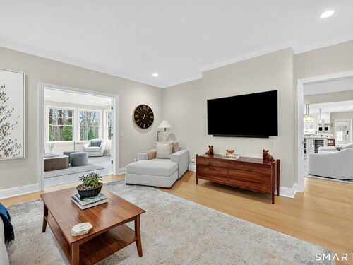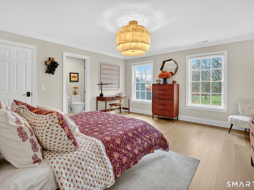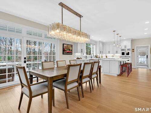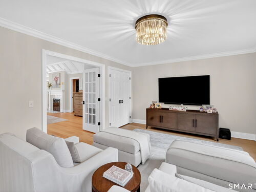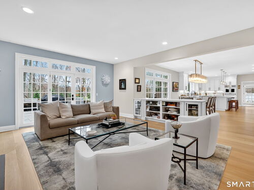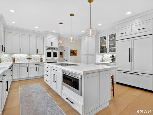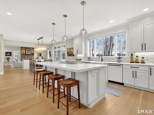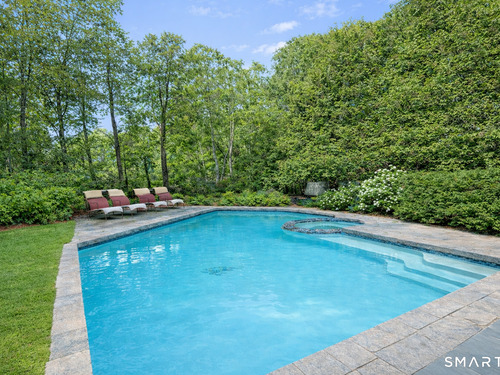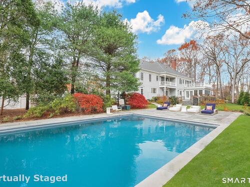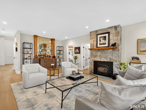 Located in Weston's prestigious Singing Oaks community, this extensively renovated 5-bedroom Colonial blends timeless architecture with exceptional modern luxury. Thoughtfully reimagined with meticulous craftsmanship, the home showcases sustainably sourced white oak flooring throughout the main and upper levels, extensive custom millwork, and elegant formal spaces including a living room with coffered ceiling and marble fireplace. The stunning gourmet kitchen has been completely redesigned with custom cabinetry, marble countertops, and a suite of premium appliances from Miele, Sub-Zero, Viking, and Wolf, creating a sophisticated centerpiece for both everyday living and entertaining. The inviting family room features a wood-burning fireplace with insert and a stylish dry bar, while the sun-filled all-season sunroom offers new tile flooring and dedicated climate control. Upstairs, the luxurious primary suite serves as a private retreat with fireplace, sitting room, spa-inspired bath, and balcony overlooking the property. Four additional bedrooms are generously sized and all feature beautifully renovated en-suite baths. The finished lower level provides excellent recreation and fitness space, while the walk-up third floor offers substantial storage and future expansion potential. Outside, the private grounds showcase a heated gunite pool with extensive upgrades, new roof, driveway, walkway, and generator, all within one of Weston's most desirable neighborhoods.