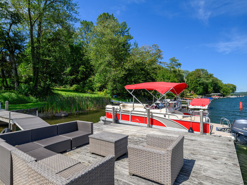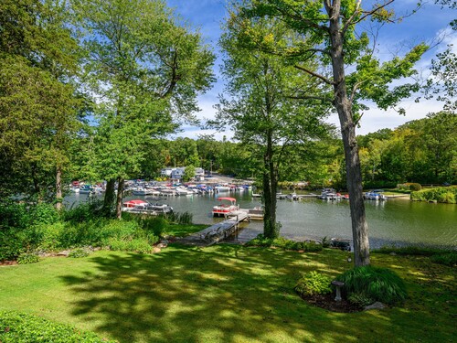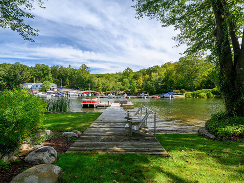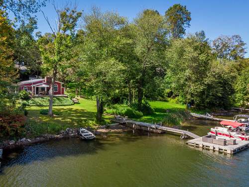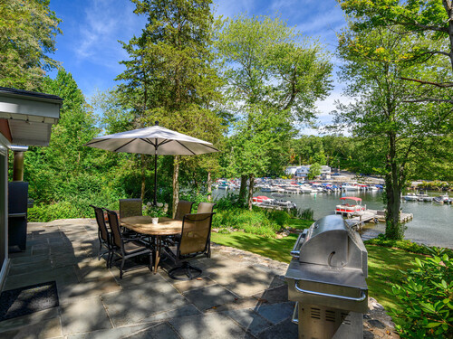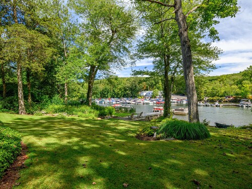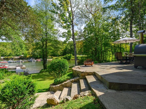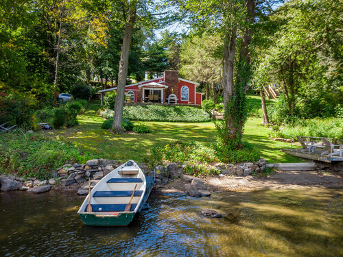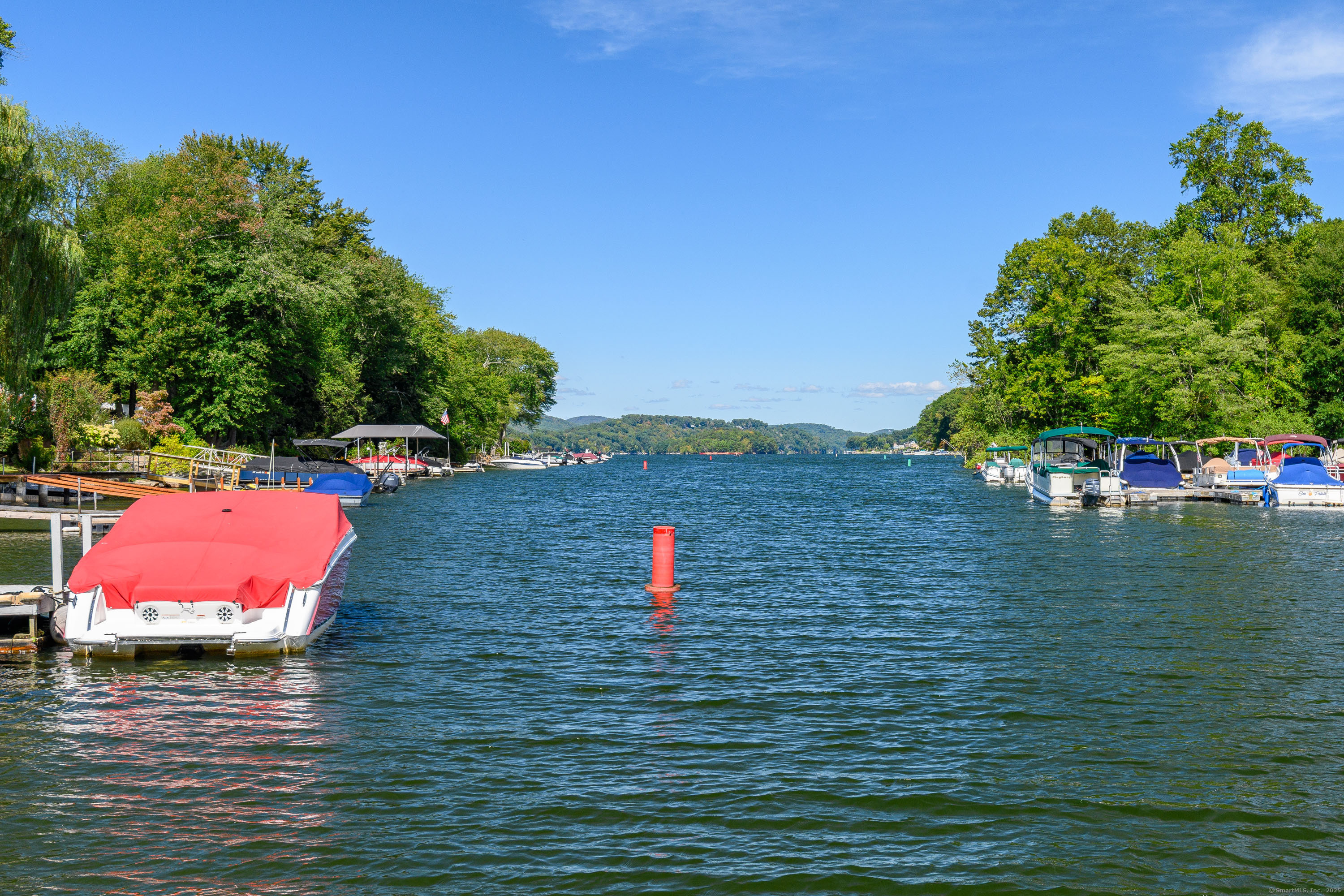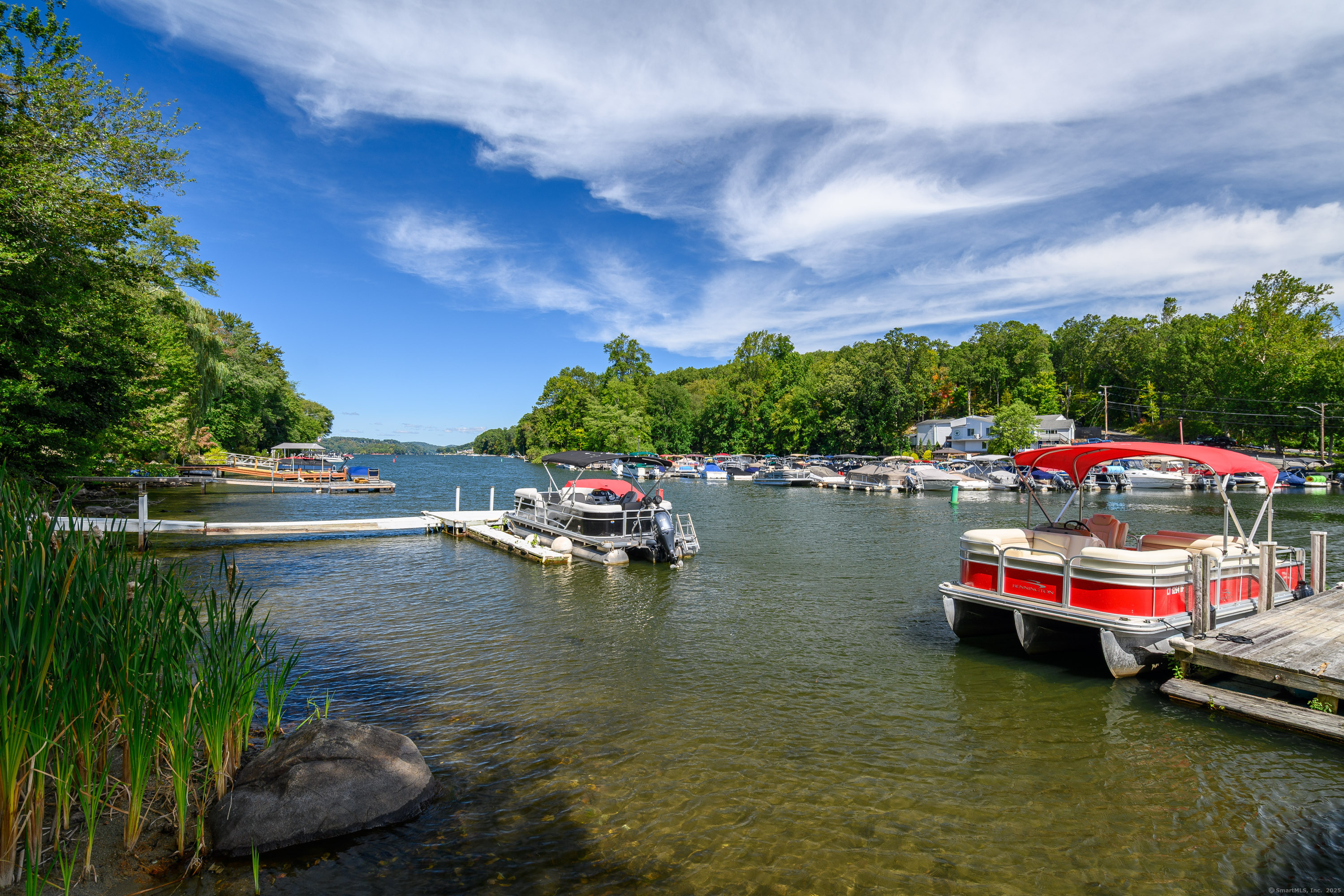 Direct waterfront on New England's jewel, Candlewood Lake. Wake up every morning to enjoy the rejuvenating feel of living on the water.....Boating, sailing, swimming, kayaking, fishing, jet skiing and so much more........Nestled in a wooded setting at the end of a quiet cul de sac only minutes to shopping, Stew Leonard's, restaurants, and I-84. Step inside the double entry door to find a wide open floor plan crowned by a soaring ceiling and grounded by hardwood flooring. The rustic and charming family room is highlighted by a stone fireplace where the sounds of a crackling wood fire can be heard on a chilly fall night. Whip up a meal in the stainless/granite kitchen or work from home in the nearby office. Just a few steps lead to the second level where you'll find three bedrooms and a full bath. Outdoor entertaining spaces include an extensive patio ideal for barbecuing and a sweeping lawn that merges with your own private waterfront and dock. Perfectly located in a most private spot on the lake......This is not one to be missed.