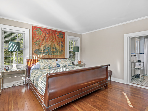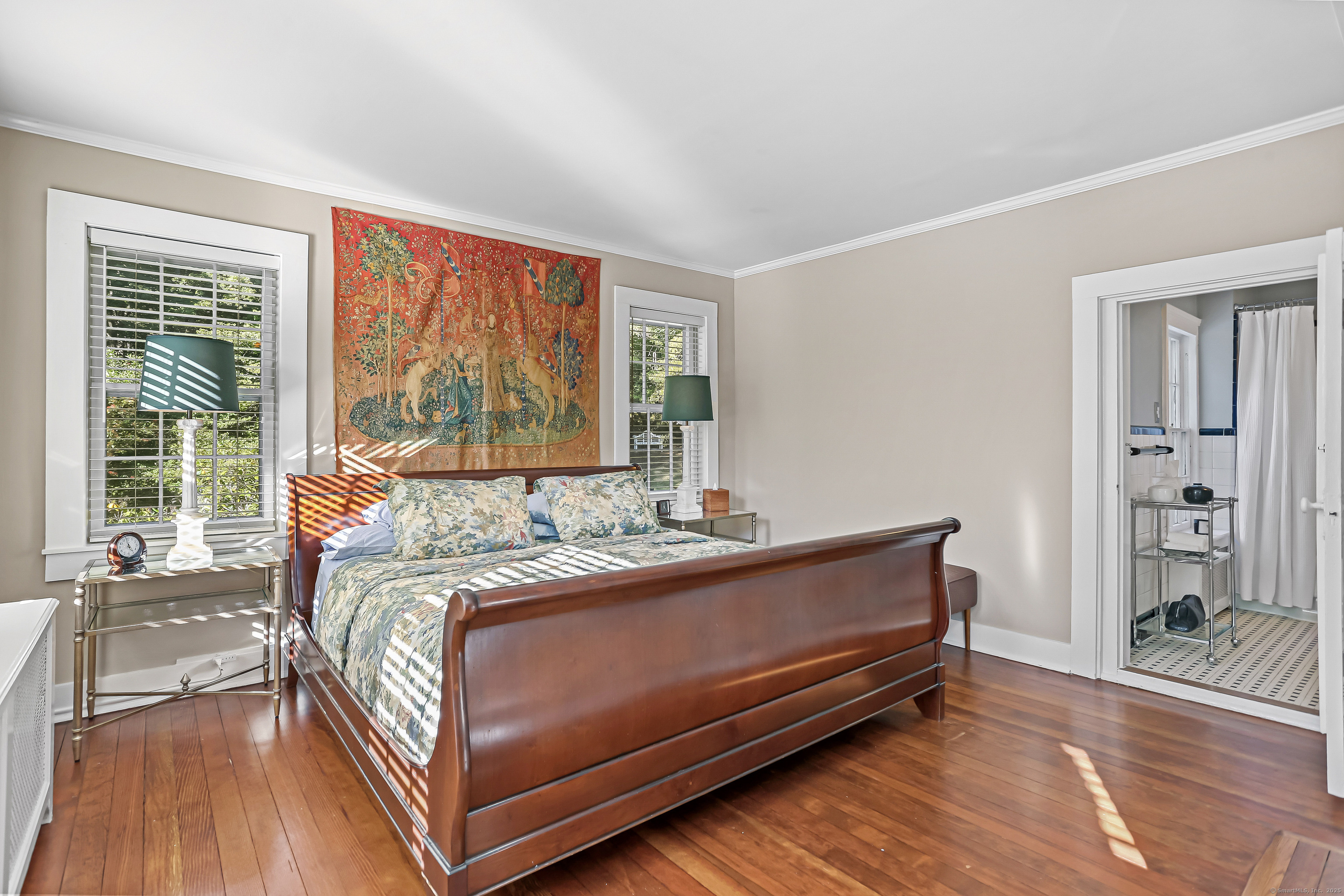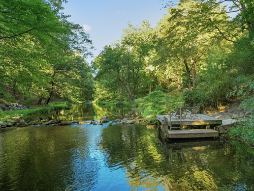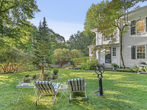 Historic Elegance meets today's lifestyle in this 1845 Antique w/ 145' of scenic river frontage but not in the flood zone, in Lower Weston. A property rich in history, timeless charm & character is known as the Curtis Wood House. This beautifully restored & thoughtfully modernized home features 5BRS & 4.5 baths in the main house & a legal rental cottage (480 sf included in the SF) w/ a LR, kitchenette, BR & full bath. Currently, the cottage is used as a workspace for the owner. The formal entry foyer w/ a double-sided FP leads to a spacious open concept LR which is the perfect setting for entertaining. French doors open into a stunning solarium w/ amazing garden views. There is a den/study w/ a cozy FP, built-in bookcases & wet bar- the perfect setting to unwind at the end of the day w/ a good book or a movie! The eat-in kitchen is equipped w/ professional appliances, 2 walk-in pantries, limestone flooring & copper & wood countertops. The primary suite has a sitting room, dressing room, 2 full baths & ample closet space. There are 4 additional BRS & 2 are en suite. The laundry is located on the BR level. There is a front & back staircase, C/A & generator. The separate cottage has 2 garages below it and a barn (garage) across the street. Head down to the river & enjoy your own dock where you can fish, swim or kayak on this tranquil river. There is plenty of space for recreational activities or relaxation. Conveniently located to Westport and train! Perfection in every way!