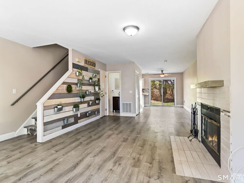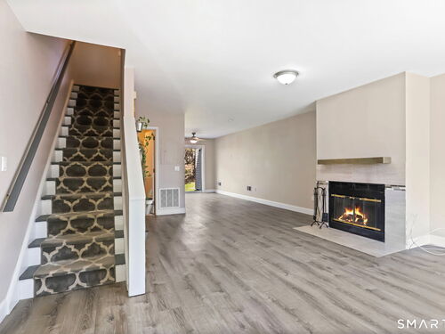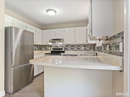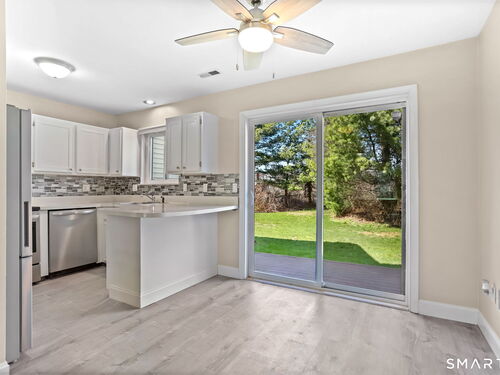 Walk to grocery stores, shopping, gym, pharmacy, restaurants, and a little over a mile to SoNo train or SoNo Mall from this nicely updated condo in super-convenient location! Open floorplan, central air, newer flooring throughout, stainless steel appliances in tidy kitchen, renovated bathrooms. Sliders to large deck and grassy area off dining space. Large bedrooms with huge closets, pull-down stairs to attic with even more storage. In-unit laundry, 2 car off-street parking. Move right in!