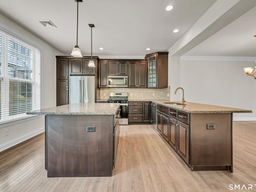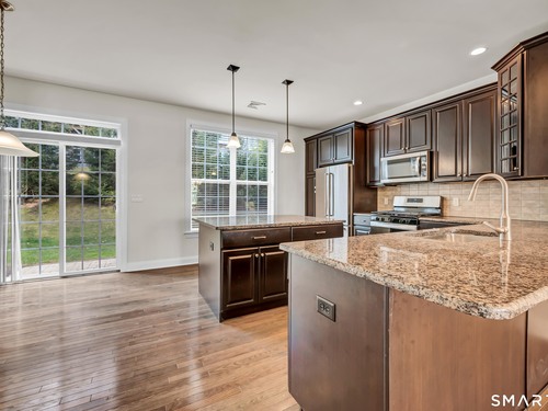 Desirable Rivington Location! This beautifully updated three-bedroom townhouse offers a bright, welcoming layout and a finished lower level complete with a full bathroom. Recently painted and filled with natural light, the main floor features an open-concept design-perfect for entertaining family and friends. From the kitchen, sliders open to a private patio ideal for relaxing or grilling. The upper level includes a spacious primary bedroom with a walk-in closet and a bathroom featuring a double-sink vanity, along with two additional bedrooms and a full hall bathroom. The finished lower level provides a versatile recreation/playroom with an egress window, full bathroom, barn door for added privacy, and generous storage space. Additional storage is also available in the garage in addition to a Tesla charger. Residents enjoy Rivington's exceptional Community Clubhouse, offering a gym, four pools (including an indoor pool), sauna, movie theatre, event room, and playground. A masseuse is even available by appointment. Shopping, restaurants, the NY border, I-84, I-684, and Route 7 are all just minutes away-making this an unbeatable location.