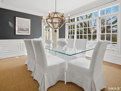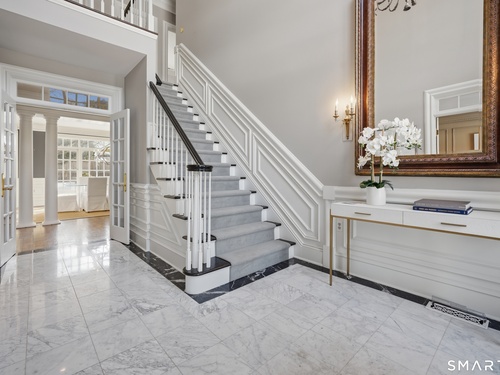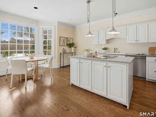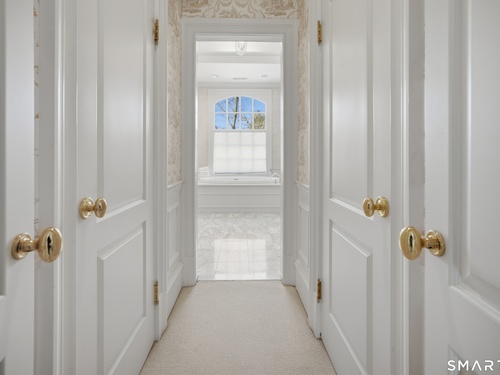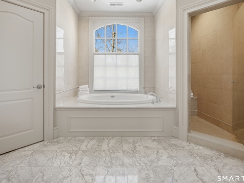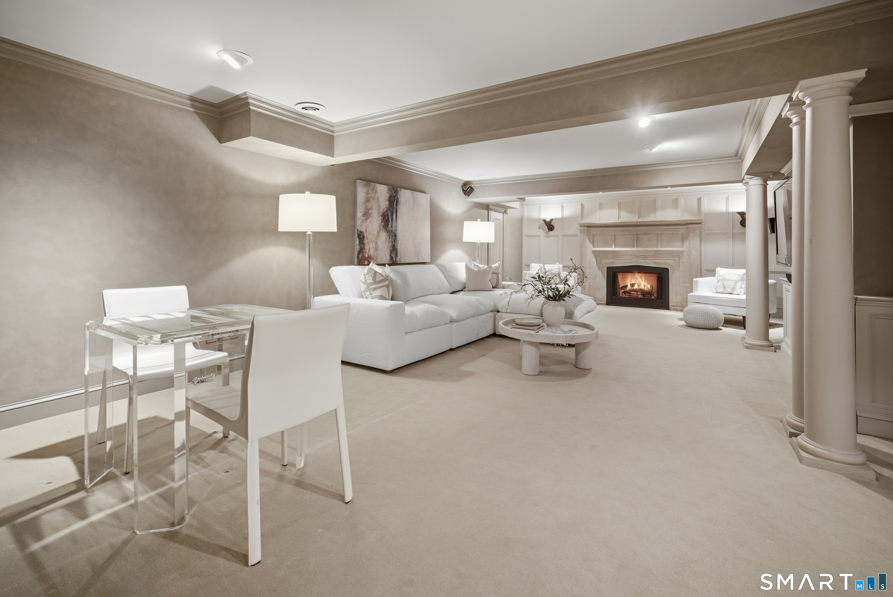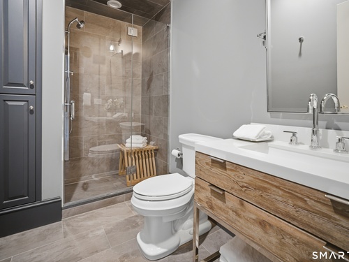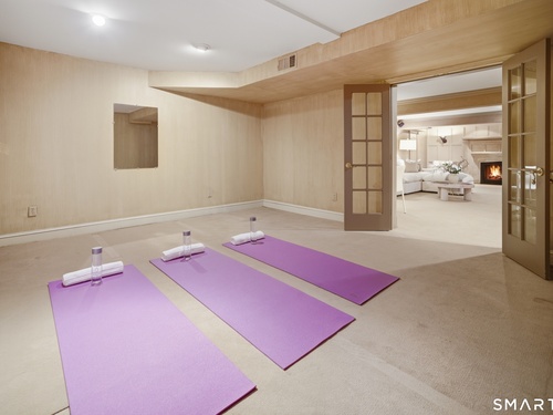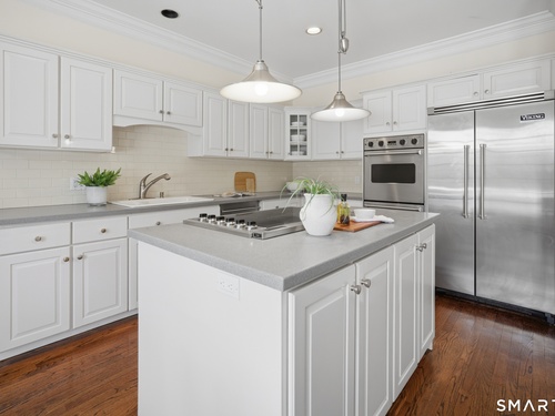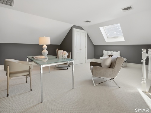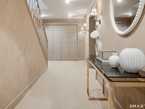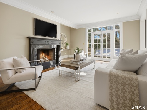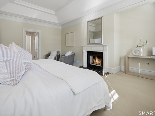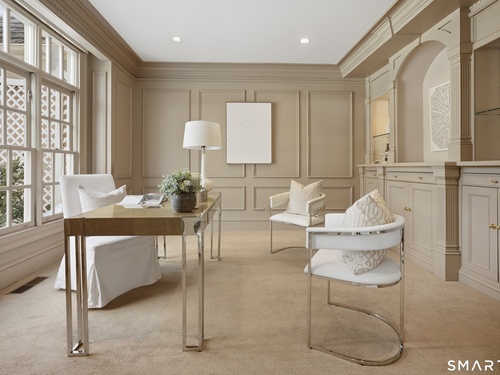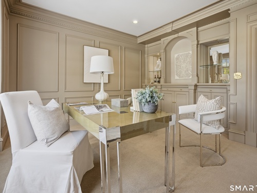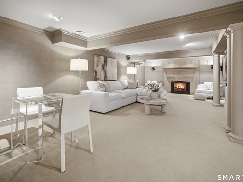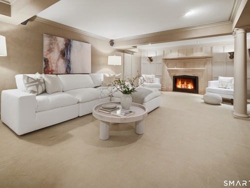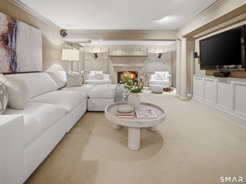 Located within a private and beautifully maintained enclave in Fairfield, 106 Stillson Road offers refined, turnkey living that truly feels like a single-family home-with the ease of condo ownership. From the moment you enter, the dramatic two-story foyer sets the tone, showcasing elegant millwork, elevated finishes, and a stunning central staircase. Just off the foyer, a richly detailed study features custom built-ins and a wet bar-ideal for working from home or entertaining. The main level continues into a warm and inviting family room with a wood-burning fireplace and direct access to a private, oversized patio. At the heart of the home, a light-filled dining room with a wall of windows connects seamlessly to the open kitchen, equipped with Viking appliances, an eat-in area, pantry, and easy access to the two-car garage. Upstairs, the expansive primary suite is a true retreat, featuring double-door entry, a fireplace, dual walk-in closets with custom storage, and a spa-like bath with soaking tub, glass-enclosed shower, double vanities, and water closet. Two additional bedrooms each offer en-suite baths, including one with brand-new wall-to-wall carpeting, a walk-in closet, and a lofted bonus space perfect for a home office or reading nook. A dedicated laundry room completes the second floor. The finished lower level is designed for entertaining and relaxation, featuring a media room with built-ins and gas fireplace, a dedicated gym space and abundant storage.