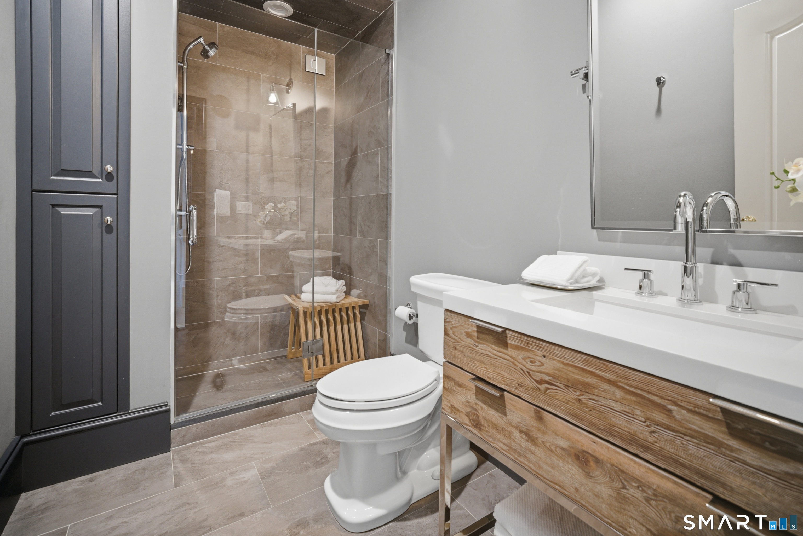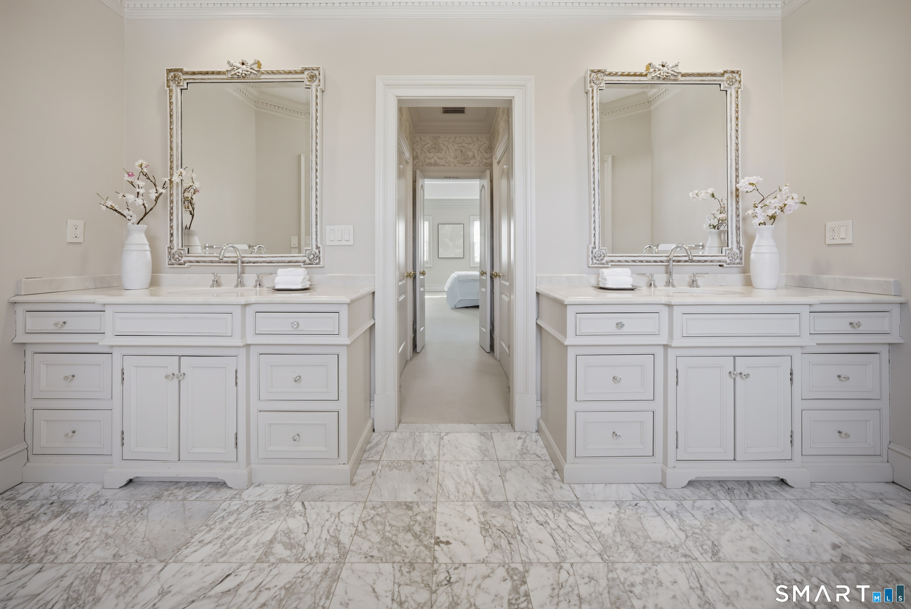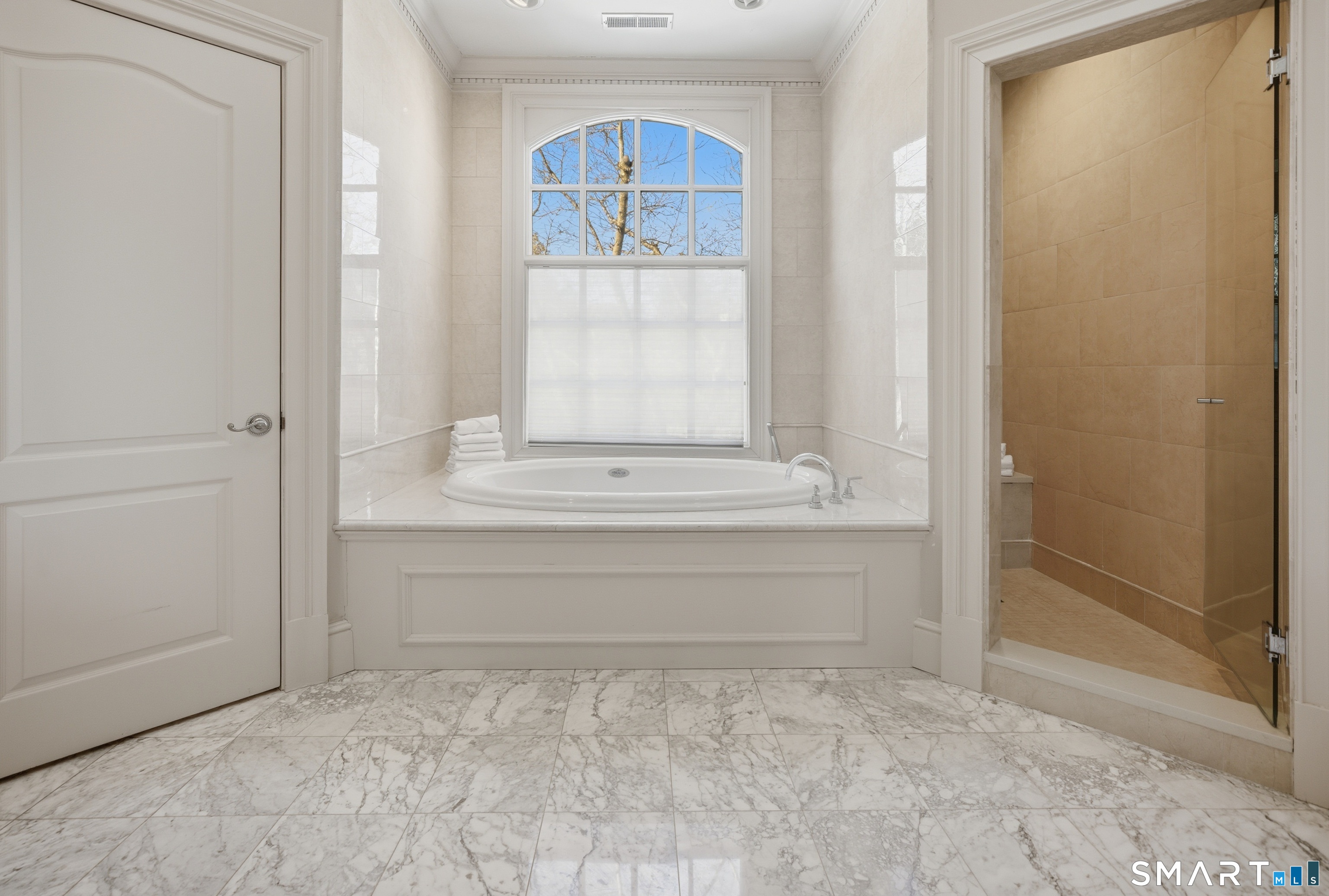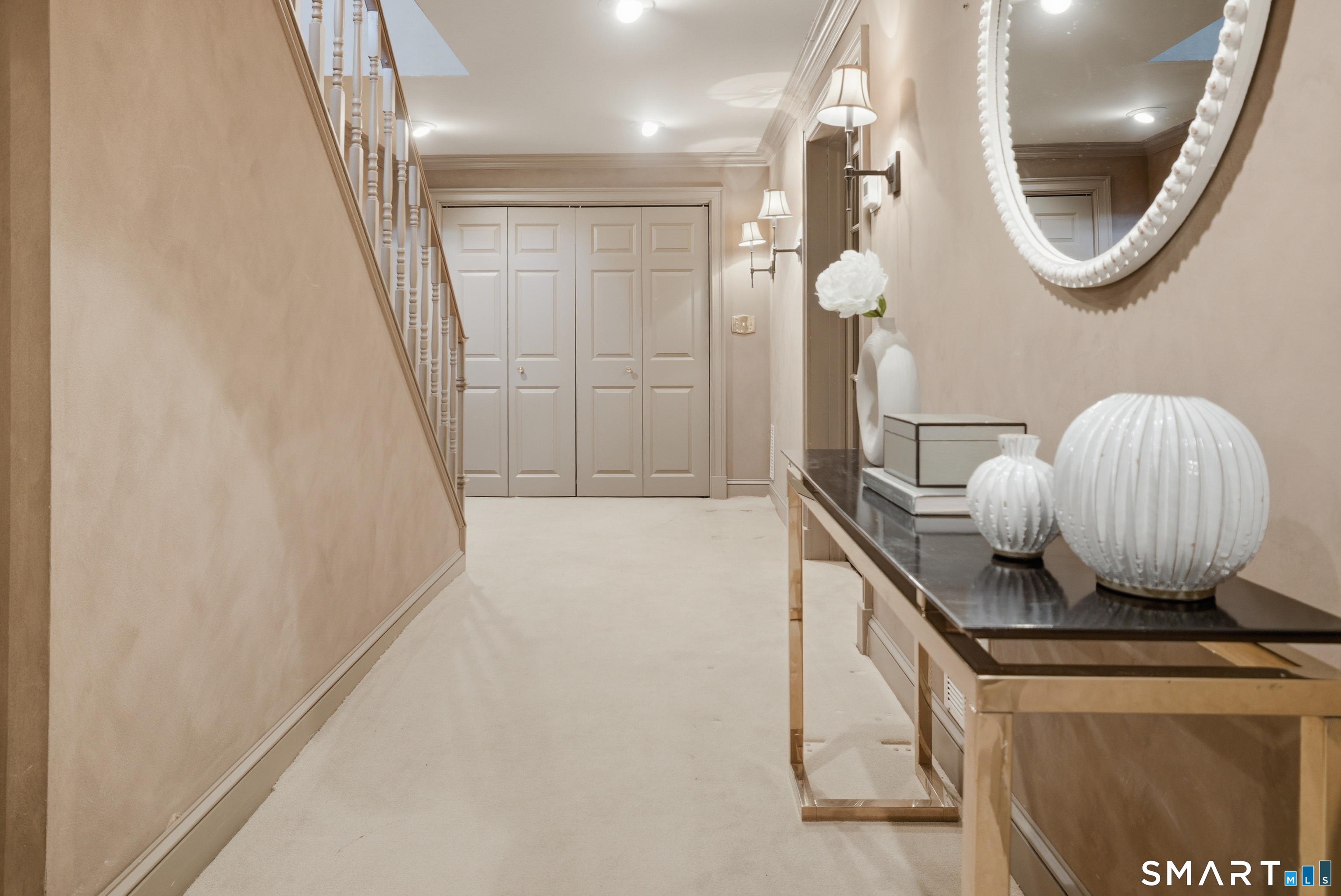 Located within a private and beautifully maintained enclave in Fairfield, 106 Stillson Road offers refined, turnkey living that truly feels like a single-family home-with the ease of condo ownership. From the moment you enter, the dramatic two-story foyer sets the tone, showcasing elegant millwork, elevated finishes, and a stunning central staircase. Just off the foyer, a richly detailed study features custom built-ins and a wet bar-ideal for working from home or entertaining. The main level continues into a warm and inviting family room with a wood-burning fireplace and direct access to a private, oversized patio. At the heart of the home, a light-filled dining room with a wall of windows connects seamlessly to the open kitchen, equipped with Viking appliances, an eat-in area, pantry, and easy access to the two-car garage. Upstairs, the expansive primary suite is a true retreat, featuring double-door entry, a fireplace, dual walk-in closets with custom storage, and a spa-like bath with soaking tub, glass-enclosed shower, double vanities, and water closet. Two additional bedrooms each offer en-suite baths, including one with brand-new wall-to-wall carpeting, a walk-in closet, and a lofted bonus space perfect for a home office or reading nook. A dedicated laundry room completes the second floor. The finished lower level is designed for entertaining and relaxation, featuring a media room with built-ins and gas fireplace, a dedicated gym space and abundant storage.