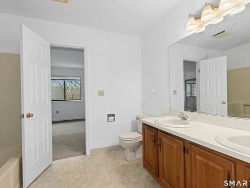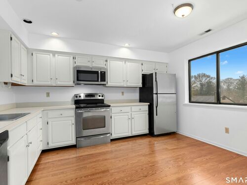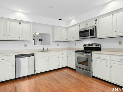 Welcome to Fillow Ridge, an exceptional townhouse community in West Norwalk offering comfort, convenience, and an unbeatable location. Just a short stroll to the scenic greens of Oak Hills Golf Course, this residence is set in one of the area's most desirable neighborhoods. Inside, the main level welcomes you with an expansive living room centered around a charming fireplace, creating a warm and inviting setting. Sliding glass doors open to a private deck, providing the perfect extension of your living space for relaxing or entertaining outdoors. The generously sized dining area flows effortlessly into the kitchen, making gatherings both comfortable and convenient. The sun-filled eat-in kitchen offers abundant space for cooking and casual dining, complete with pleasant views that enhance the experience. Upstairs, the tranquil primary bedroom features oversized windows and an entire wall of closets for excellent storage. The second bedroom is equally bright and spacious, offering both a walk-in closet and an additional closet. A well-appointed Jack & Jill bathroom connects the two bedrooms and includes a separate shower, soaking tub, and dual sinks for added comfort and functionality. Additional highlights include a pull-down attic for extra storage and ample unassigned parking for residents and guests. Fillow Ridge combines everyday practicality with a prime West Norwalk location, making it a wonderful place to make a home. Close to all the areas amenities.