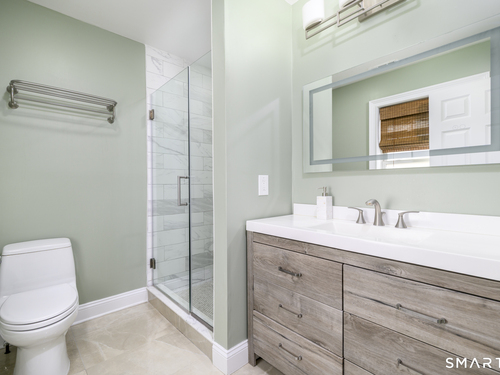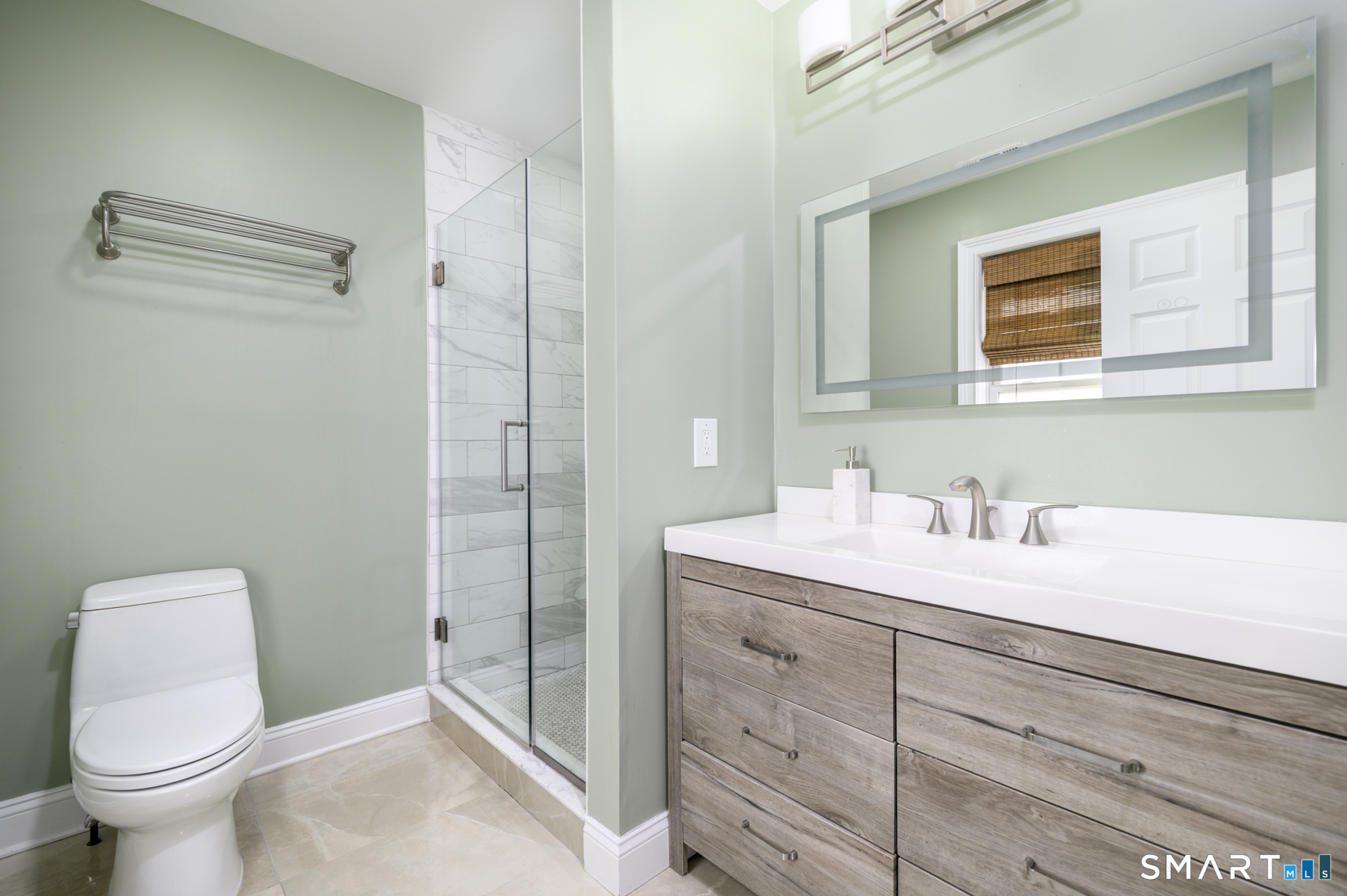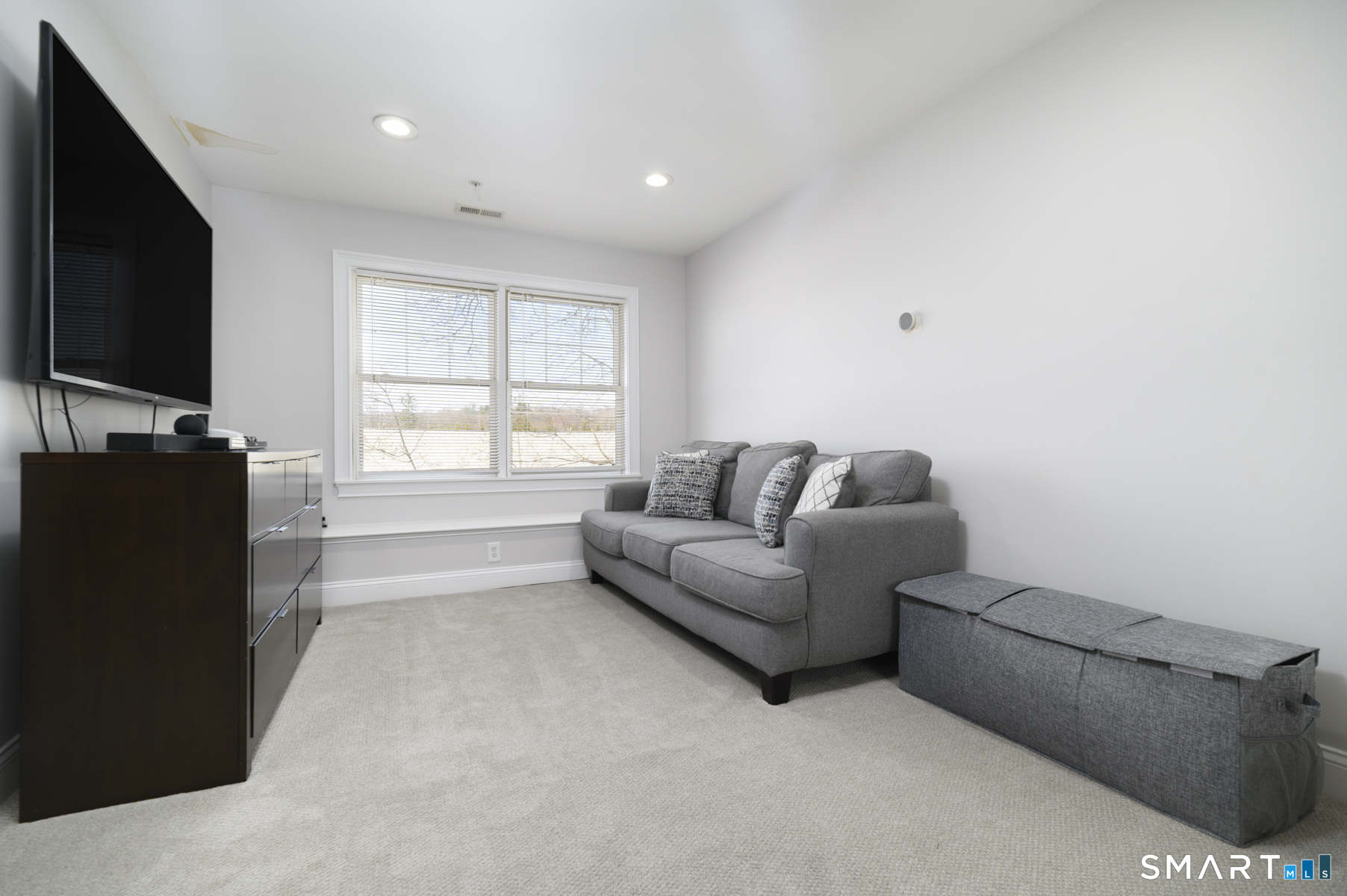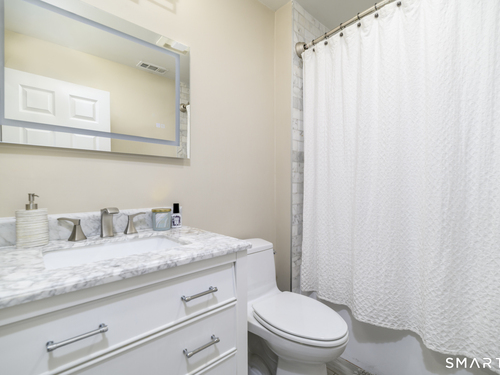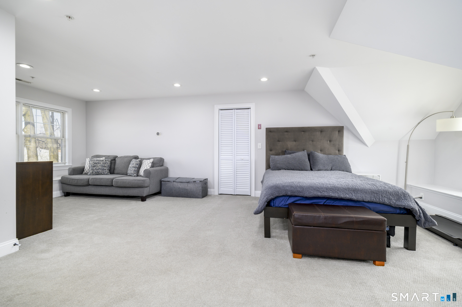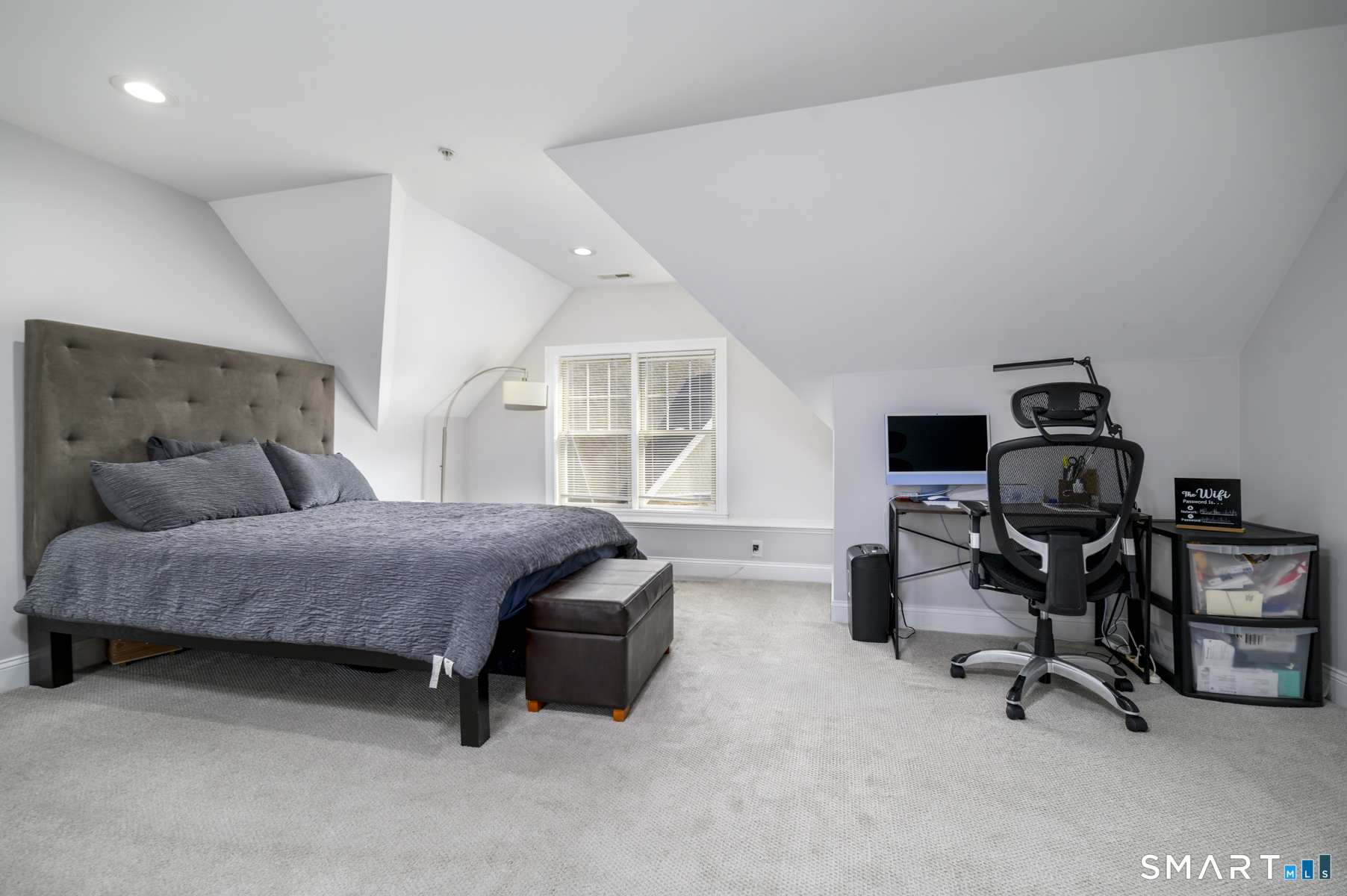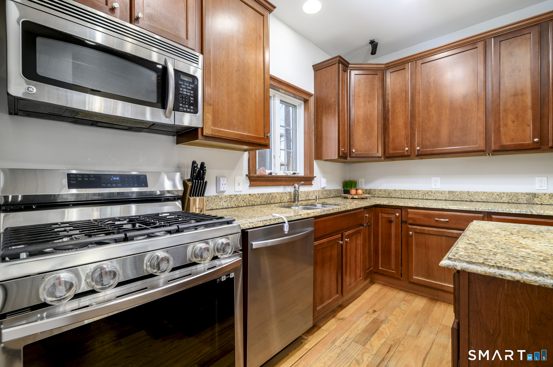 Freshly painted and move-in ready, this beautifully maintained 2-bedroom, 2.5-bath townhouse with a two-car garage offers the perfect blend of comfort, style, and convenience. The main level features gleaming hardwood floors and an inviting, open flow ideal for both everyday living and entertaining. The kitchen is equipped with a center island and seamlessly connects to the dining area, complete with sliders leading to a private balcony-perfect for enjoying fresh air. The living room is enhanced by elegant coffered ceilings, adding a touch of sophistication.Upstairs, the spacious primary suite includes a walk-in closet and a full bath with a shower stall. A second bedroom, full hallway bath with tub/shower combination, and convenient in-unit laundry complete the second level. The expansive third floor level functions as a private retreat with the scale and flexibility to serve as a guest suite, home office, or additional sleeping quarters. Its separation from the main living areas creates a quiet, versatile space well-suited for today's flexible living arrangements. Designed with efficiency in mind, the home features a 3-zone HVAC system for optimal comfort. Ideally located with easy access to I-95, the Merritt Parkway, and nearby train stations, this home is perfect for commuters and those seeking a central location close to everything.