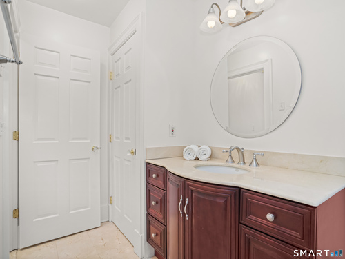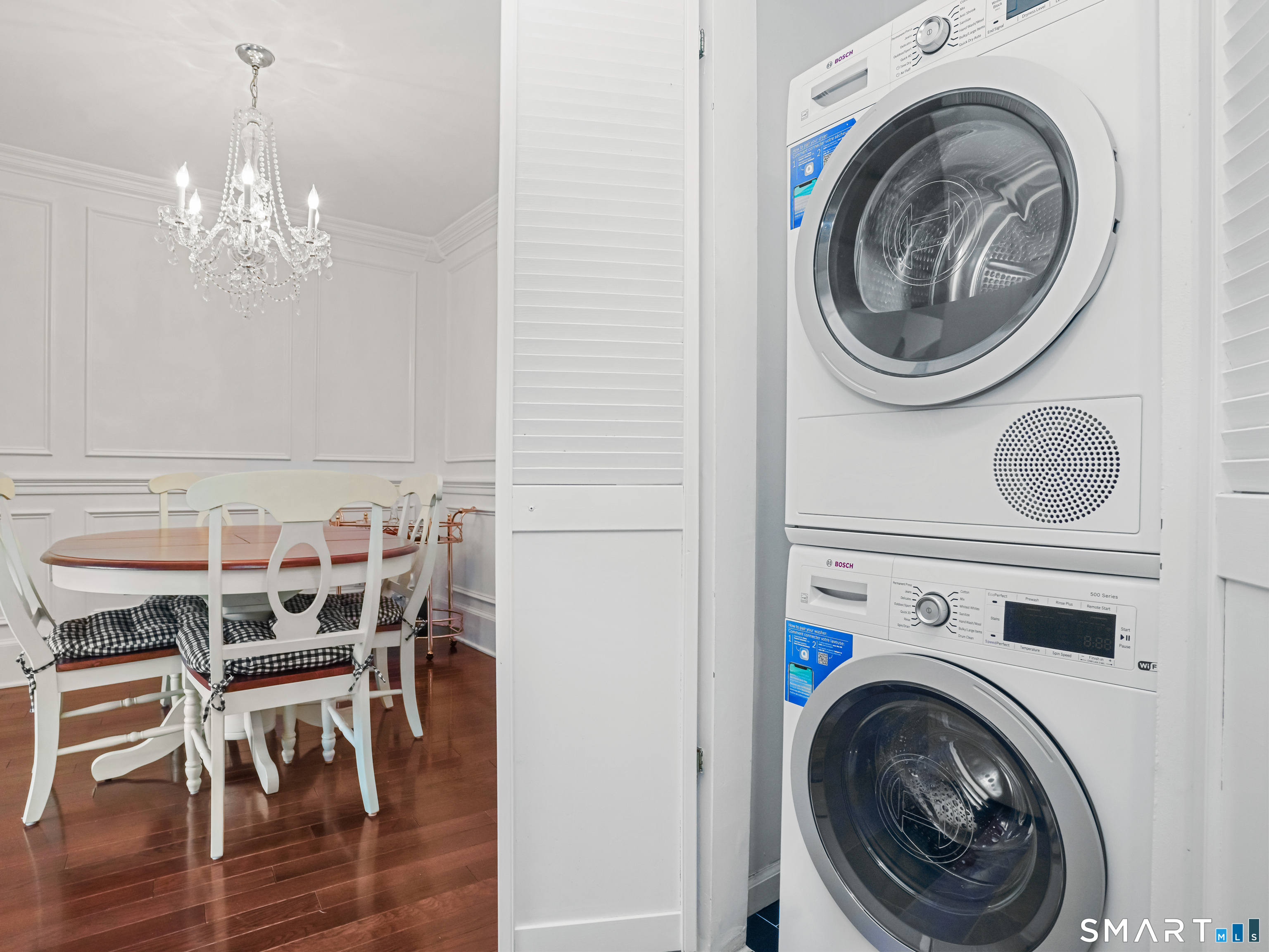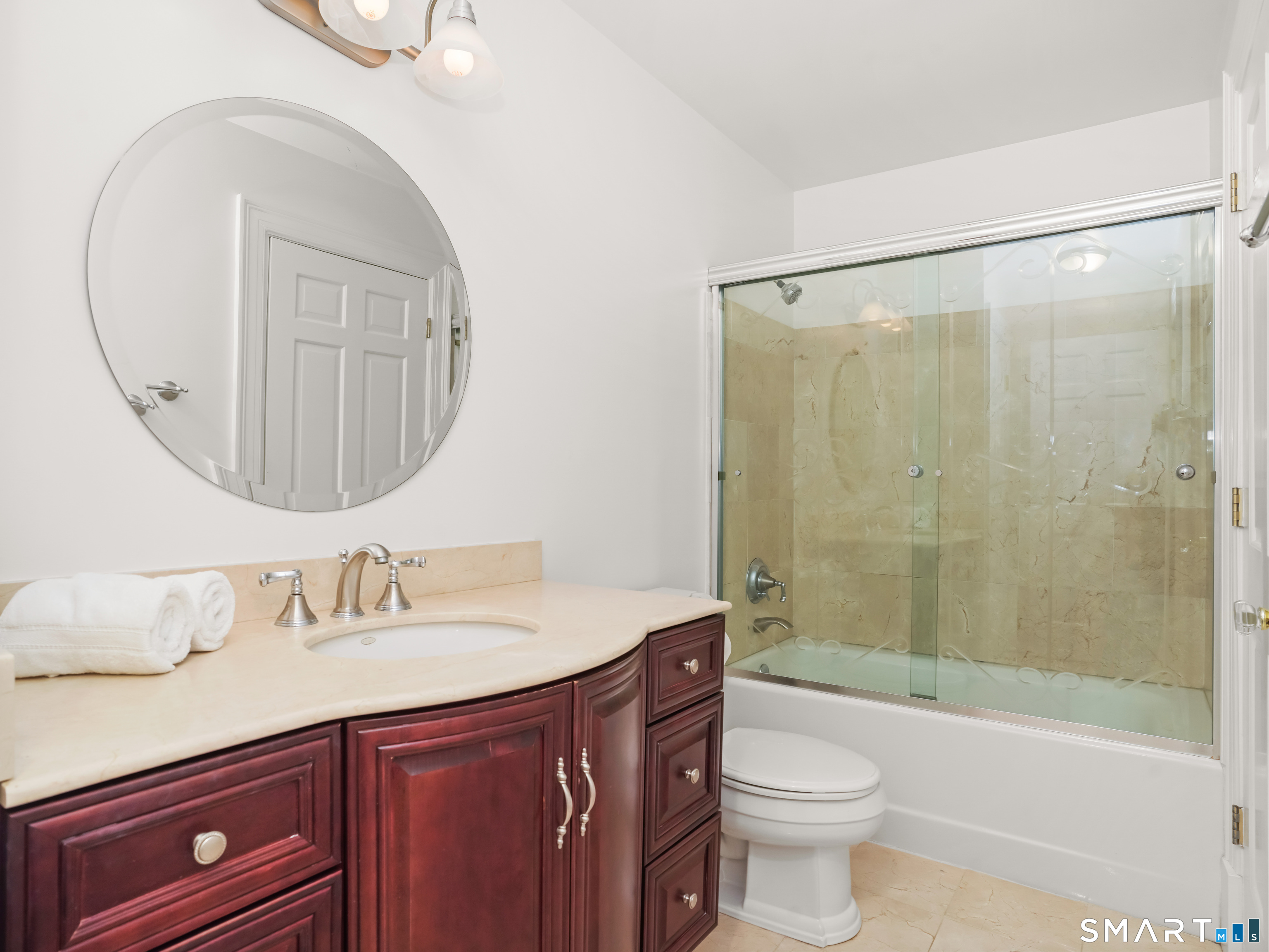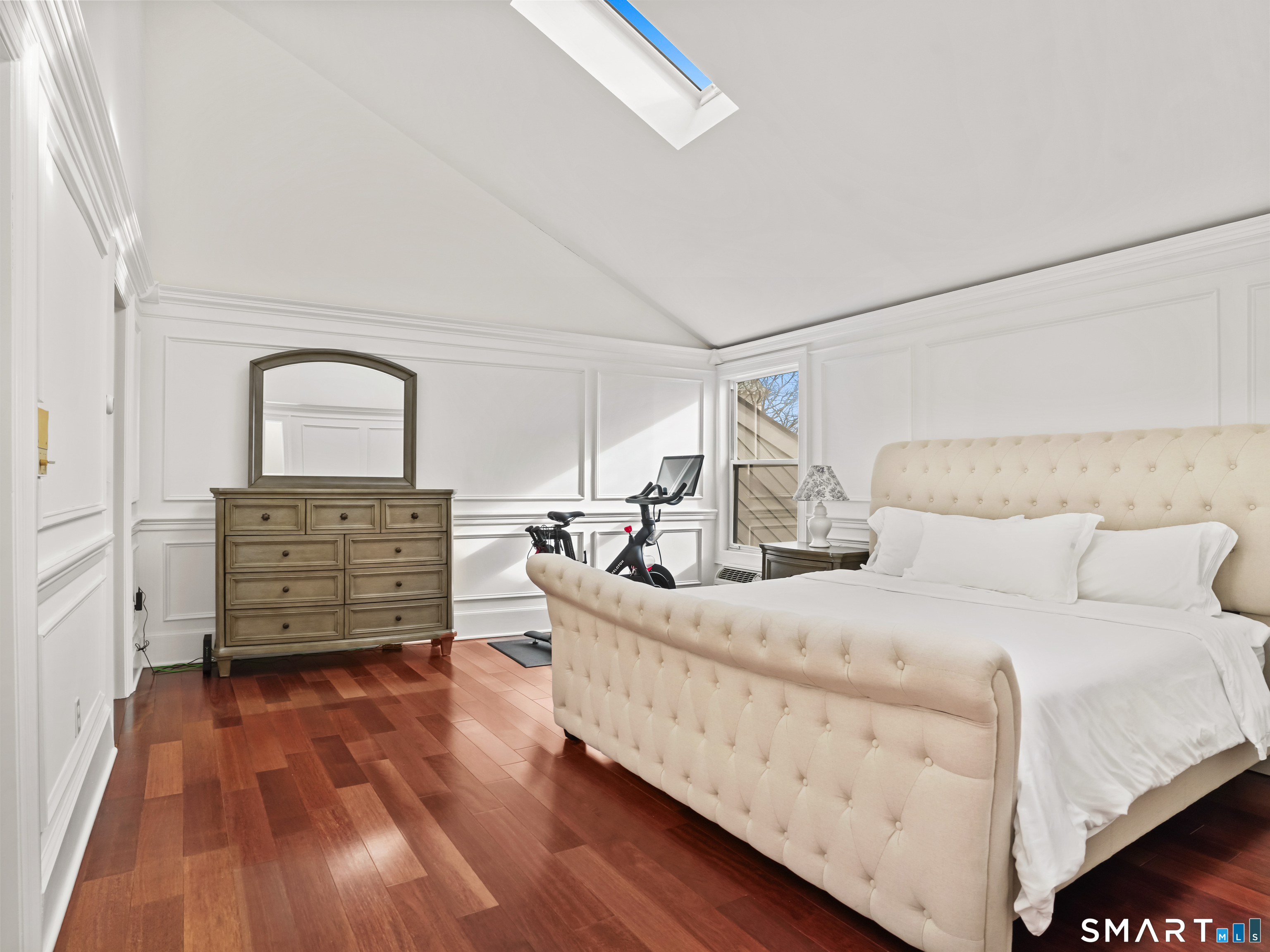 Fabulous duplex one-bedroom condominium located at The Common in Old Greenwich. This sun-filled residence features soaring cathedral ceilings and a private foyer entrance updated in 2019. The open living and dining floor plan showcases hardwood floors throughout, crown moldings, and abundant natural light. The well-appointed kitchen is equipped with luxury appliances, while California Closets provide exceptional storage throughout the home. Enjoy outdoor living from your private balcony, plus the convenience of an additional private storage unit. Start 2026 right!