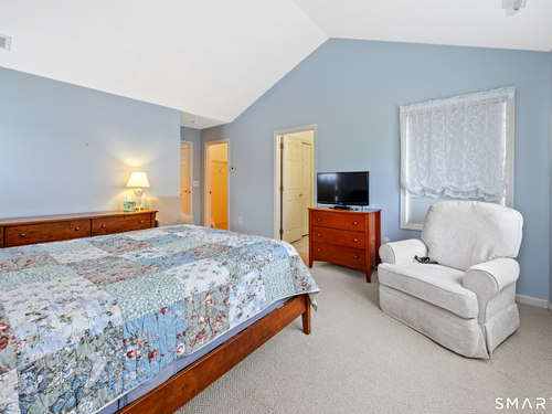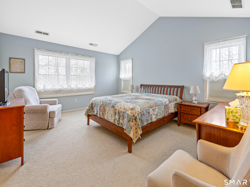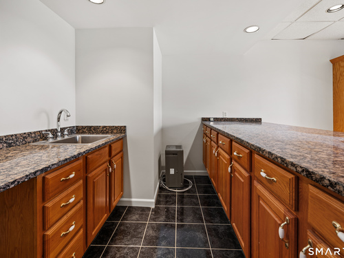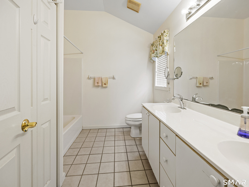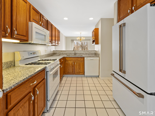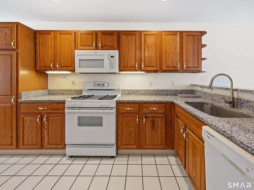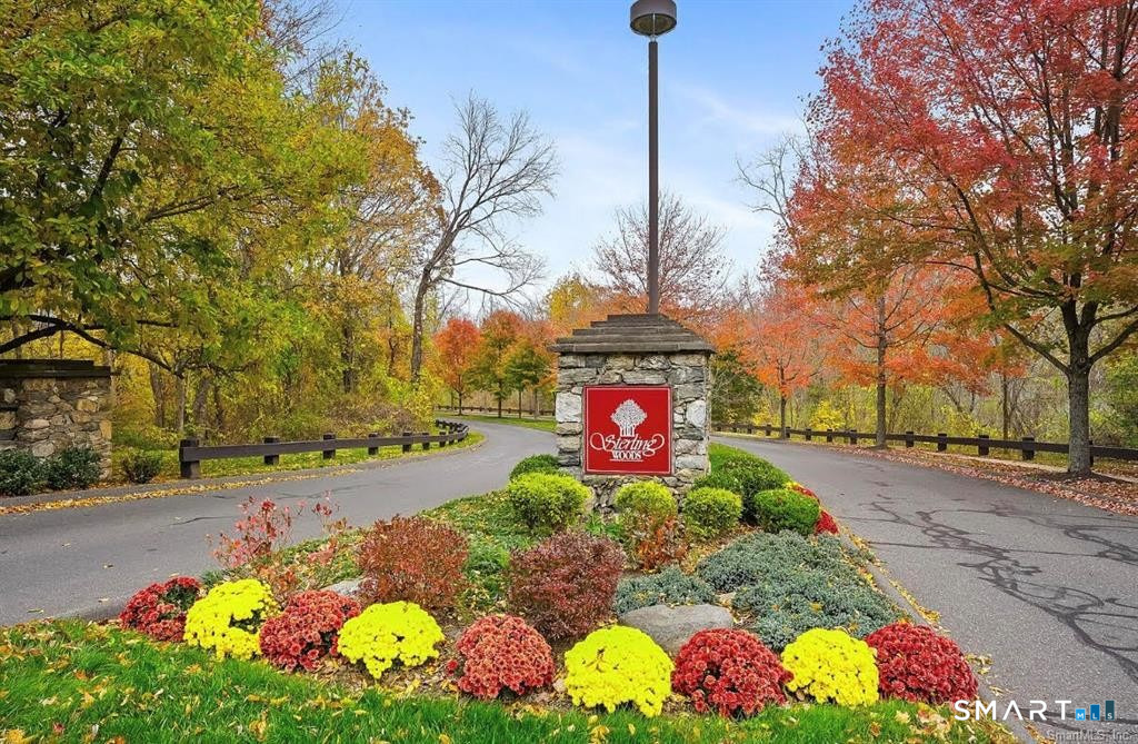 Welcome to this Chestnut model end unit located in a private cul-de-sac of Sterling Woods, offering the feel of a single-family home. Custom finished lower level with beautiful views, attached garage, its own driveway & sun filled open floor plan make this a standout. Kitchen offers granite counter tops. Laundry located on the main floor along with 1/2 bath. Living room, dining area leads to a large deck with tree lined views. Master Bedroom has vaulted ceiling, plenty of windows and walk-in closet. Second bedroom has double closet w/adjustable shelving. Both bedrooms have attached full bathrooms. Lower level is completely finished w/built in bookcases, granite counters /wet bar and provides plenty of space for entertaining. Adjoined semi-finished room has workbench and some additional storage space. Water/sewer charges covered in HOA. Plenty of visitor parking.