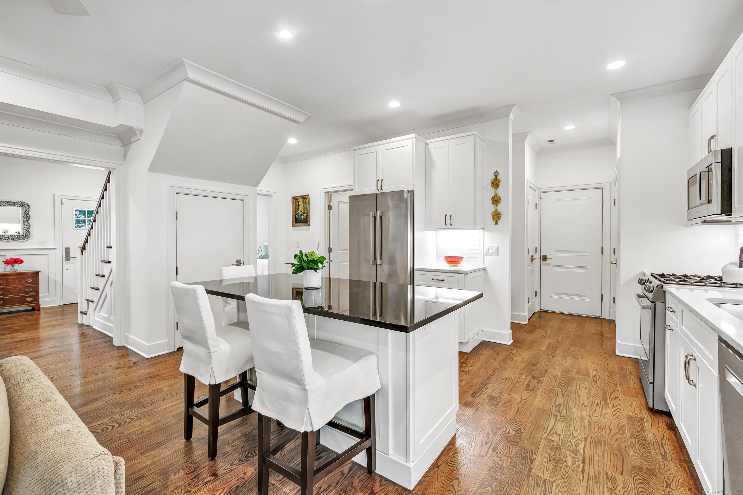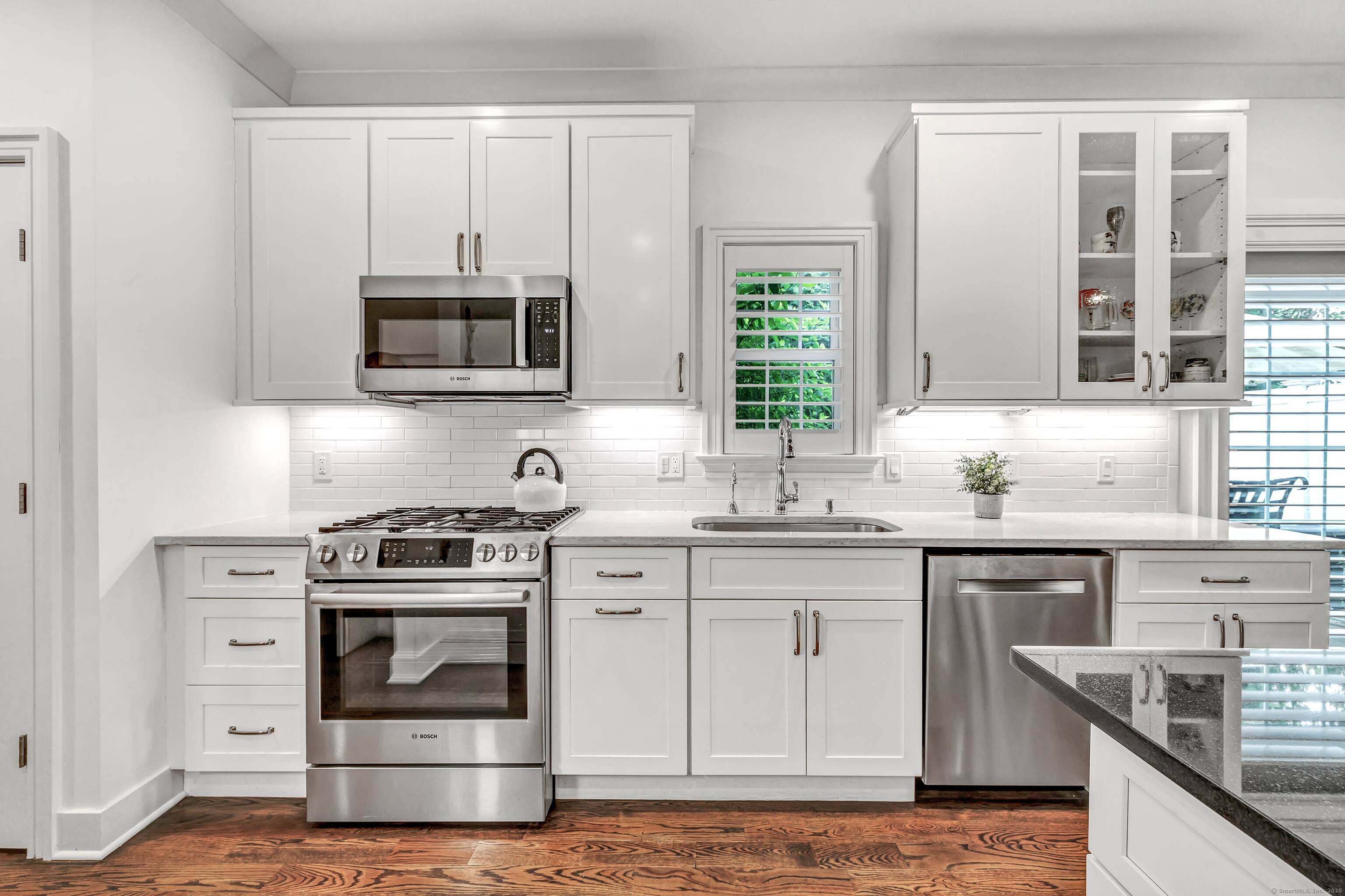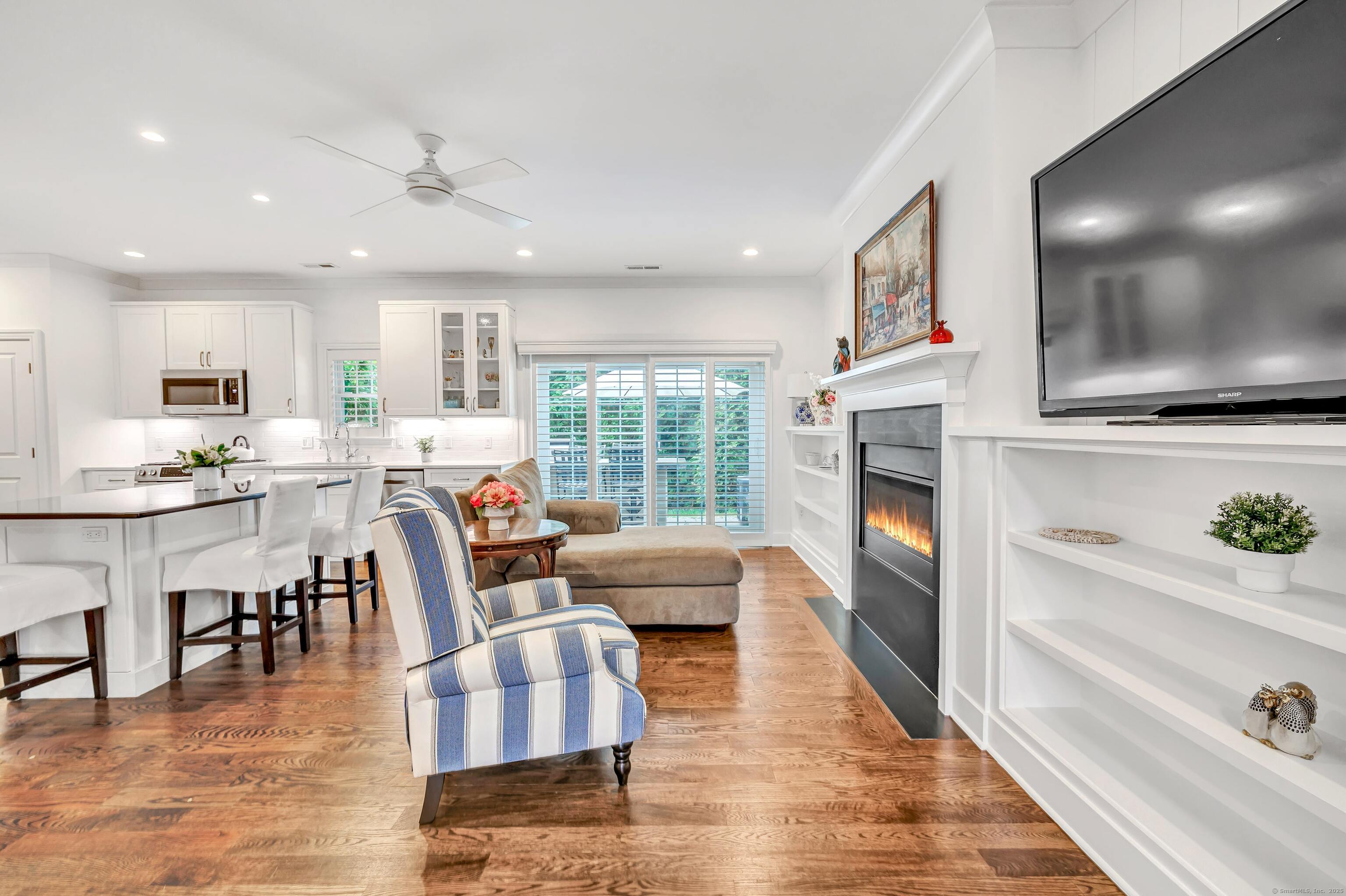 Welcome to this like-new, end-unit townhouse offering a blend of timeless elegance and modern comfort, all within walking distance to downtown Fairfield, the train, and beautiful Jennings Beach. This 3 bedroom, 3 full bathroom home is filled with natural light and thoughtfully designed with custom high-end finishes throughout, including shiplap accents, designer lighting and plantation shutters. An open-concept layout includes an expansive gourmet kitchen featuring an oversized 68" granite island with seating and stainless steel Bosch appliances, leading to the living room with a gas fireplace, built-ins and shiplap detailing. The living area flows seamlessly to a private, partially fenced-in backyard with almost .25 acres, a bluestone patio, outdoor kitchen, and lush gardens. The flexible main floor offers a bedroom and full bathroom, perfect for visiting guests, while upstairs boasts a spacious primary suite with custom walk-in closet and luxurious bathroom, plus another bedroom, full bathroom with tub, and a sunny bonus room, ideal as an office, play area, or gym. Enjoy built-ins throughout, a mudroom, main-level laundry, walk-in attic, and a 2 car garage with floor-to-ceiling storage. Freshly painted and truly move-in ready, this turn-key home combines sophisticated design with everyday ease. Located just minutes from Fairfield's vibrant town center, shopping, and beaches, and only a short walk to the train station, this is low-maintenance, coastal living at its finest.