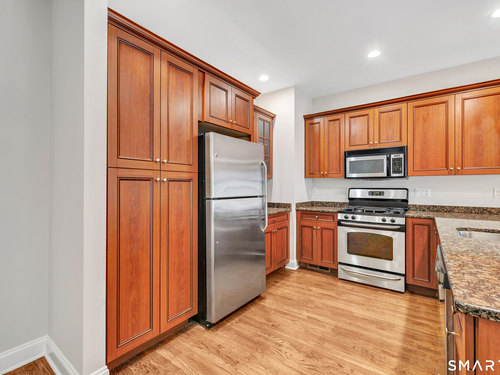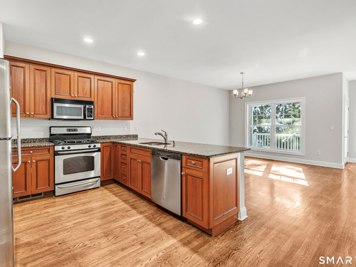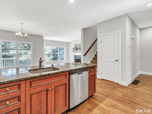 Spacious 2-bedroom, 2-1/2-bath luxury townhouse located in the highly sought-after Crescent Village community. Ideally situated just minutes from the Merritt Parkway, Route 8, the I-95 Connector, and nearby train stations for easy commuting. This home features a stunning kitchen with over $27K in upgrades at construction, including granite countertops, quality finishes, and additional hardwood floors in the office and bedroom suites. The interior has been freshly painted from top to bottom in a light, neutral palette that complements any decor. The main level offers a flexible open floor plan with 9' ceilings, hardwood flooring throughout, and a gas fireplace that adds warmth and ambiance. An upper-level loft provides additional space ideal for a home office or sitting area. The expansive primary suite includes three closets & a private bath with double sinks, vanity, and stall shower. A second bedroom suite offers a walk-in closet and private bath with tub/shower and vanity. An unfinished walk-out lower level provides abundant storage and offers excellent potential for future finished space. Crescent Village is an award-winning community featuring a beautifully appointed clubhouse with full kitchen and fireplace, community room, fitness center, tot play area, and a heated in-ground pool.