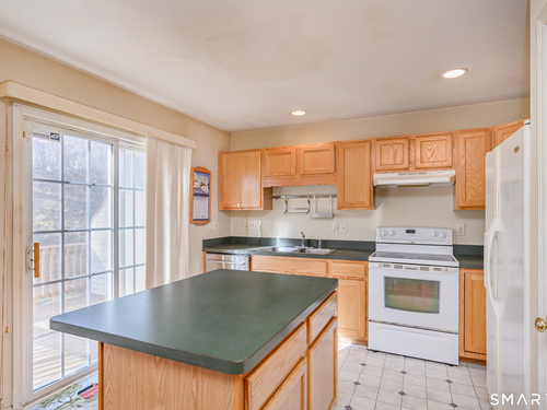 Kitchen (Main Level)Balcony/Deck, Half Bath, Island, Vinyl Floor
