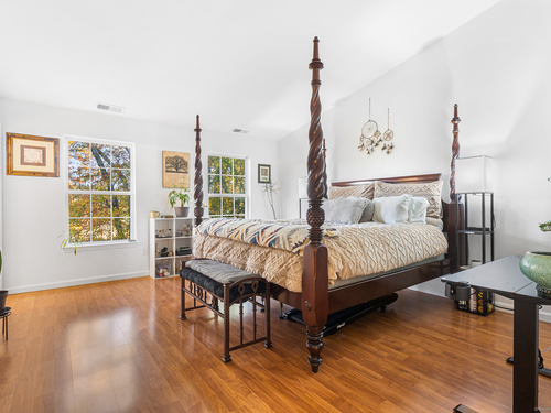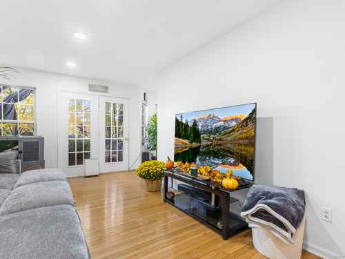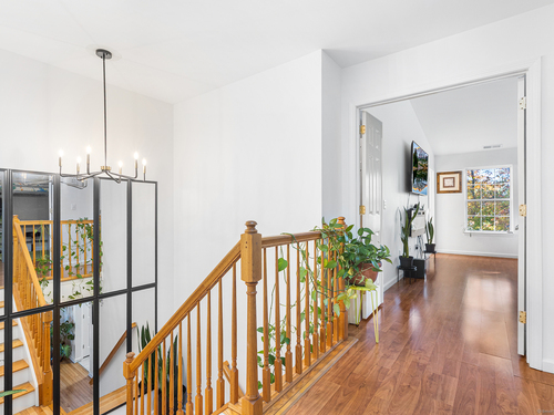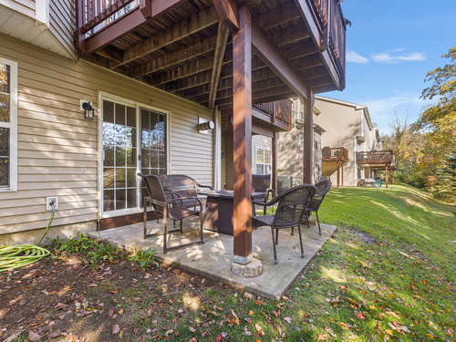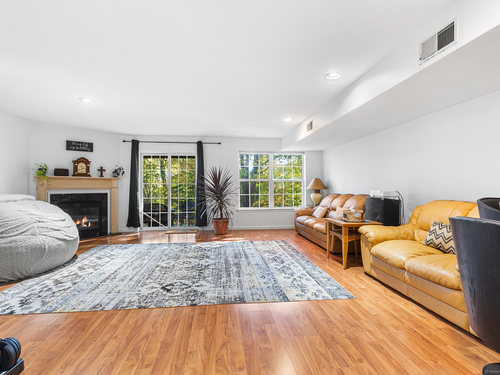 Welcome to this beautifully cared-for and sun-filled townhouse located in sought after Lexington Meadows. Step inside to discover a bright, inviting layout with gleaming hardwood floors throughout. The main level features a spacious living room with french doors to the private back deck, perfect for relaxing or entertaining. The large kitchen boasts a sun filled breakfast nook, stainless appliances, stylish tile backsplash and a large pantry. The grand u-shaped staircase with mirror wall leads to the upper level featuring a spacious primary suite with vaulted ceilings, a walk-in closet, and a private full bath with double sinks. The versatile den easily doubles as a possible third bedroom or home office. Enjoy the convenience of an upper-level laundry area. The finished lower level features a rare walk-out patio offering a peaceful space to enjoy the outdoors. Gather round the gas fireplace and utilize the 32x22 Rec room as you desire for a workout room or home theatre. Newly installed hot water heater, A/C condenser and upgraded furnace in 2024 provide energy efficient gas heat and central air for year-round comfort. Tucked into a pet-friendly community with an in-ground pool, generous guest parking, and an ideal location close to shops, parks, and commuter routes. A wonderful blend of comfort, space, and convenience-schedule your showing before it's gone! Subject to seller finding suitable housing.