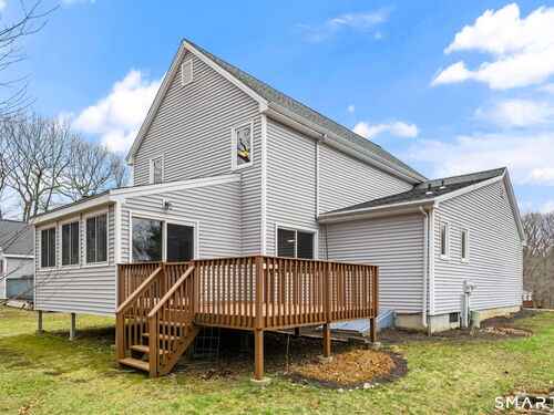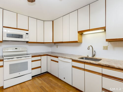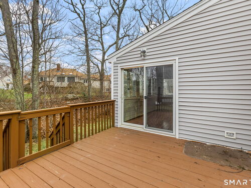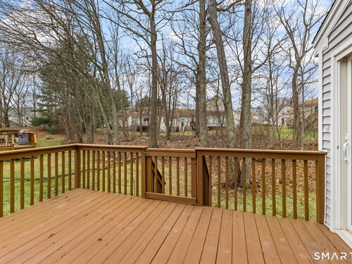 Spacious Deerfield townhouse with entry hall, large eat in kitchen with granite counters, dining room with hardwood floors, living room with fireplace & hardwood floors opens to family room with hardwood floors and opens to private deck overlooking woods. 1/2 bath, laundry room and 1 car garage on main level. Upper level has spacious Primary BR suite with 3 walk-in closets and bath; generous second BR has full bath. Lower level has Playroom and updated furnace, water heater and oil tank. Enjoy amenities of Aspetuck Village and low Shelton taxes! Newer initiation of $1500.